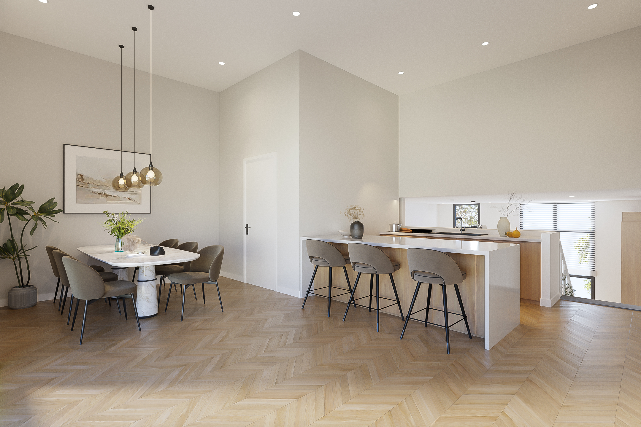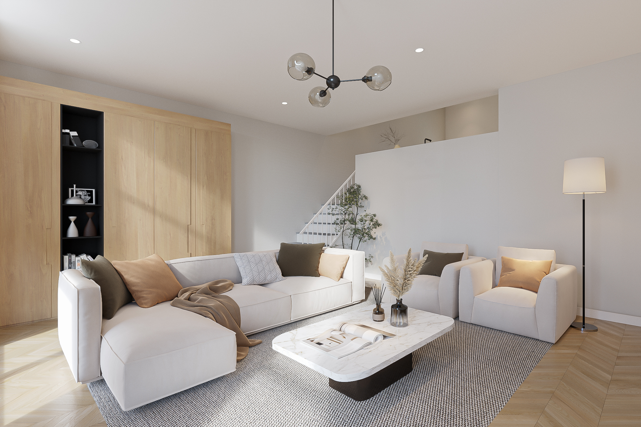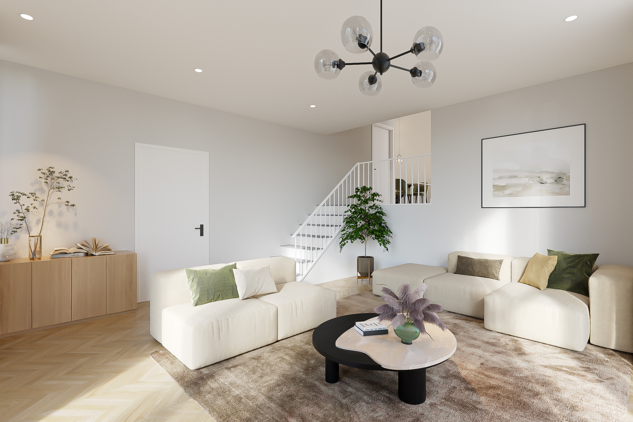 - Alle woningen worden aangeboden zonder aanbouwkeuken, tegelwerk en sanitair.