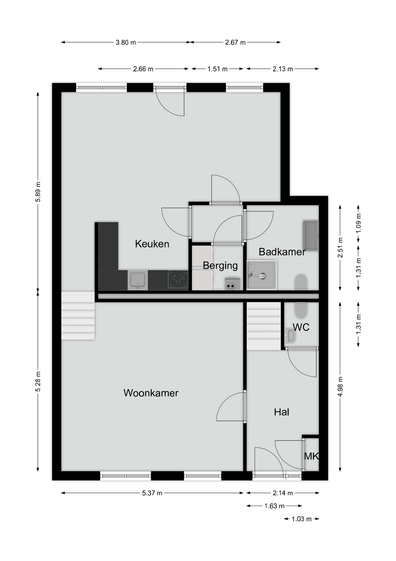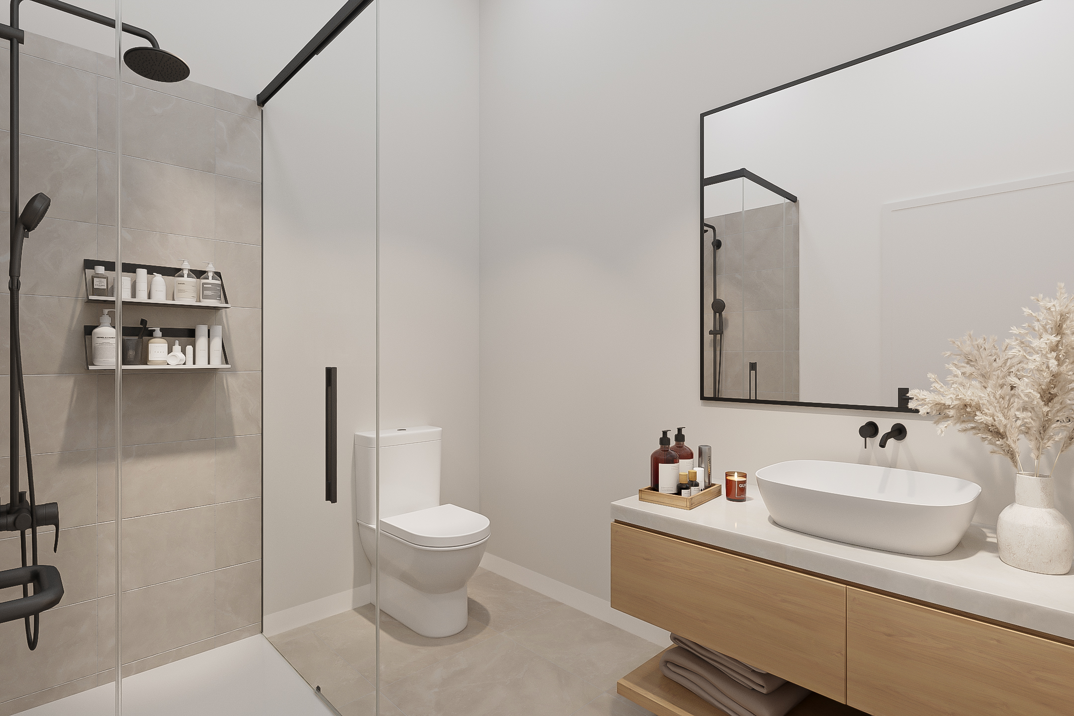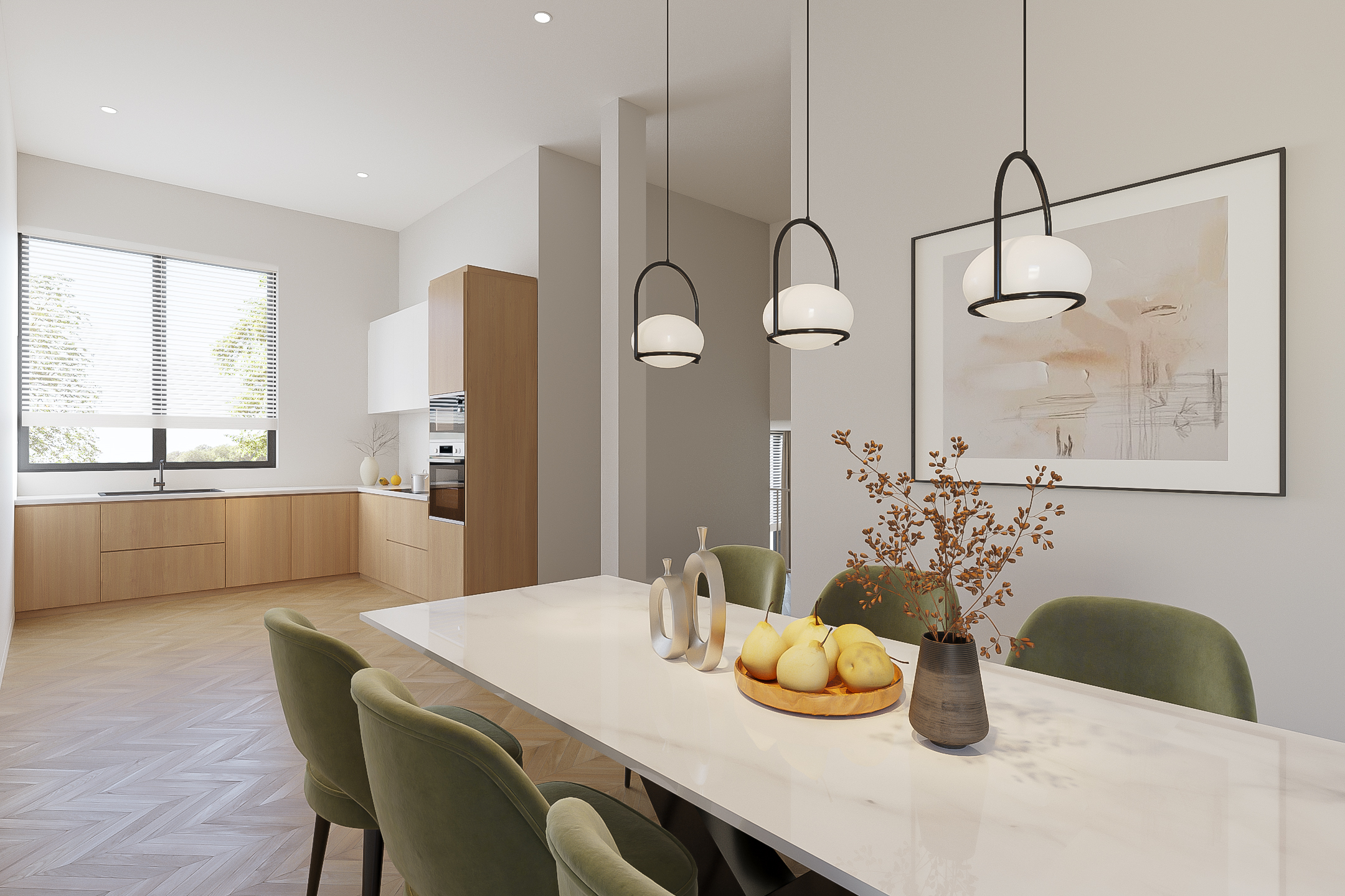 - Alle woningen worden aangeboden zonder aanbouwkeuken, tegelwerk en sanitair.