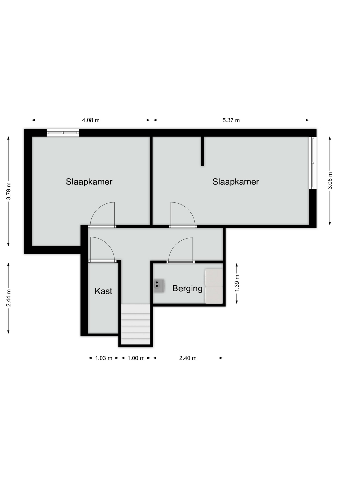 - 1 maisonnette woning aan de achterzijde met 2 slaapkamers en dakterras,