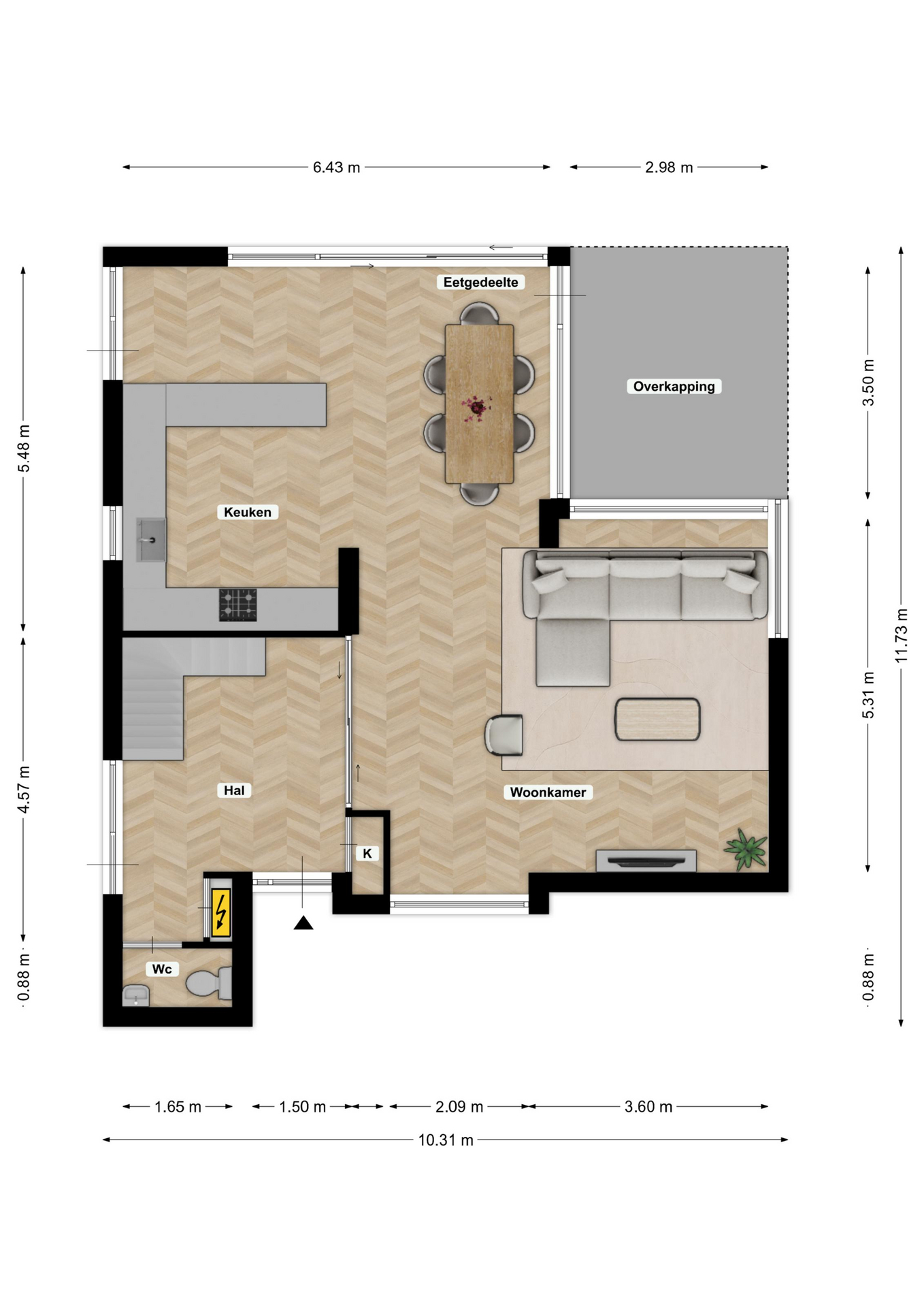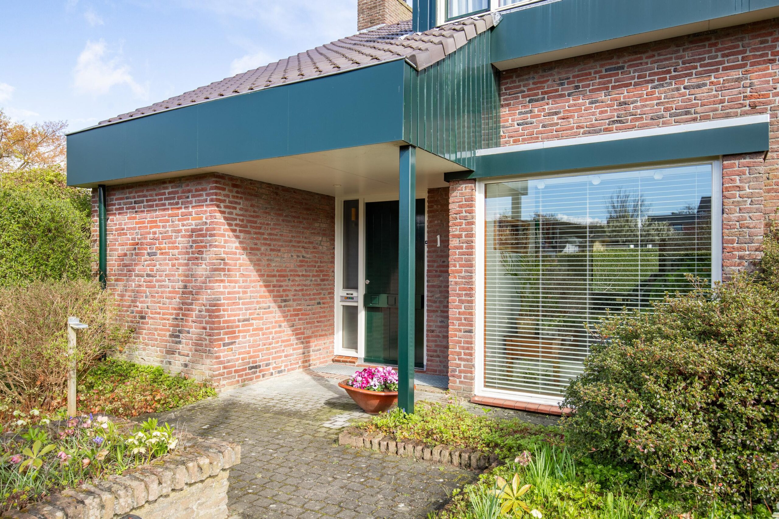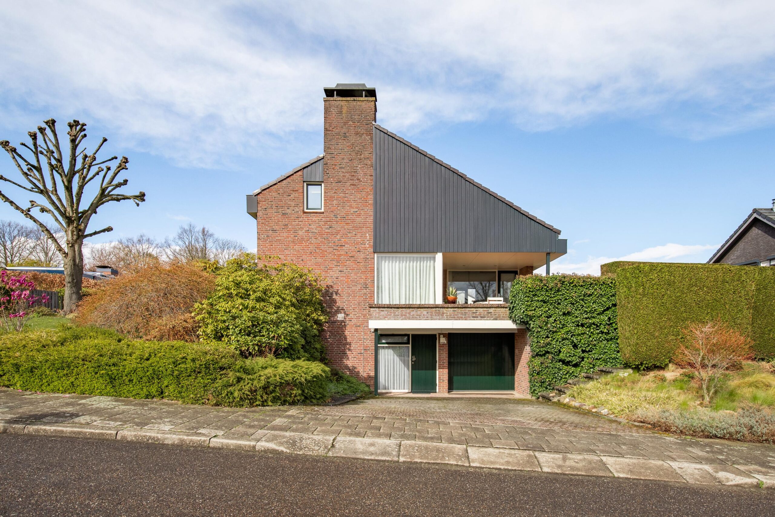 De inpandige garage is bereikbaar vanuit het souterrain en voorzien van een elektrisch bedienbare hardhouten sectionaalpoort.