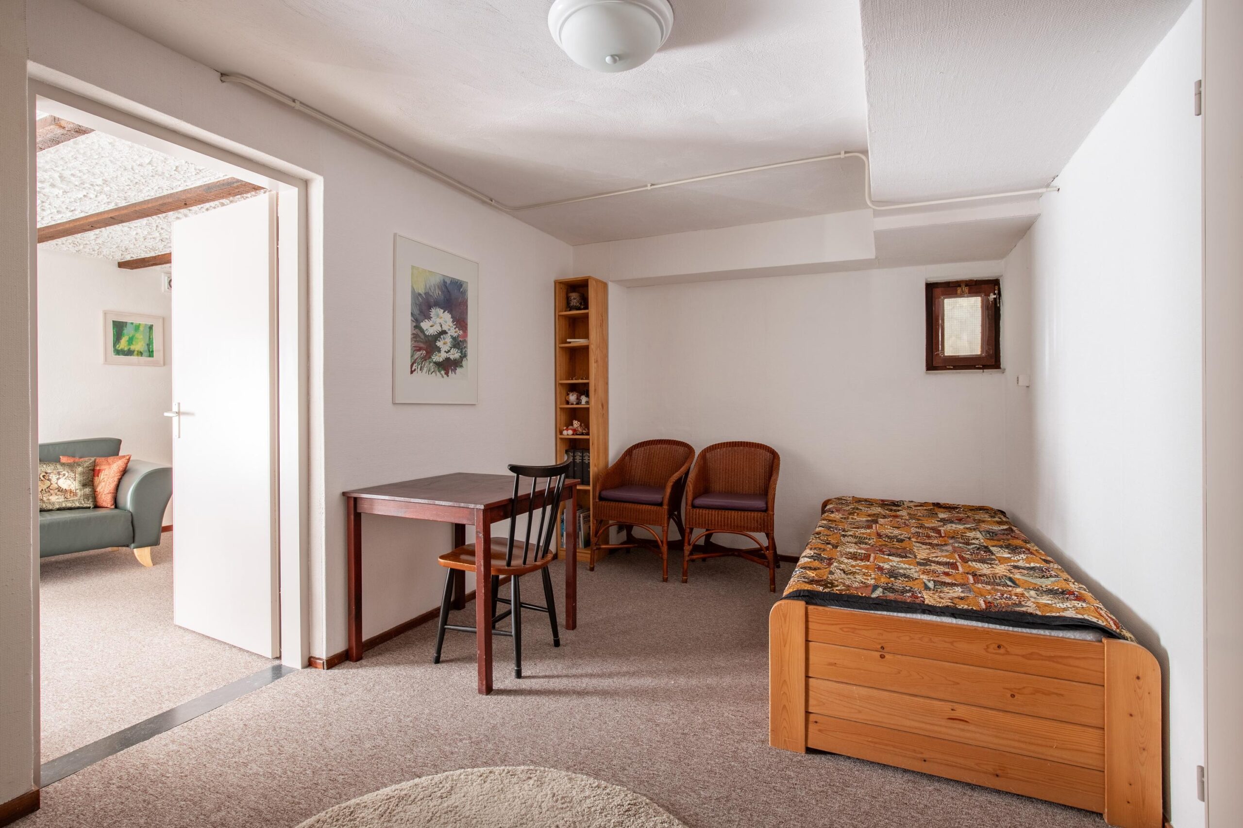 De voormalige kantoorruimte, momenteel in gebruik als slaapkamer, heeft directe toegang tot de oprit. Daarnaast is er een tweede slaap-/werkruimte voorzien van een ingebouwde schuifkastenwand.