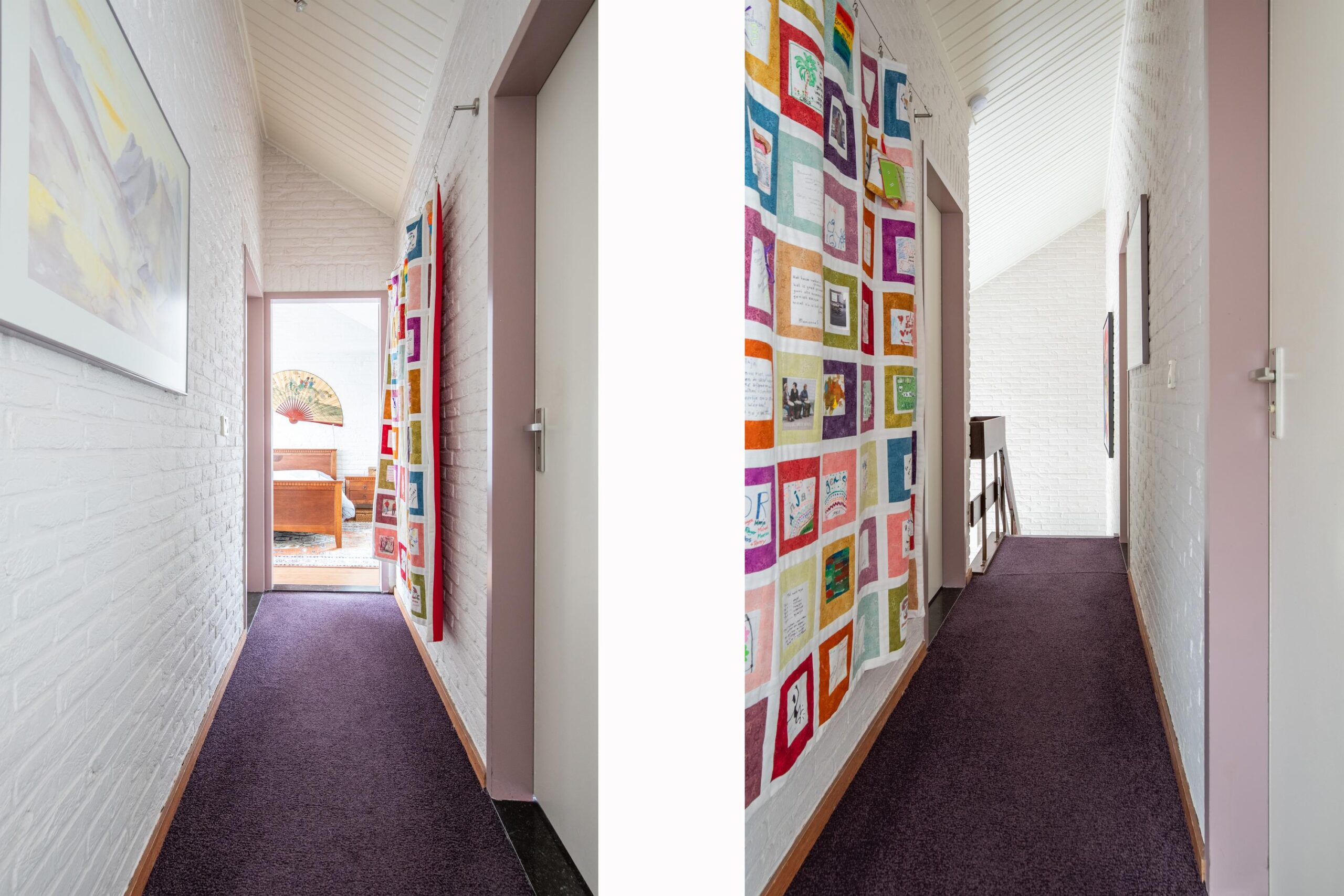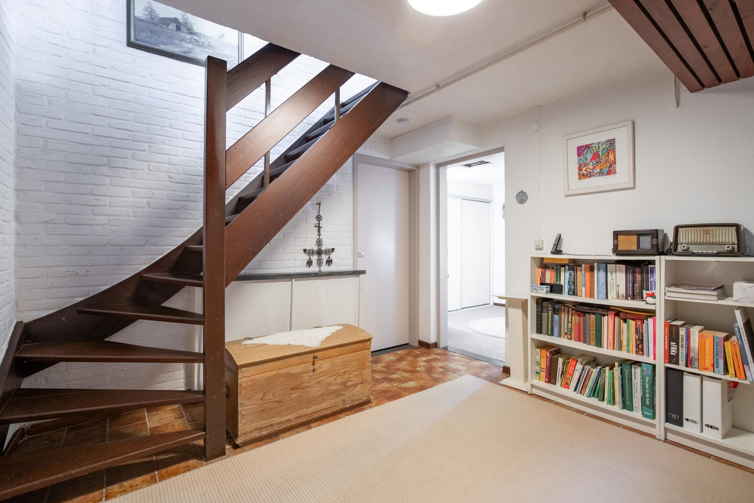 Via de hardhouten bordestrap bereikt u de eerste verdieping. De overloop geeft toegang tot de badkamer drie slaapkamers.