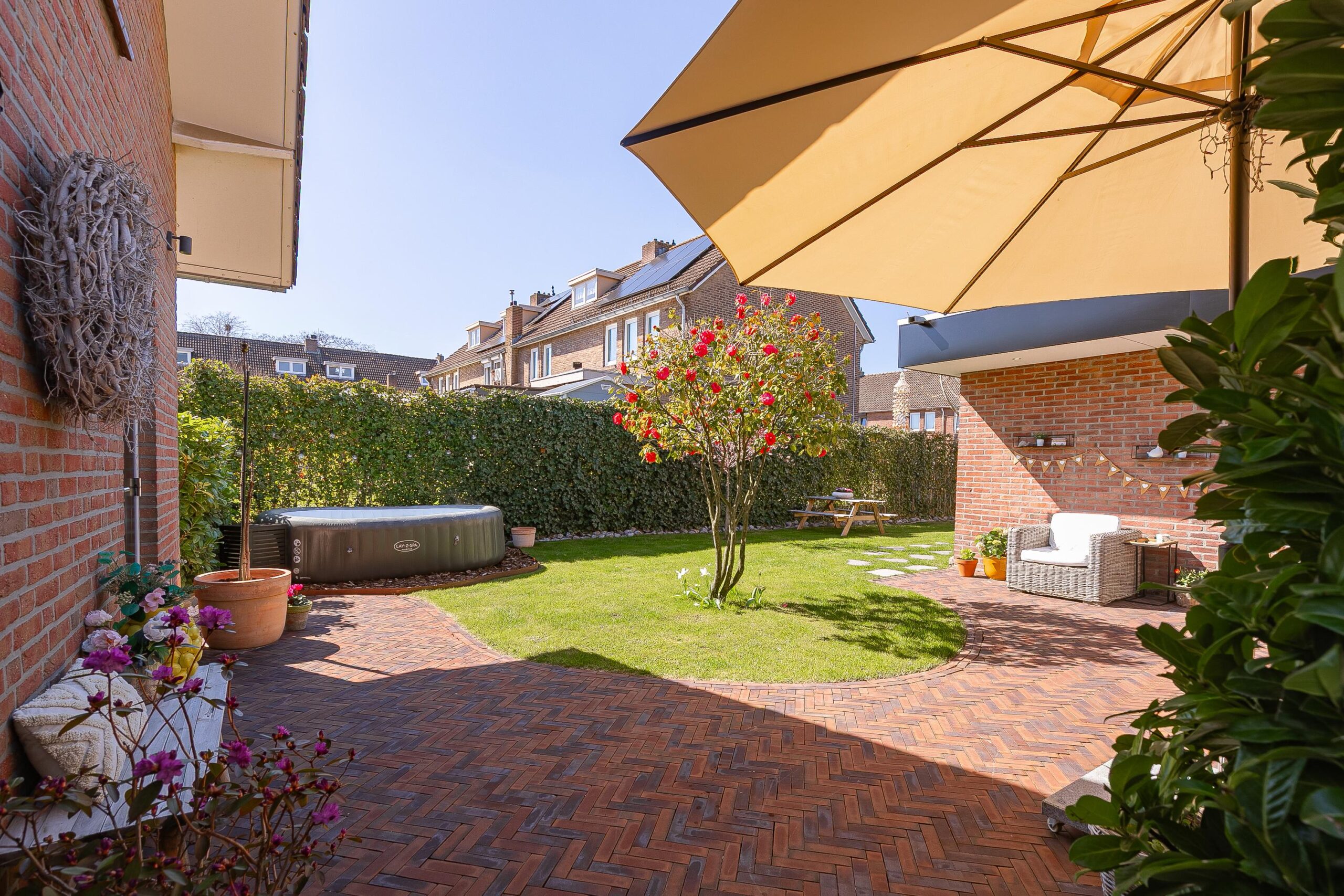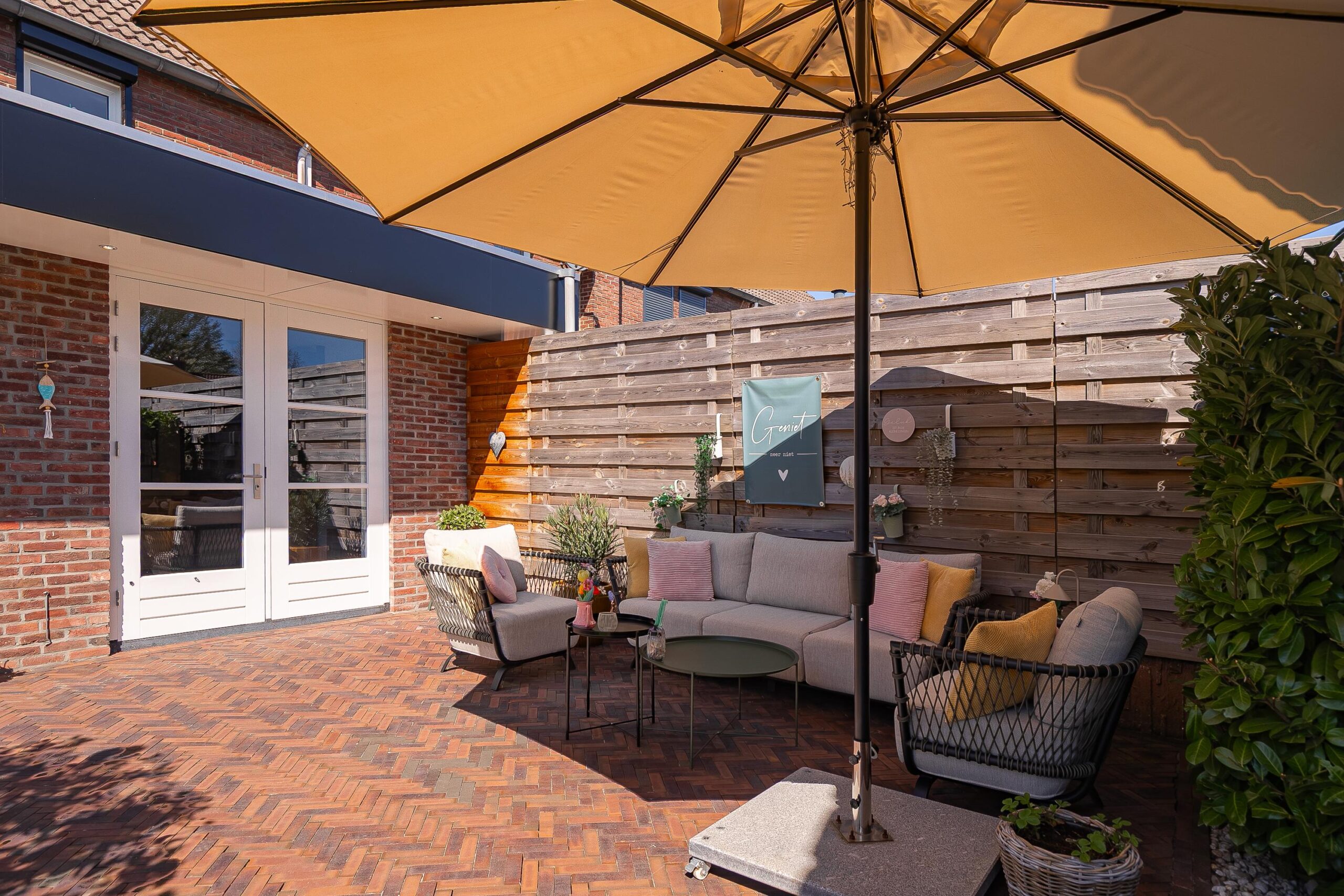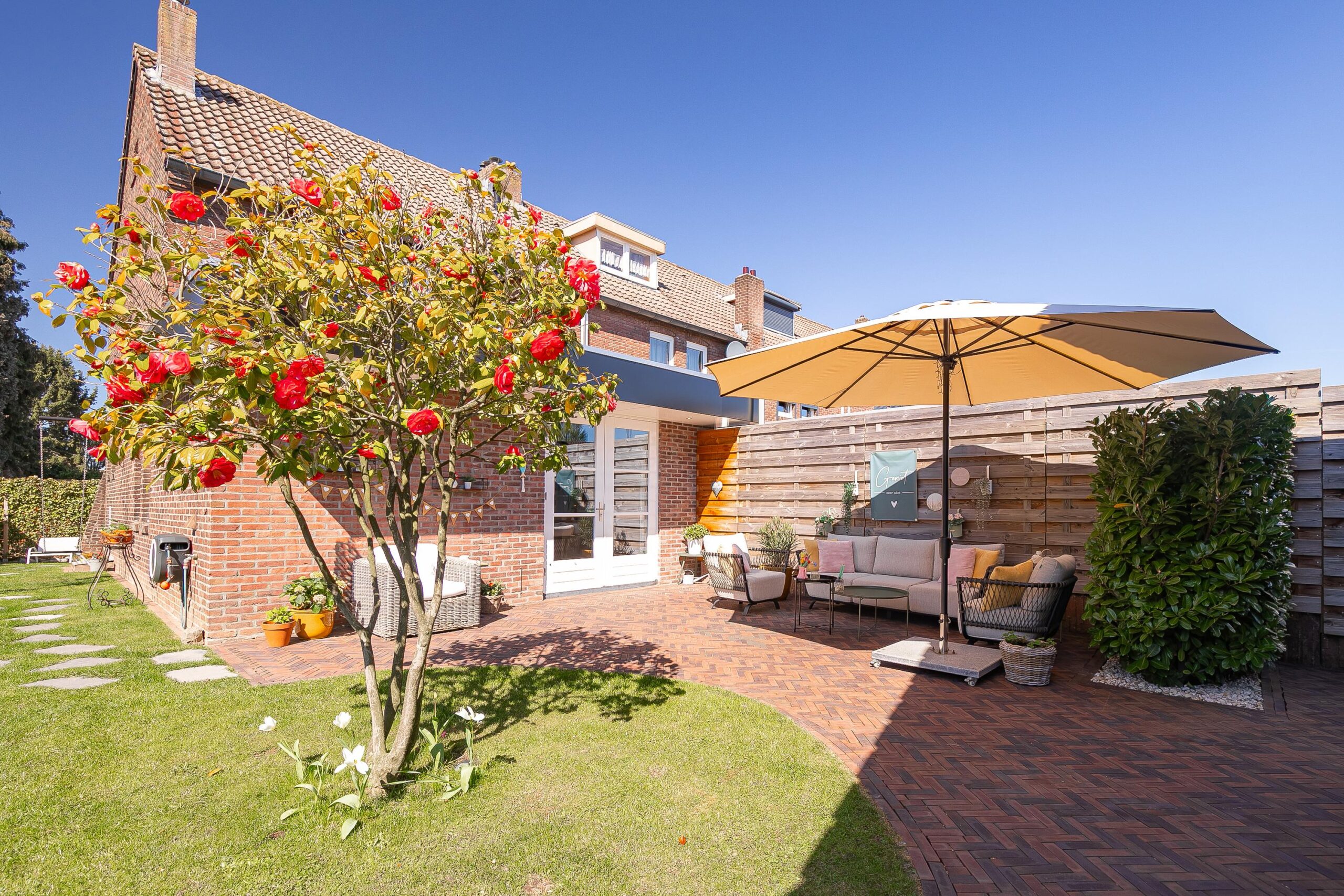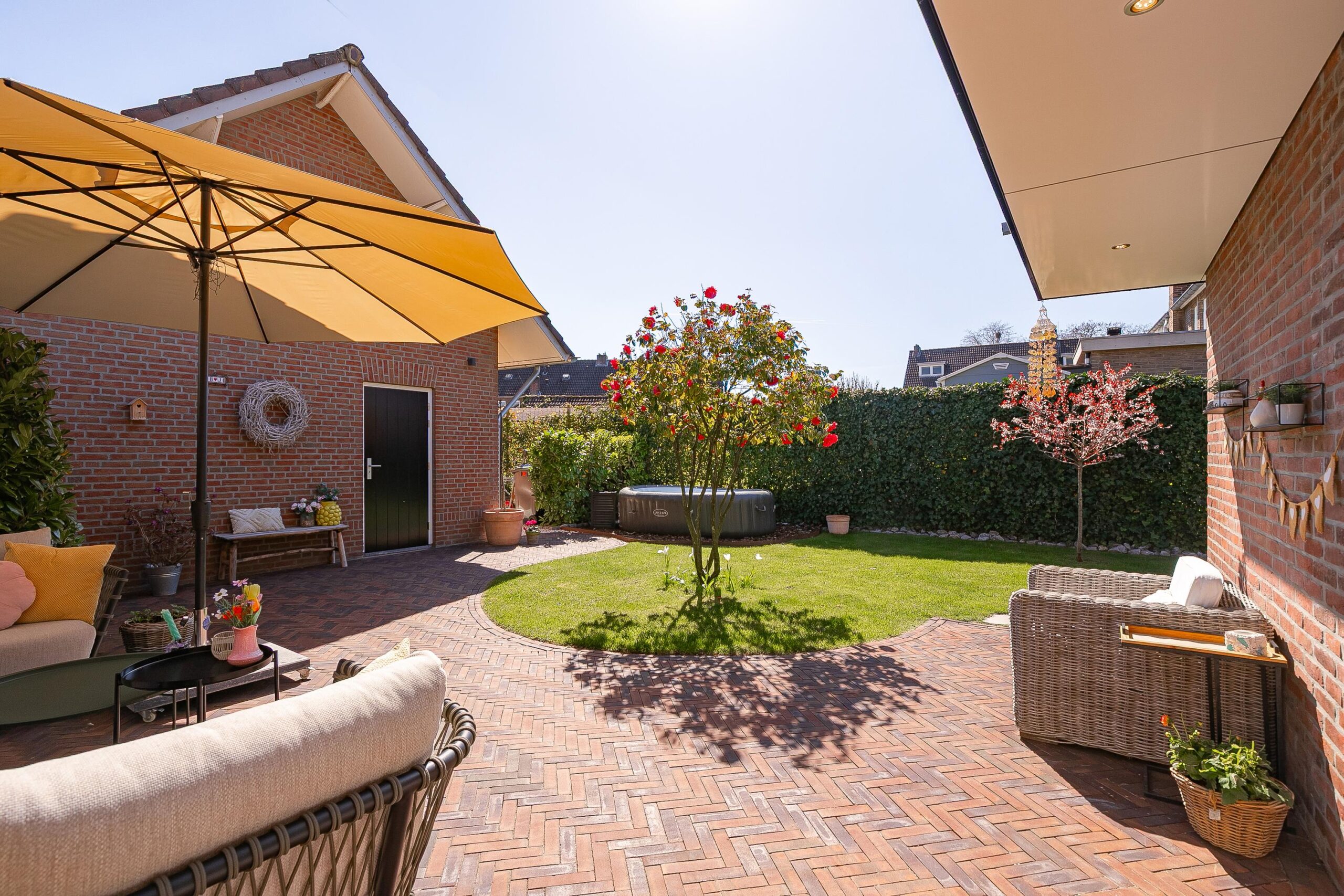 De openslaande deuren van de eetkamer bieden toegang naar de zeer goed onderhouden en perfect aangelegde tuin. De tuin is gelegen op het zuiden en biedt diverse zitplekken door het ruime beklinkerde terras.