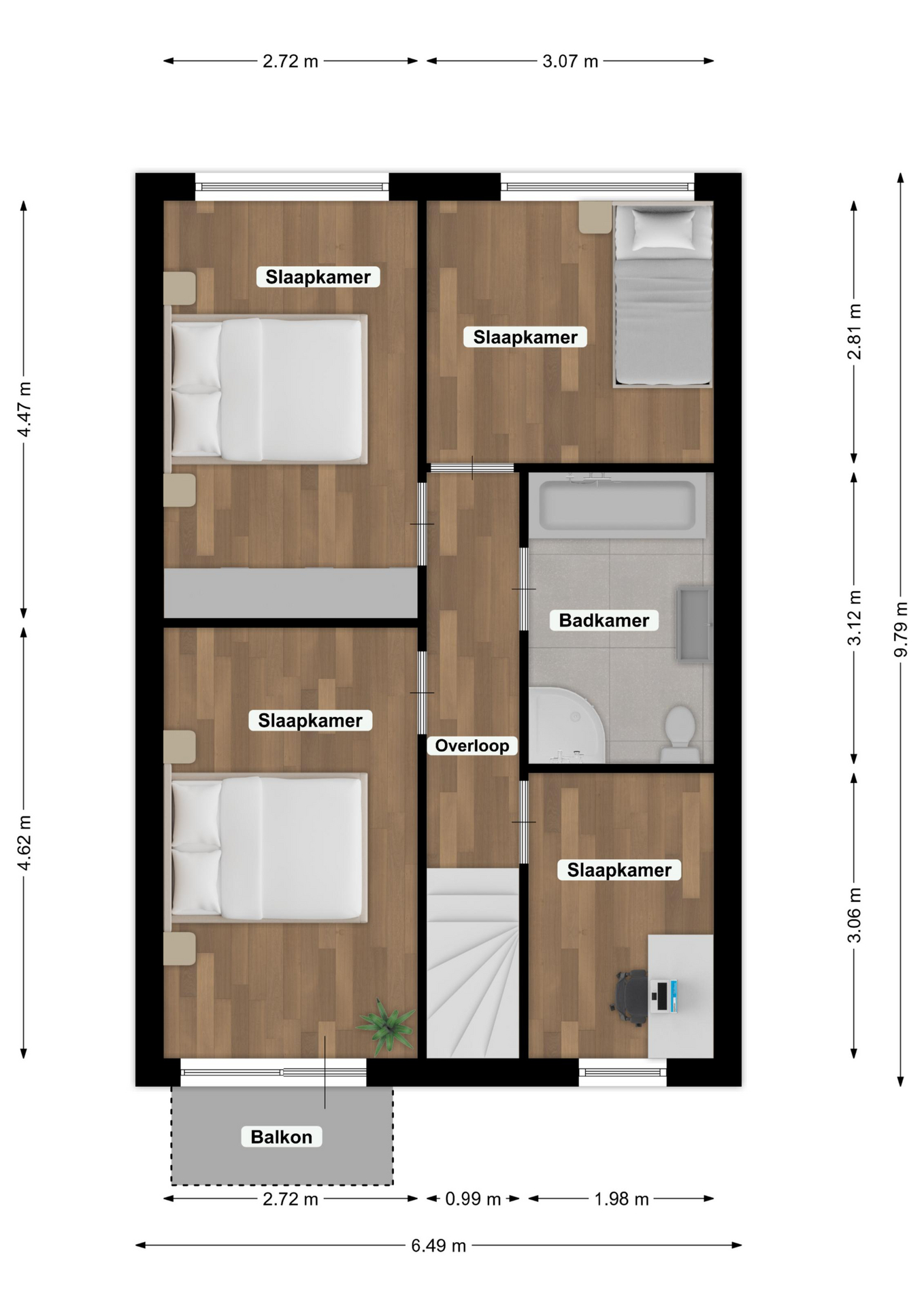 - Oppervlakte gebouwgebonden ca. 3 m2
