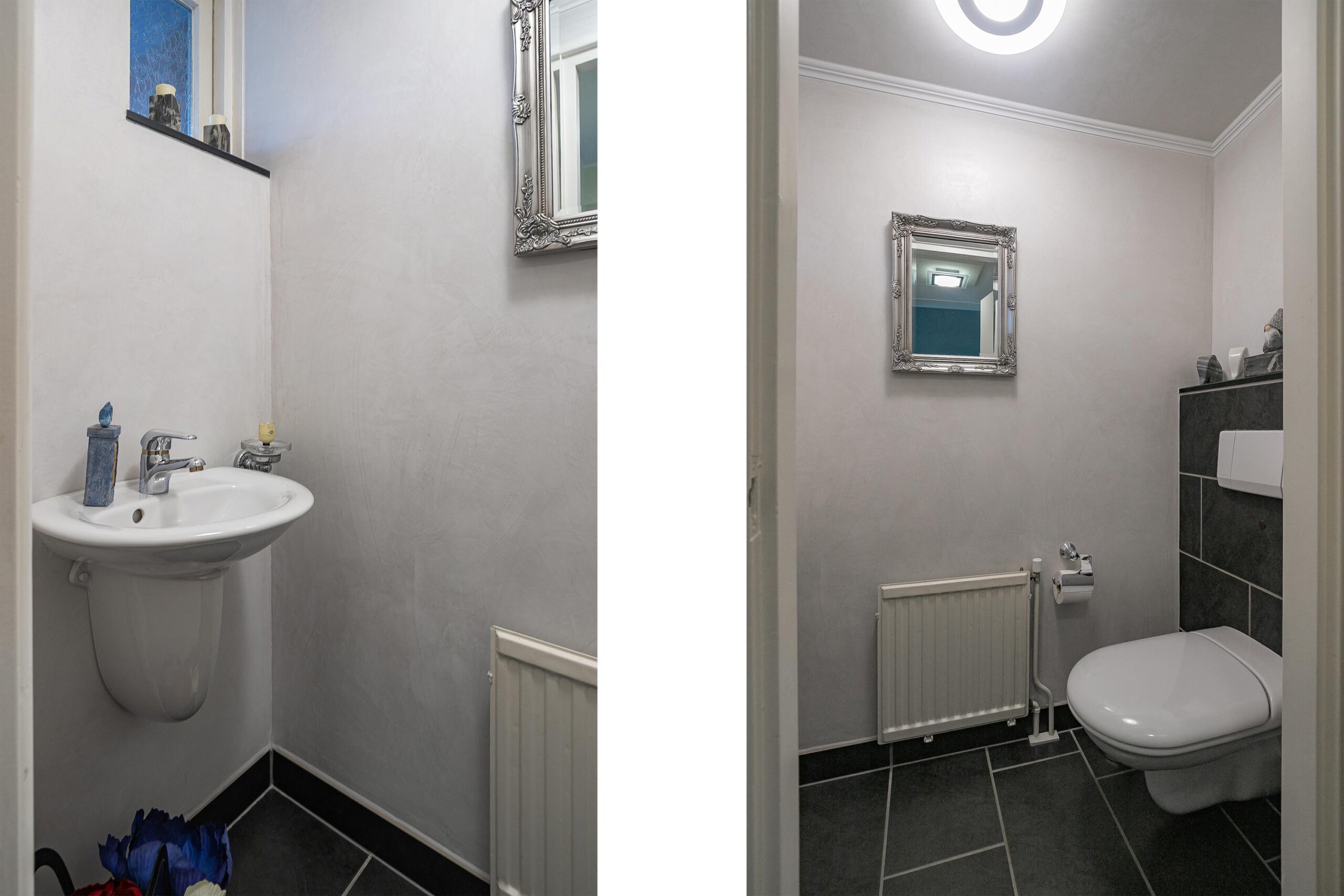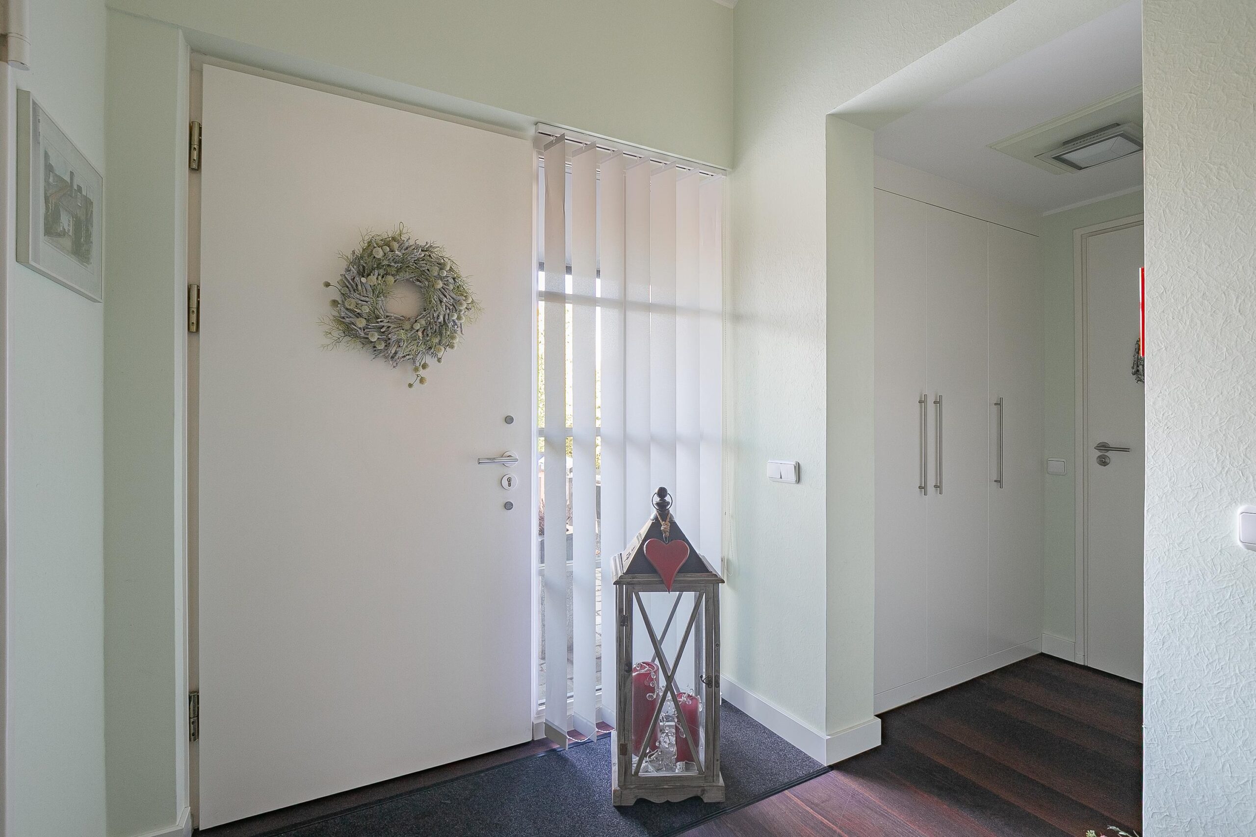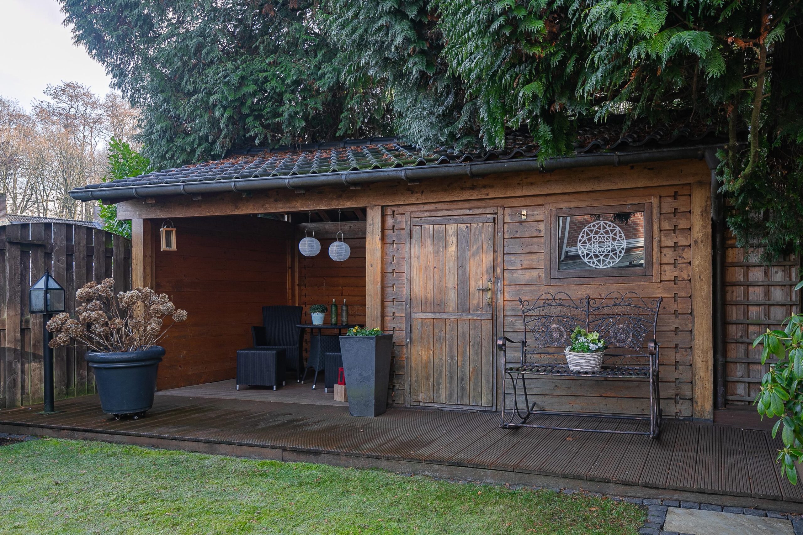 Begane grond: oprit, entree, ruime hal met open trappenhuis. tevens is hier het betegelde en zwevende toilet gelegen met fonteintje, een garderobe- en moderne meterkast en is de garage inpandig toegankelijk. -De woonkamer bestaande uit een zit- en eetgedeelte heeft veel lichtinval en een open keuken met apparatuur waaronder een keramische kookplaat, vaatwasser, oven, koel-, vriescombinatie en afzuigkap. Sommige apparaten zijn pas vernieuwd. De bijkeuken is aansluitend gelegen en biedt plaats voor voorraad en heeft een wasmachine- en drogeraansluiting en C.V.-opstelling. Middels schuifpui is de op het zonnige Zuiden gelegen tuin bereikbaar met overkapping, terras, gazon en een houten tuinhuis met loungehoek. Tevens is de tuin via een achterom gelegen pad bereikbaar.