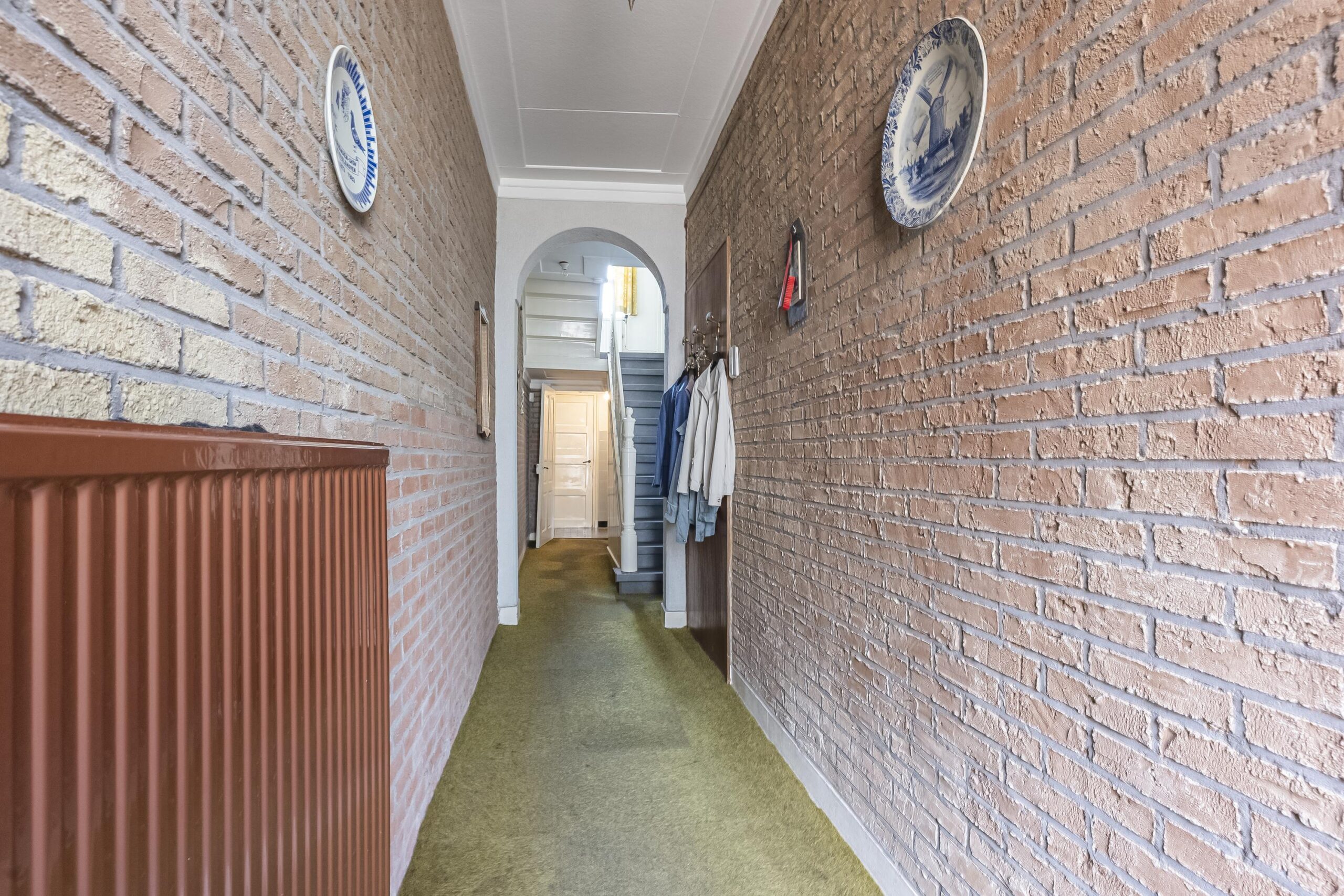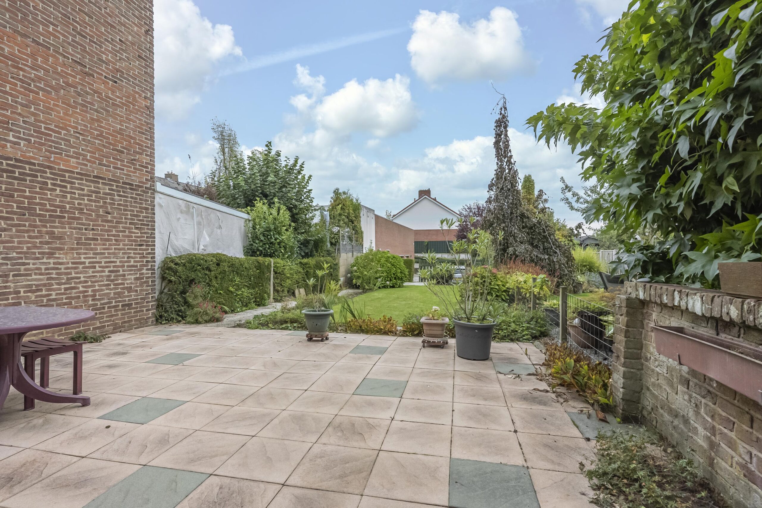 Vanuit deze tussenhal kom je in de tuin met gazon, terras en een aangebouwde stenen buitenberging. De tuin is momenteel via achterom bereikbaar. Echter na verkoop van het achtergelegen terrein met garages aan derden zal middels recht van overpad deze mogelijkheid blijven bestaan.