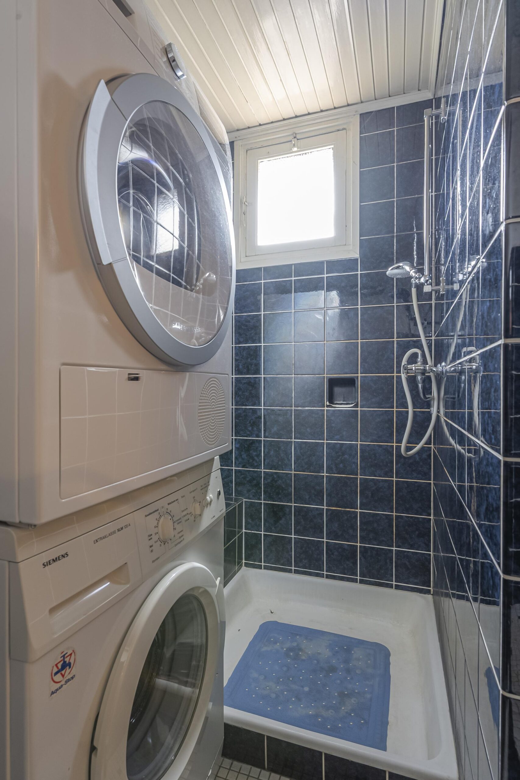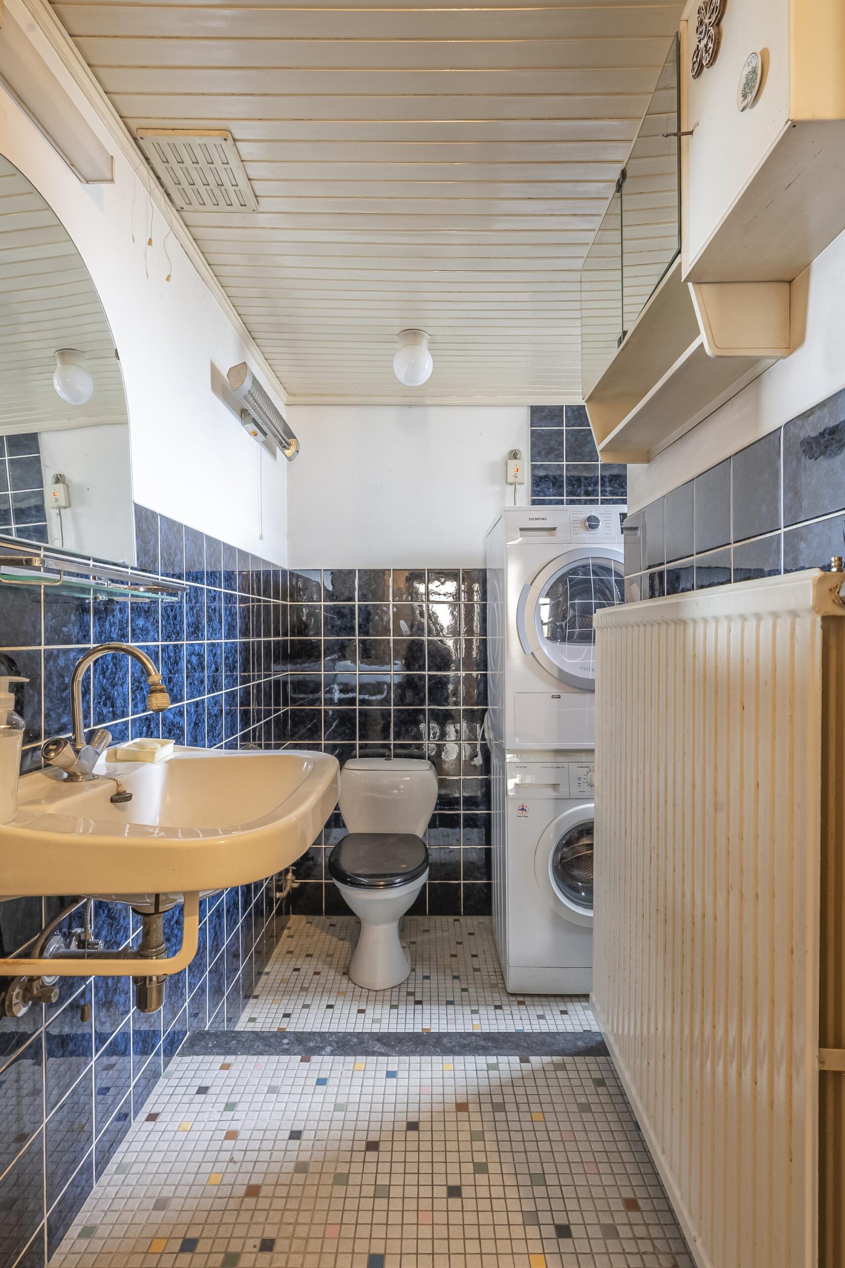 Vanuit de hal is de kelder bereikbaar. Via een deur naar een overloop kom je in de aanbouw, met badkamer, wastafel, toilet douche en aansluiting voor wasmachine en droger.