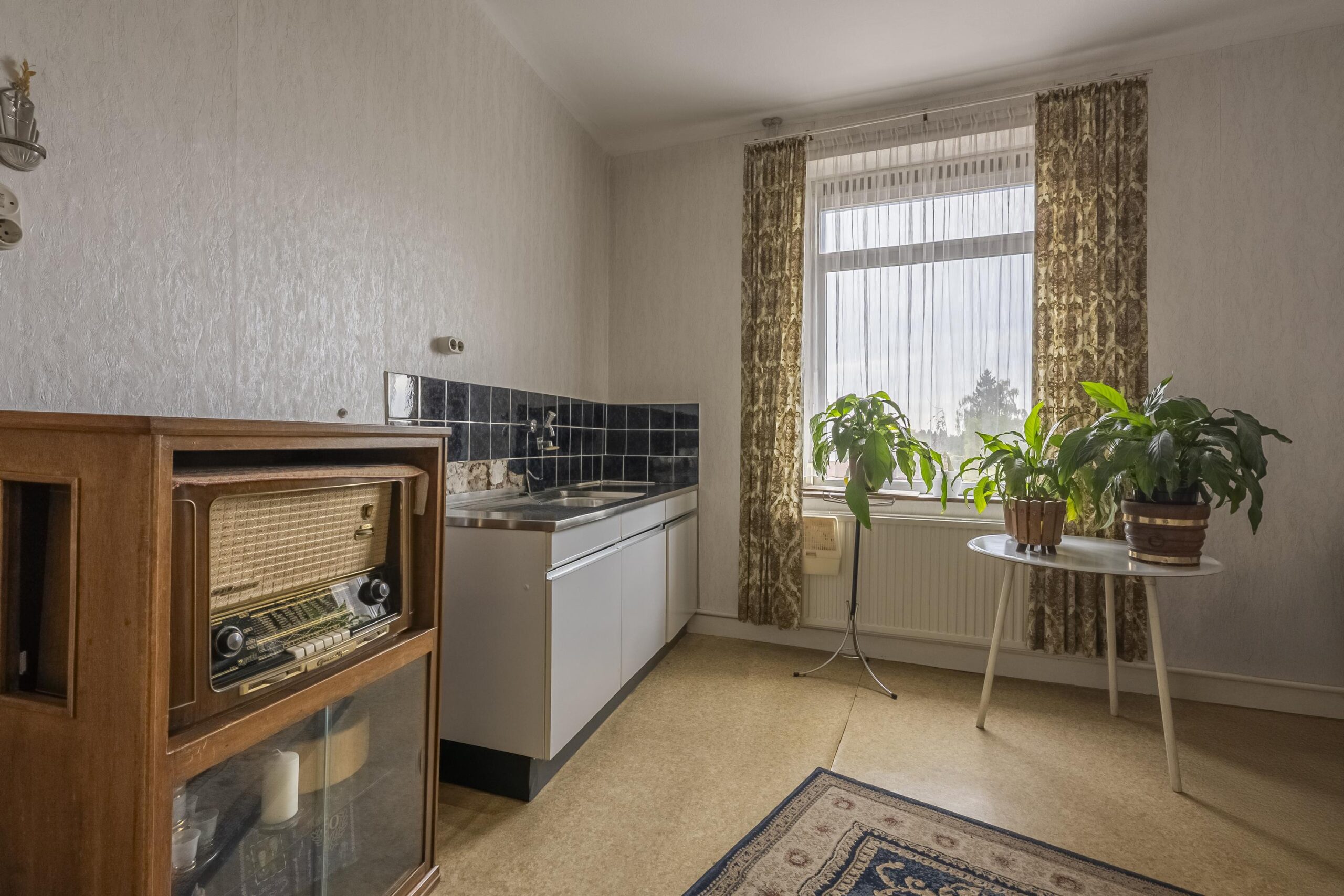 Eerste verdieping: overloop met twee ruime kamers. Te gebruiken als slaapkamer(s) maar vanuit verleden gebruikt als woonverdieping wat de aanwezigheid van het keukenblok verklaart.