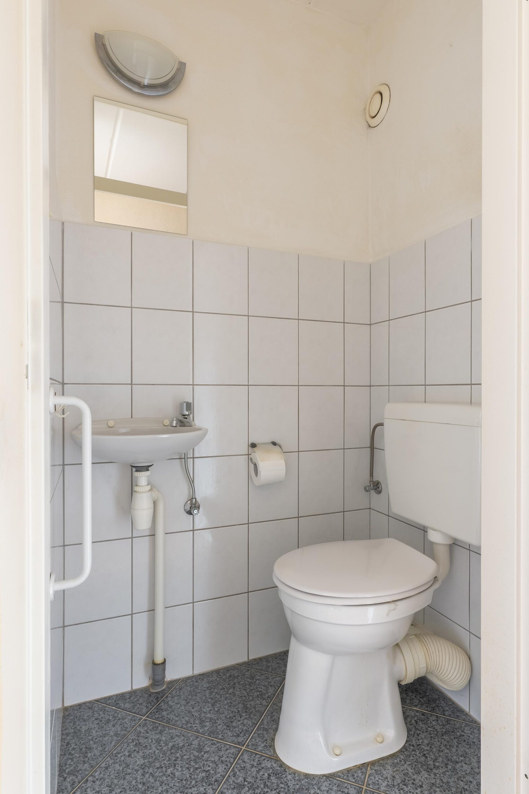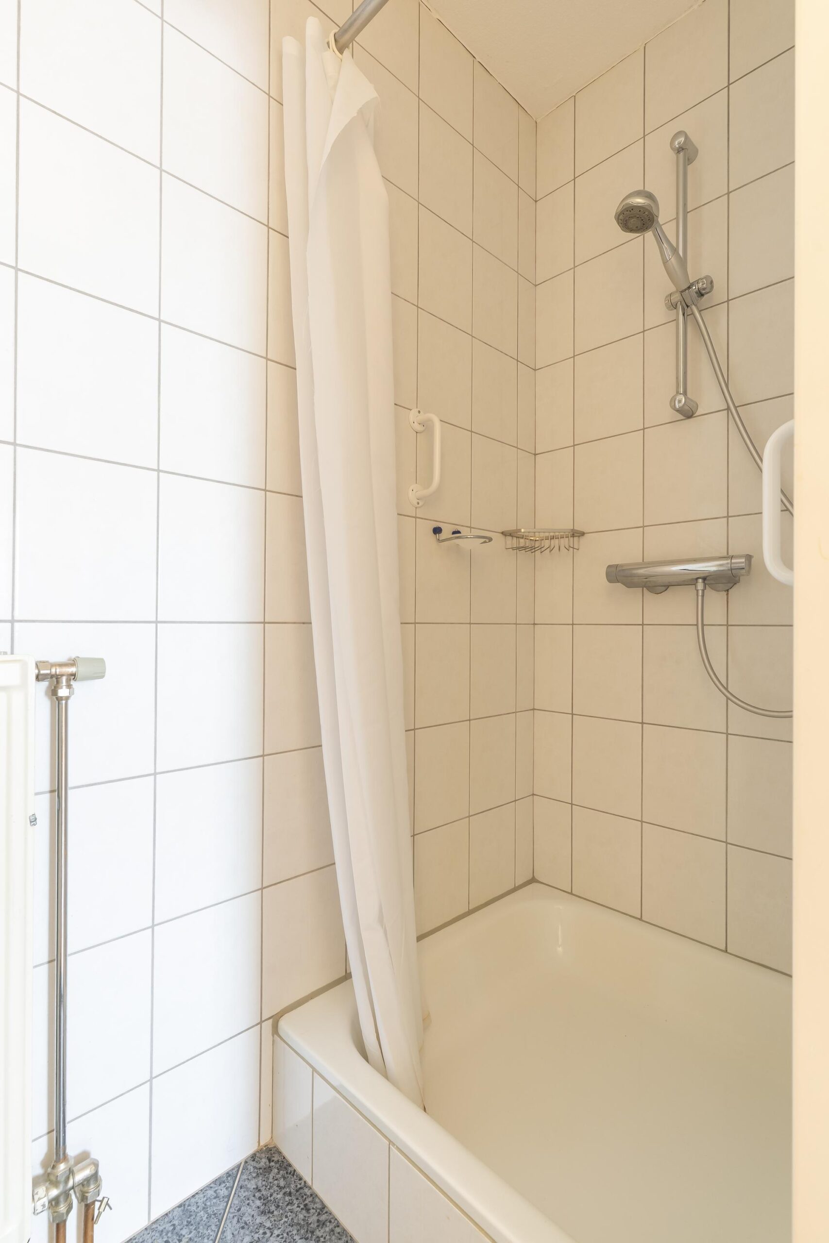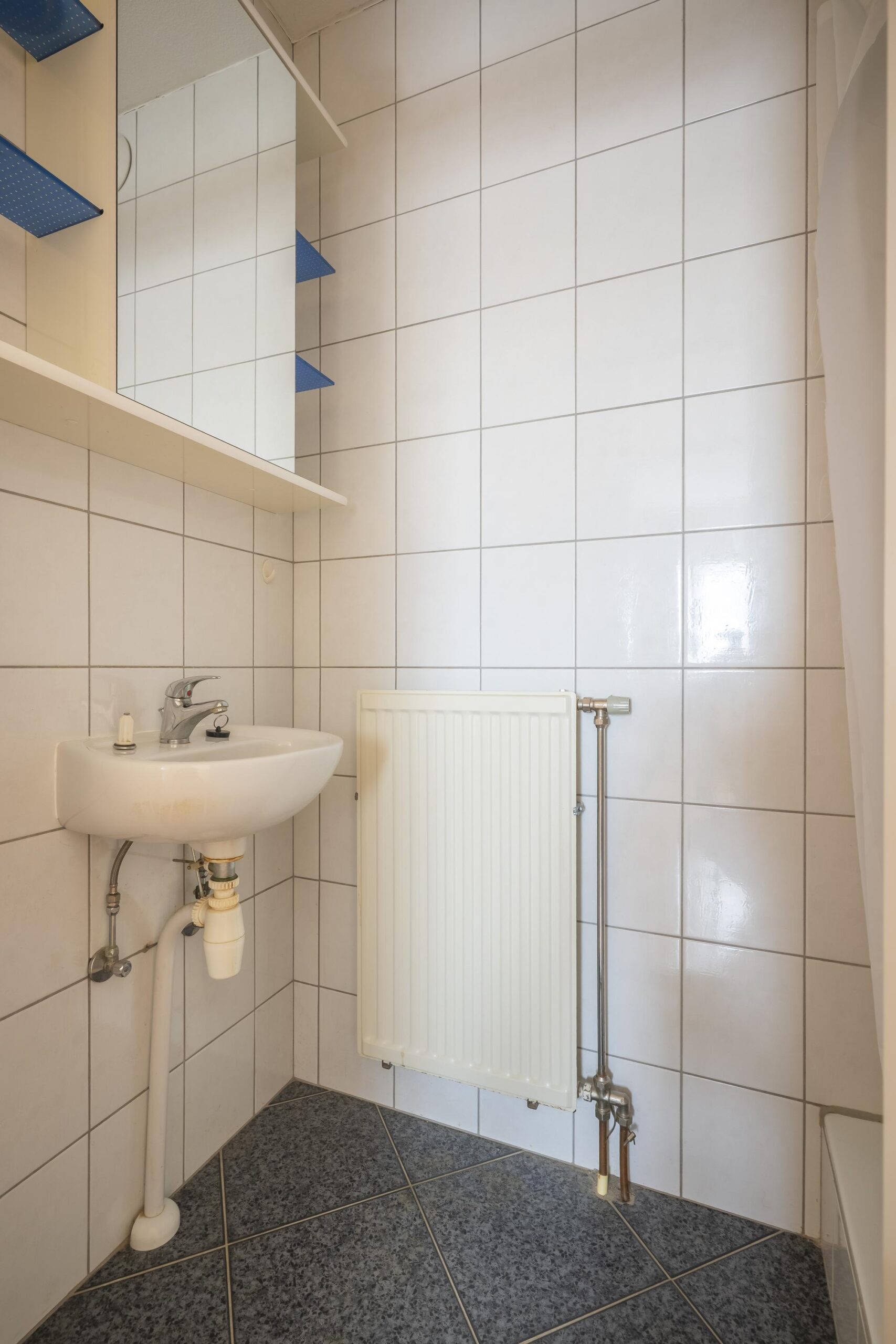 De badkamer voorzien van douche en badkamermeubel met vaste wastafel. Separaat toilet. Via woonkamer te bereiken zonnig gelegen balkon (4m2).