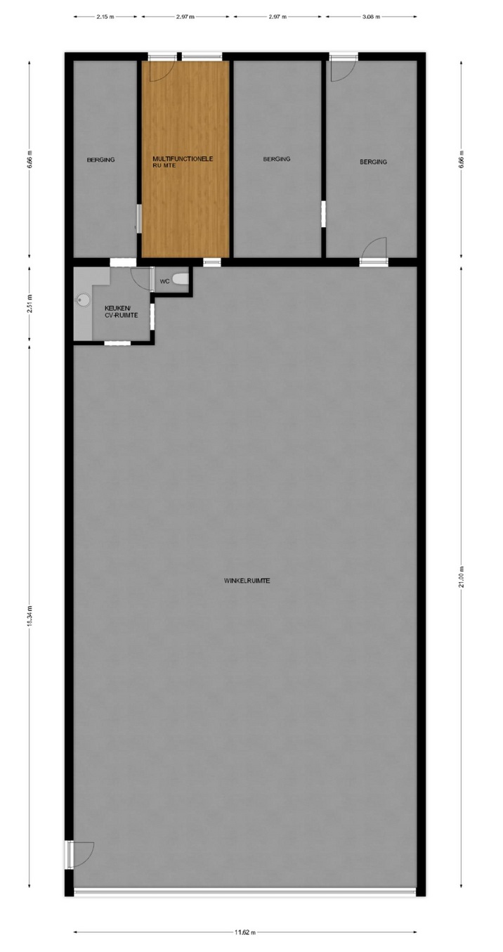 Verder bevindt zich hier een multifunctionele ruimte van 6.66 x 2.97.