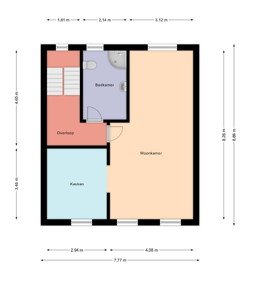 - Badkamervoorzieningen Toilet, douche, wastafel