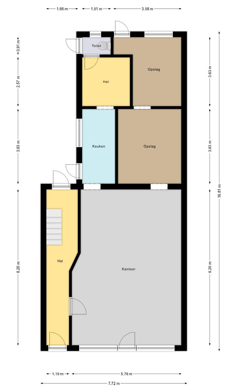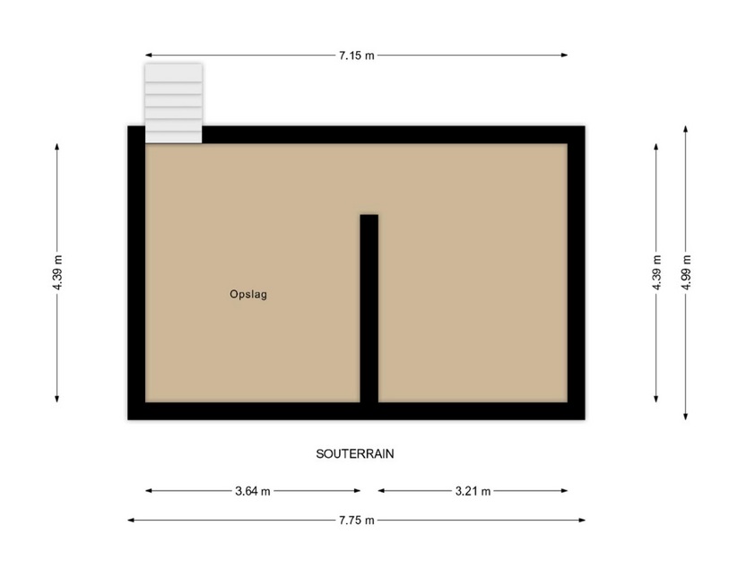 Het souterrain is opgedeeld in 2 ruimtes; respectievelijk groot ca. 16 m² en 14 m².