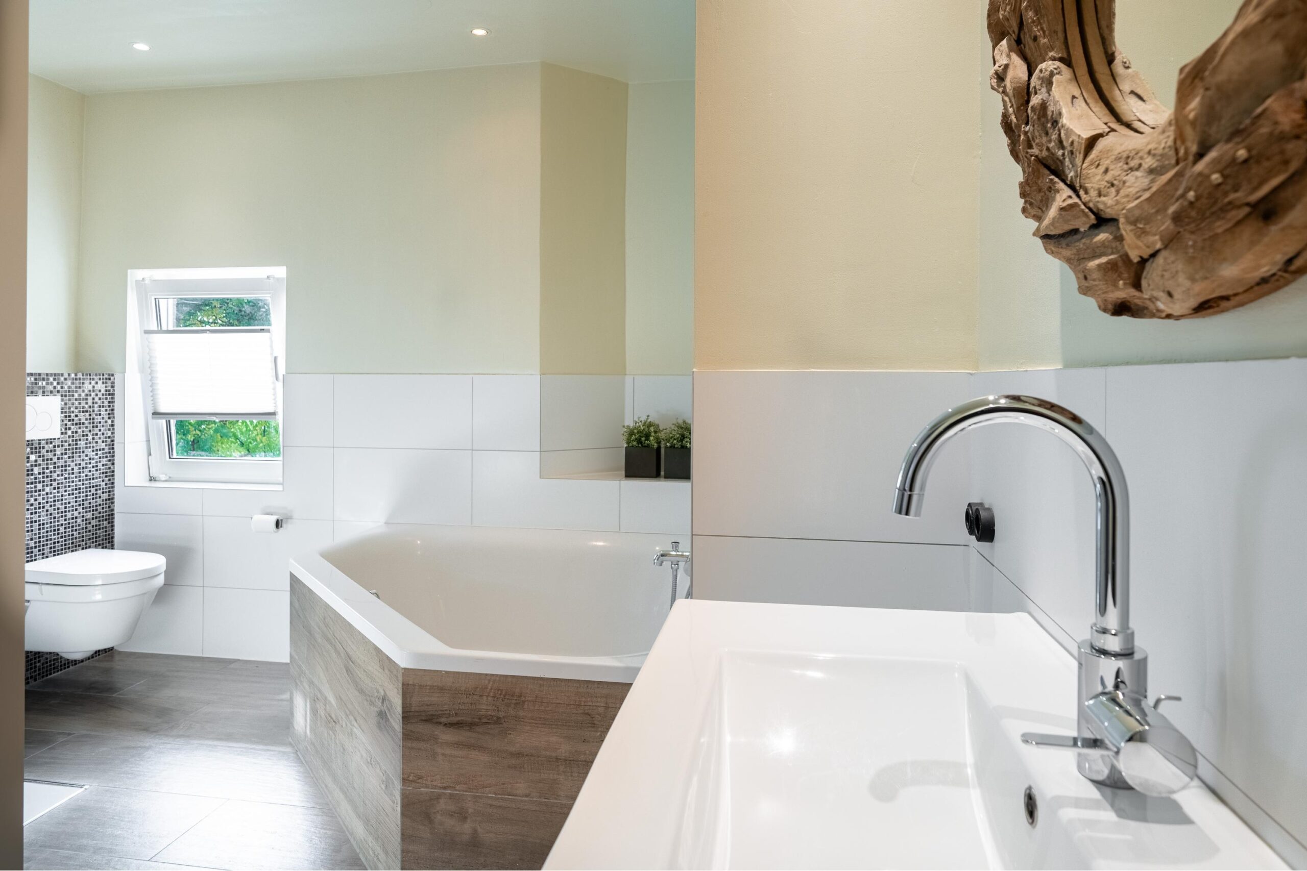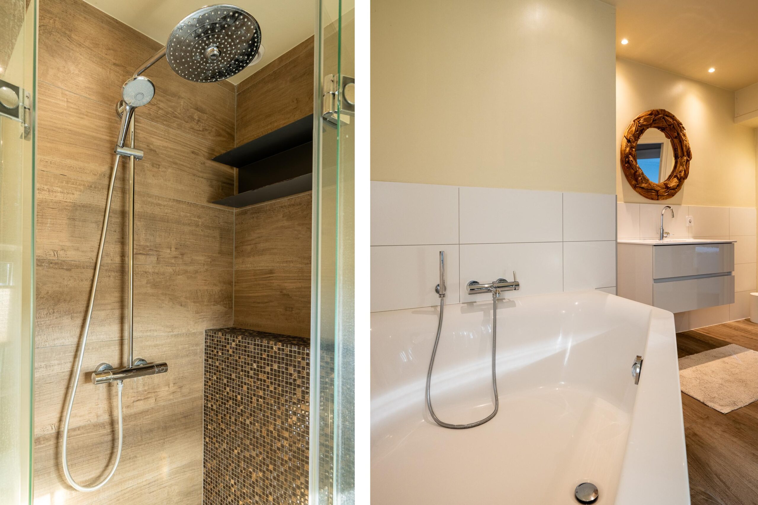 - Badkamervoorzieningen Ligbad, wastafel, wastafelmeubel, inloopdouche