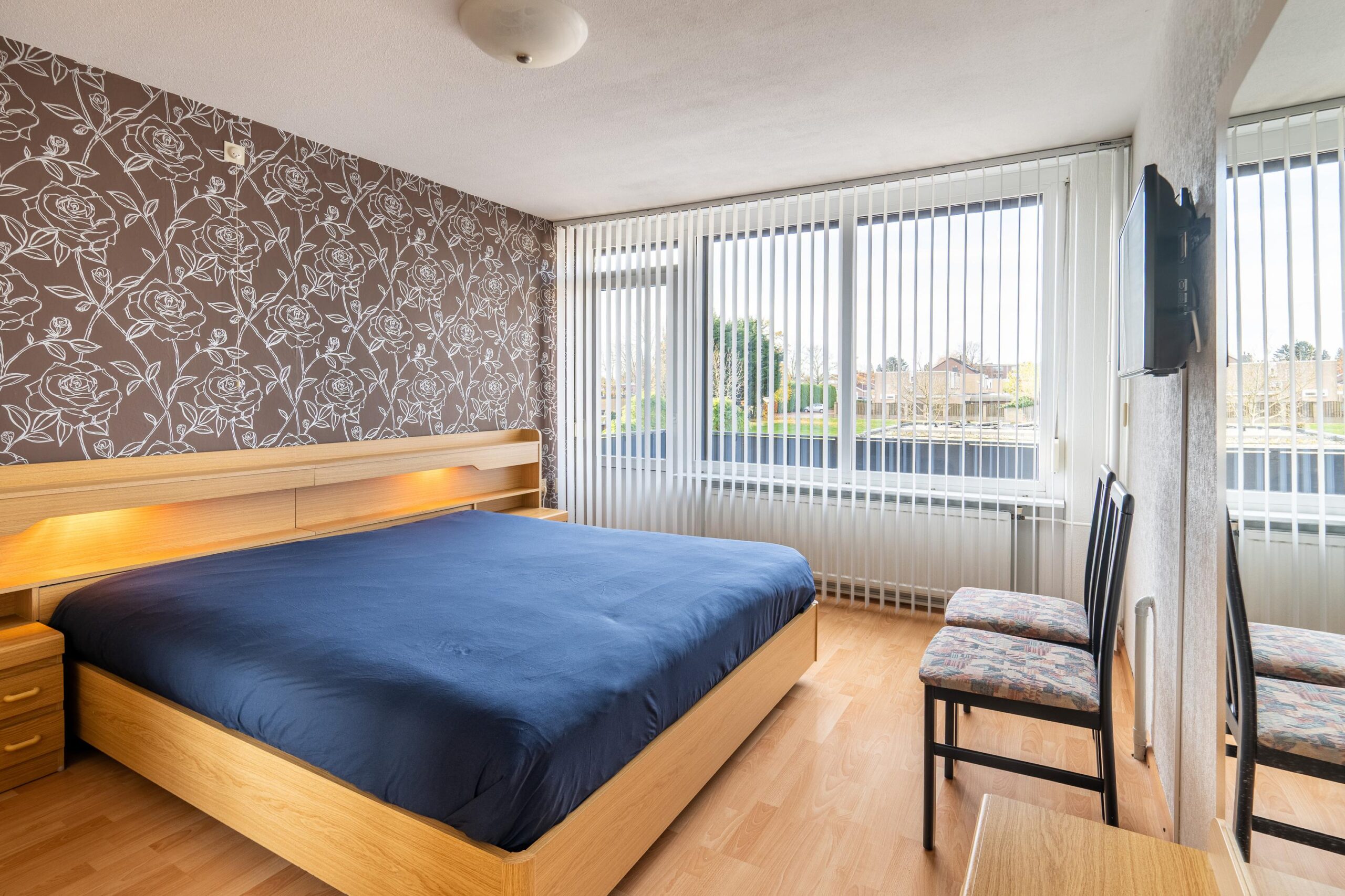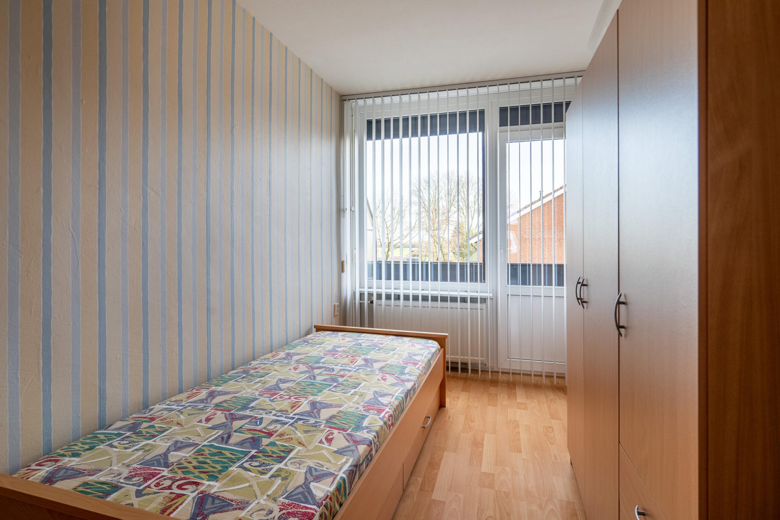 Overloop met toegang tot drie ruime en netjes afgewerkte slaapkamers, waarvan twee met balkon.