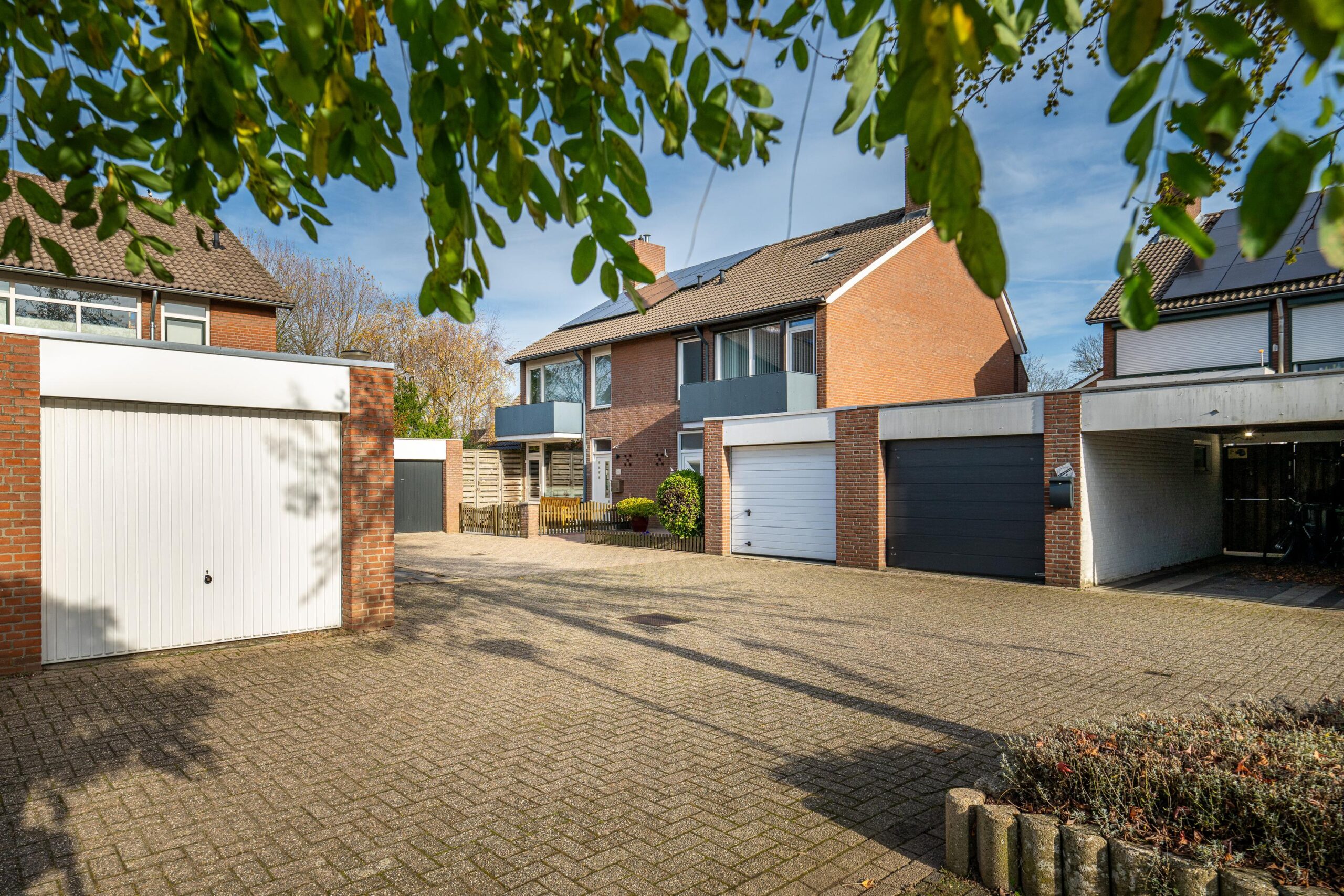 Via zowel de woonkamer als de garage is de geheel omsloten, zonnige tuin bereikbaar, die veel privacy biedt. De naastgelegen garage beschikt over een elektrische sectionaalpoort en een wateraansluiting.