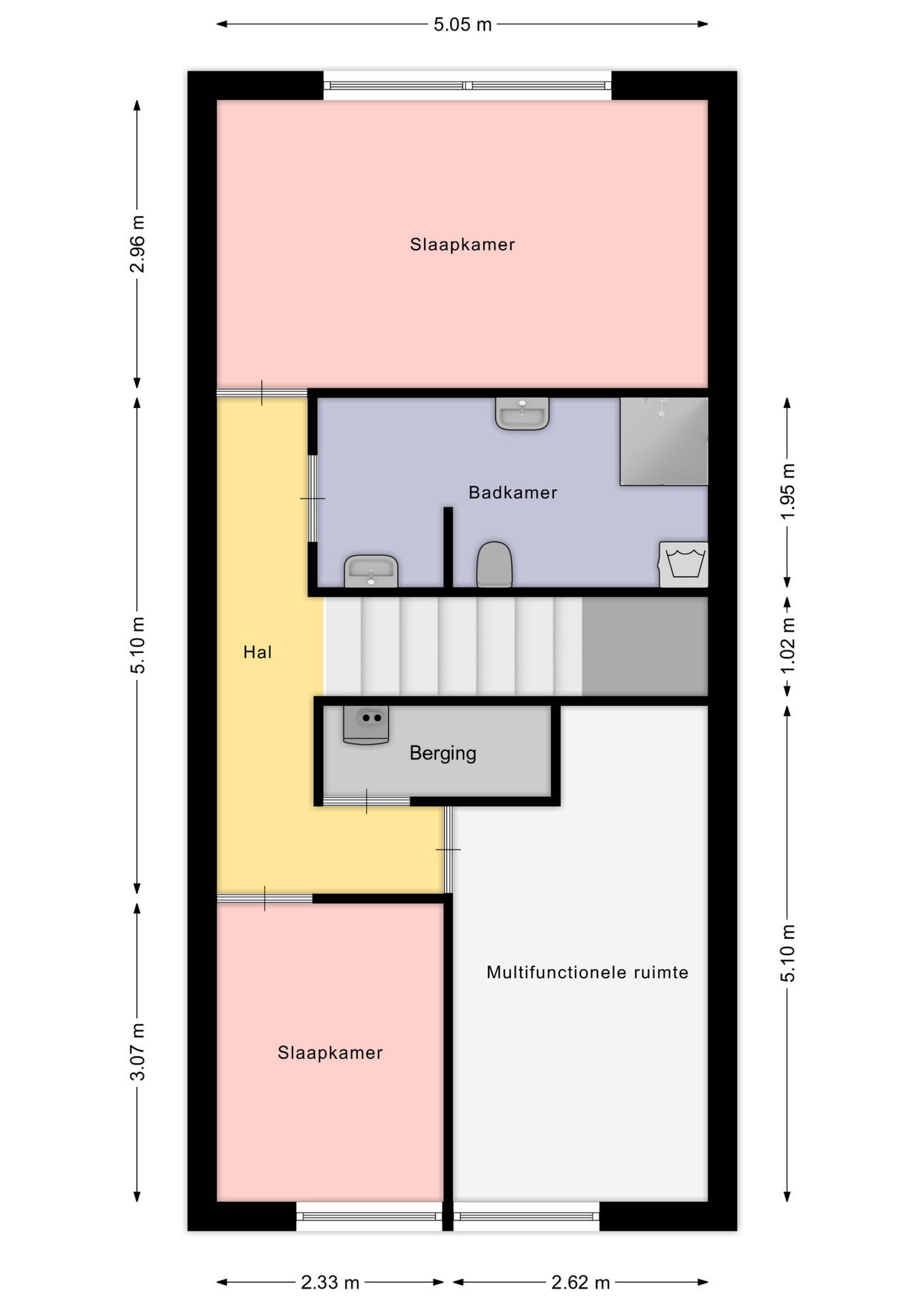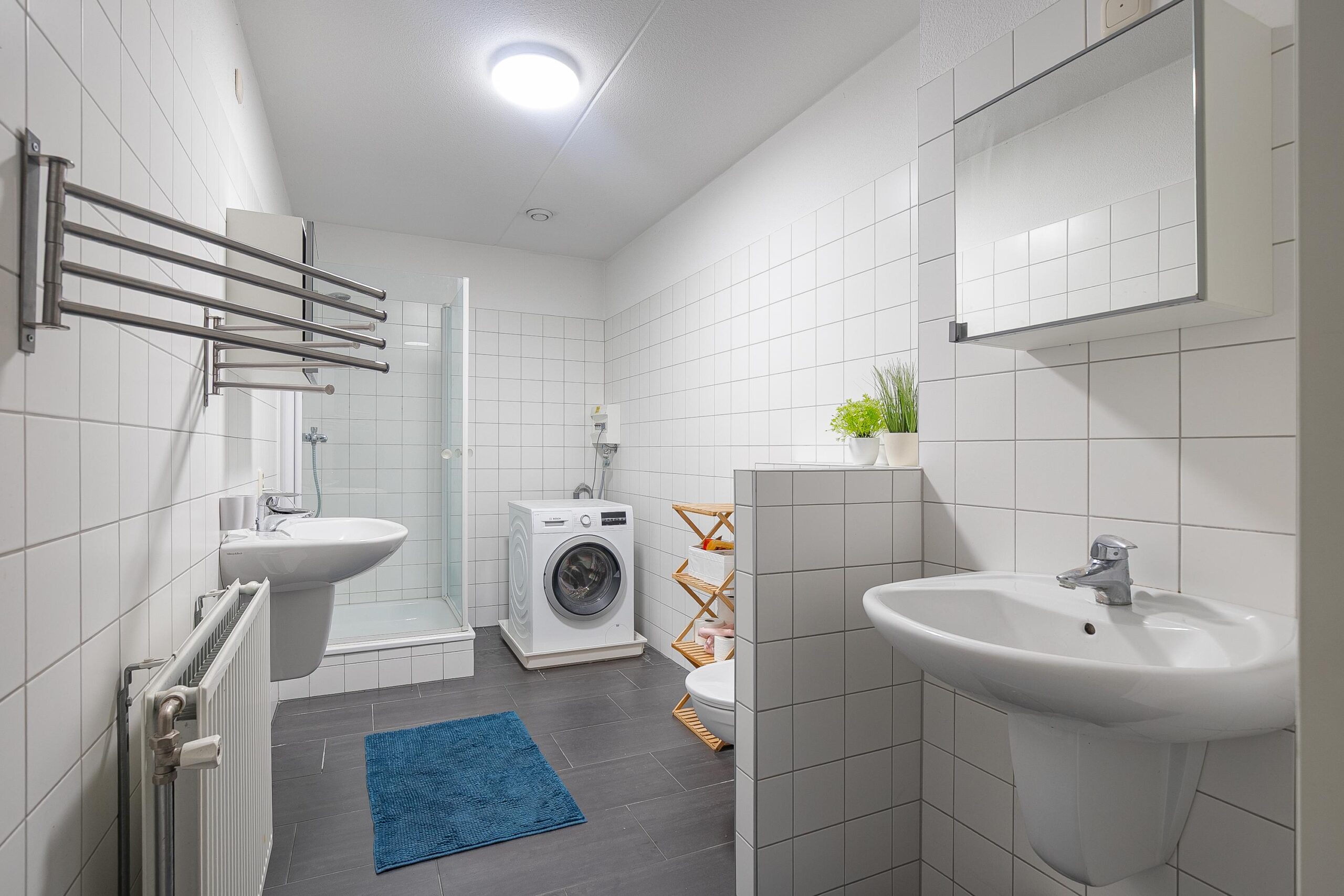 Vanaf de overloop zijn er twee slaapkamers bereikbaar van ca. 15 m² en 7 m². Daarnaast is er een multifunctionele ruimte die nu wordt gebruikt als studio, maar ook als extra slaapkamer kan dienen. Via de overloop is tevens de tweede badkamer te bereiken, voorzien van twee wastafels, een douche, een toilet en aansluitingen voor witgoed. Verder is er een berging aanwezig, waar ook de cv-ketel staat.