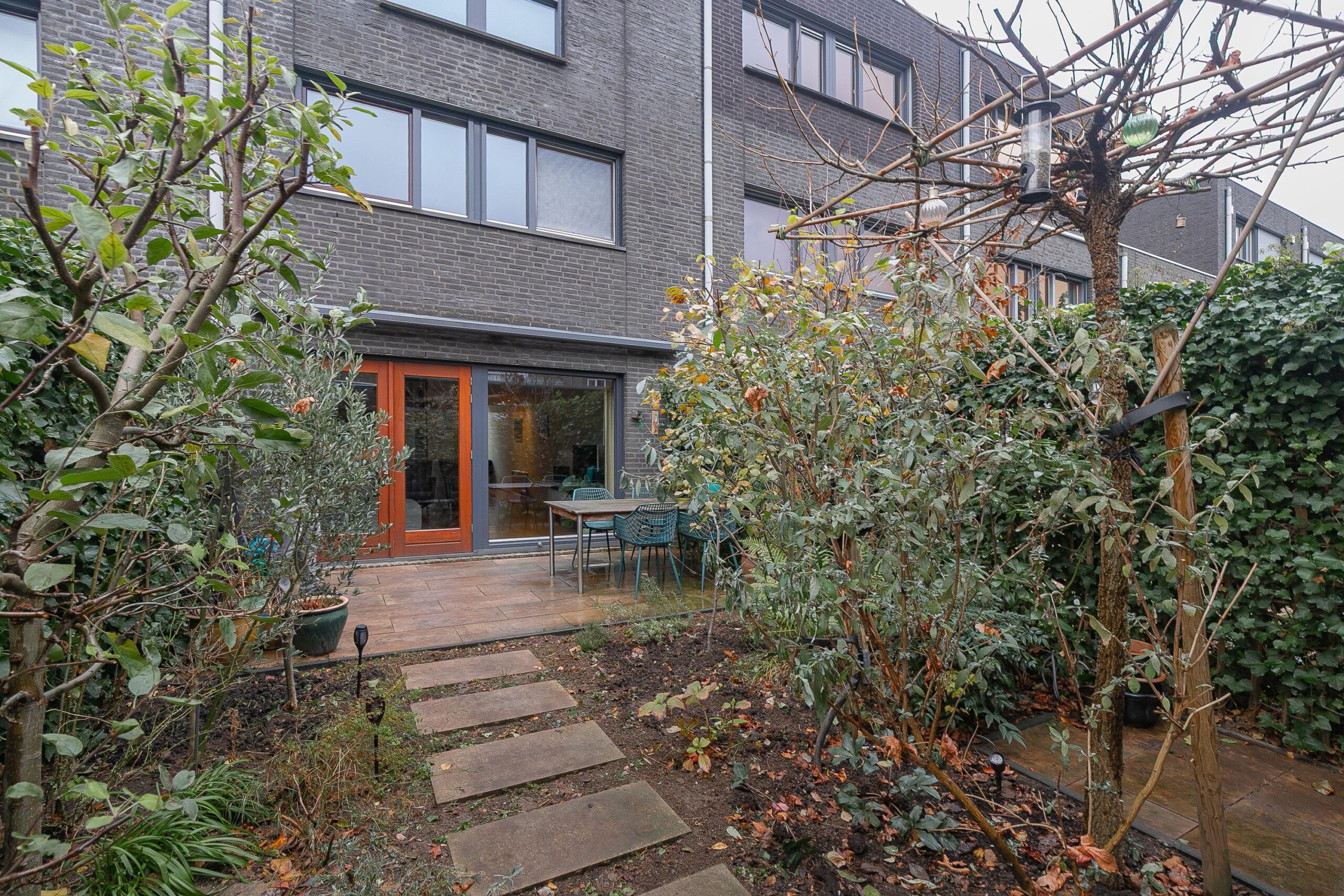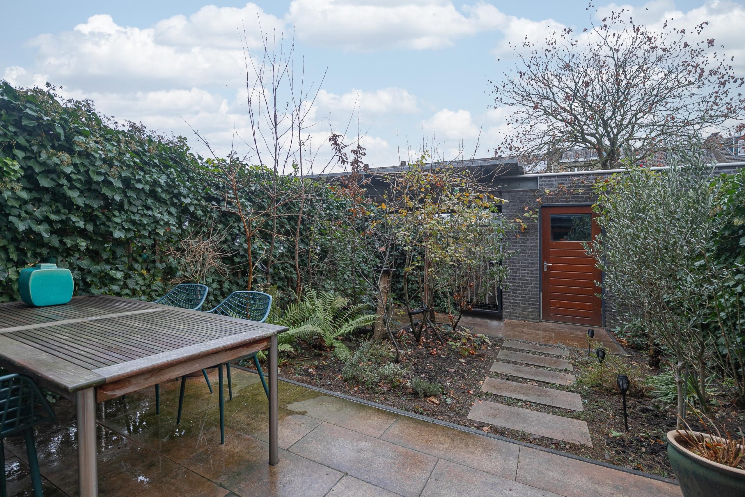 De tuin is geheel omsloten en westgeoriënteerd. Achter in de tuin bevindt zich een stenen buitenberging en is er toegang tot de privécarport. Het terras is bovendien voorzien van een elektrisch bedienbaar zonnescherm met weerstation.