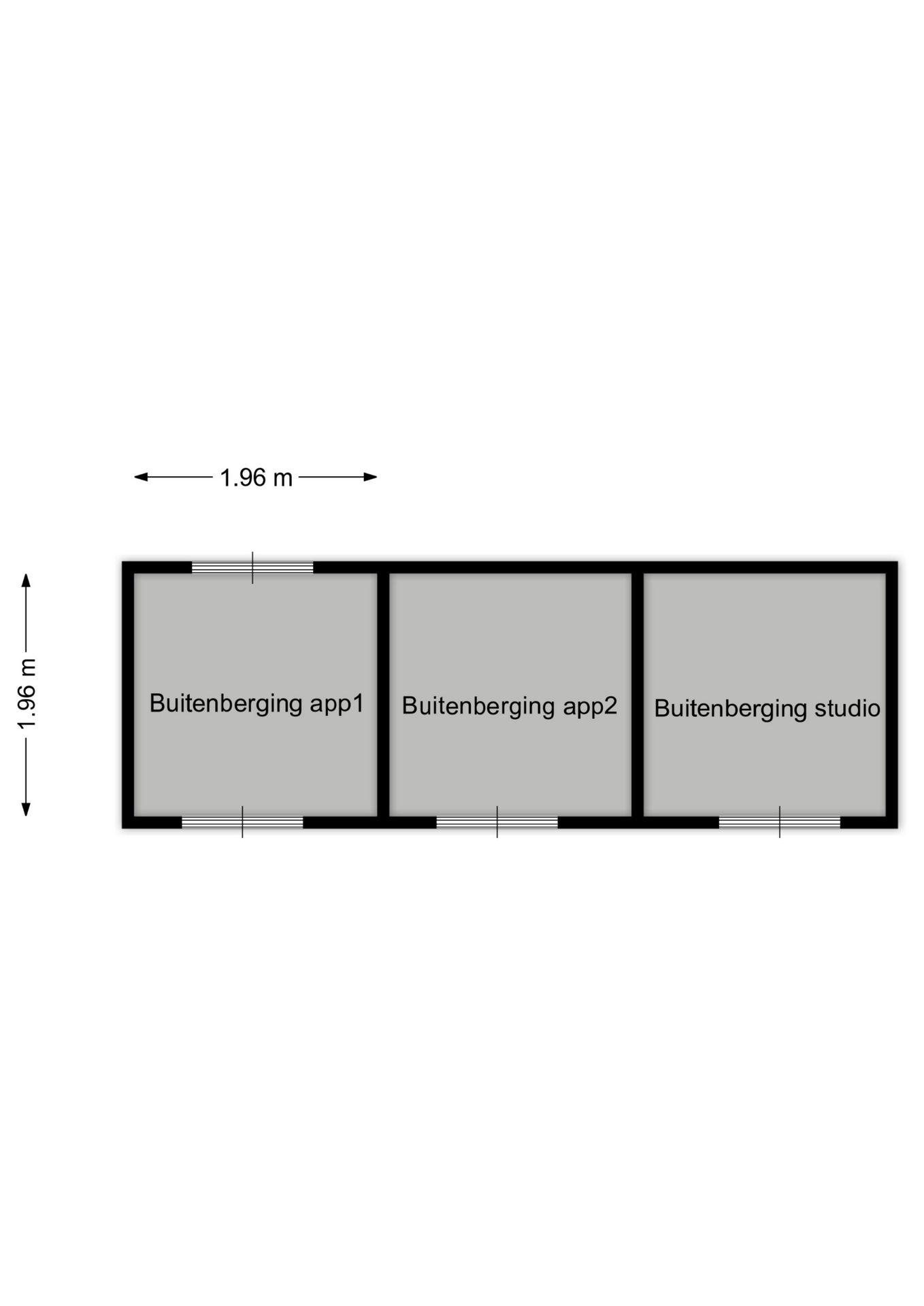 – Drie separate buiten-bergingen; bereikbaar via recht van overpad (ca. 4 m² per stuk), geschikt als fietsenstalling voor de drie appartementen;