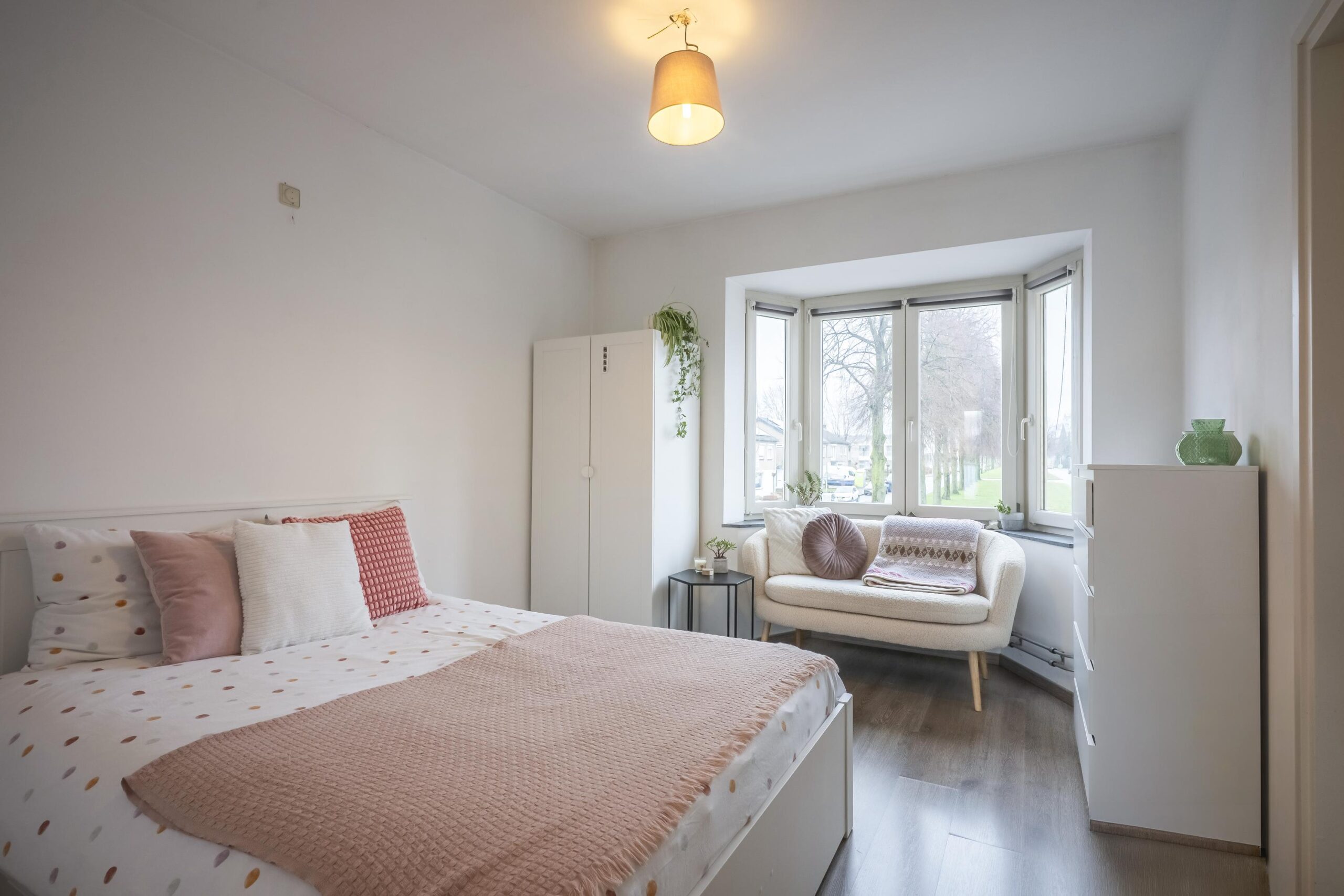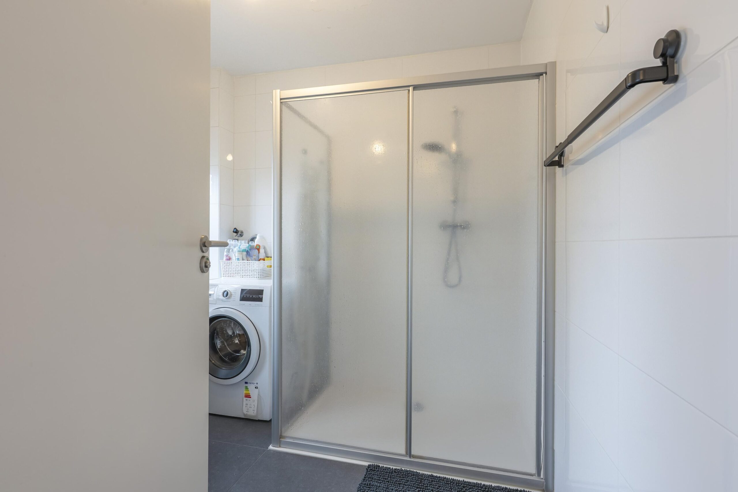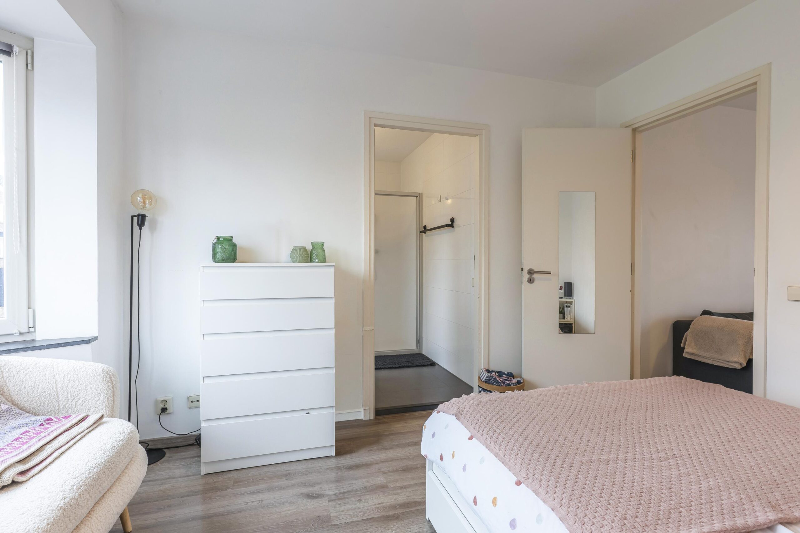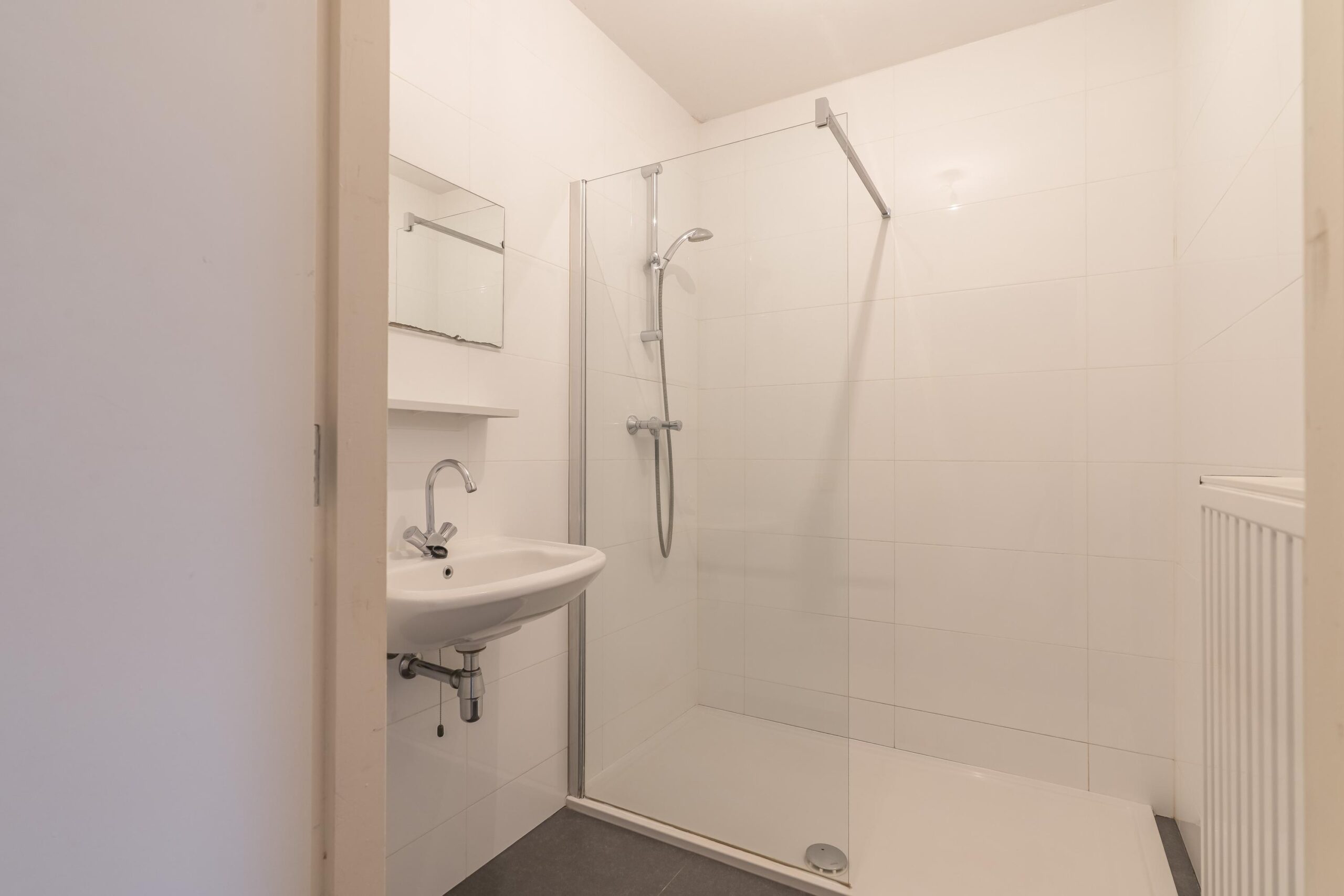 De slaapkamer (ca. 11 m²) biedt toegang tot de badkamer (ca. 6 m²), uitgerust met douche, wastafel en witgoedaansluiting.
