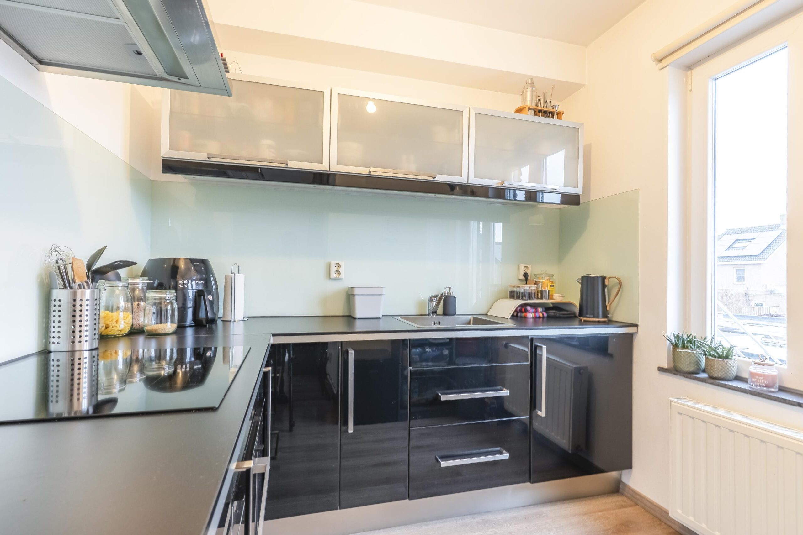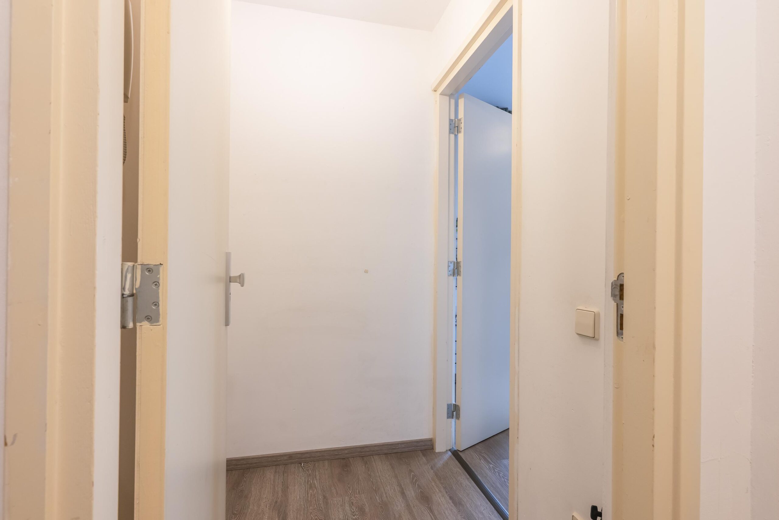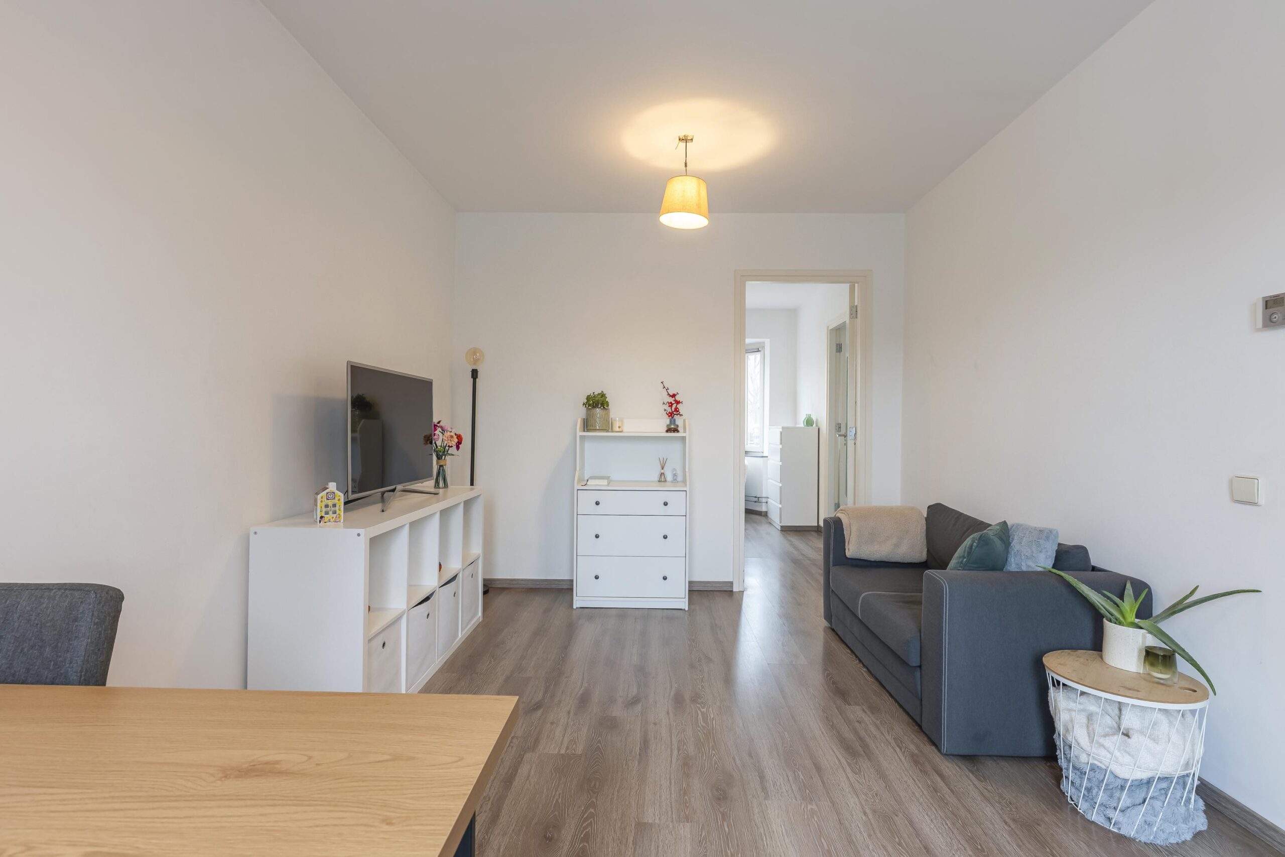 Vanuit de hal toegang tot het toilet en de lichte woonkamer (ca. 16 m²). De keuken (ca. 6 m²) is voorzien van een inductiekookplaat, combi-oven, afzuigkap en spoelbak. Vanuit de woonkamer is het balkon (ca. 8 m²) bereikbaar.