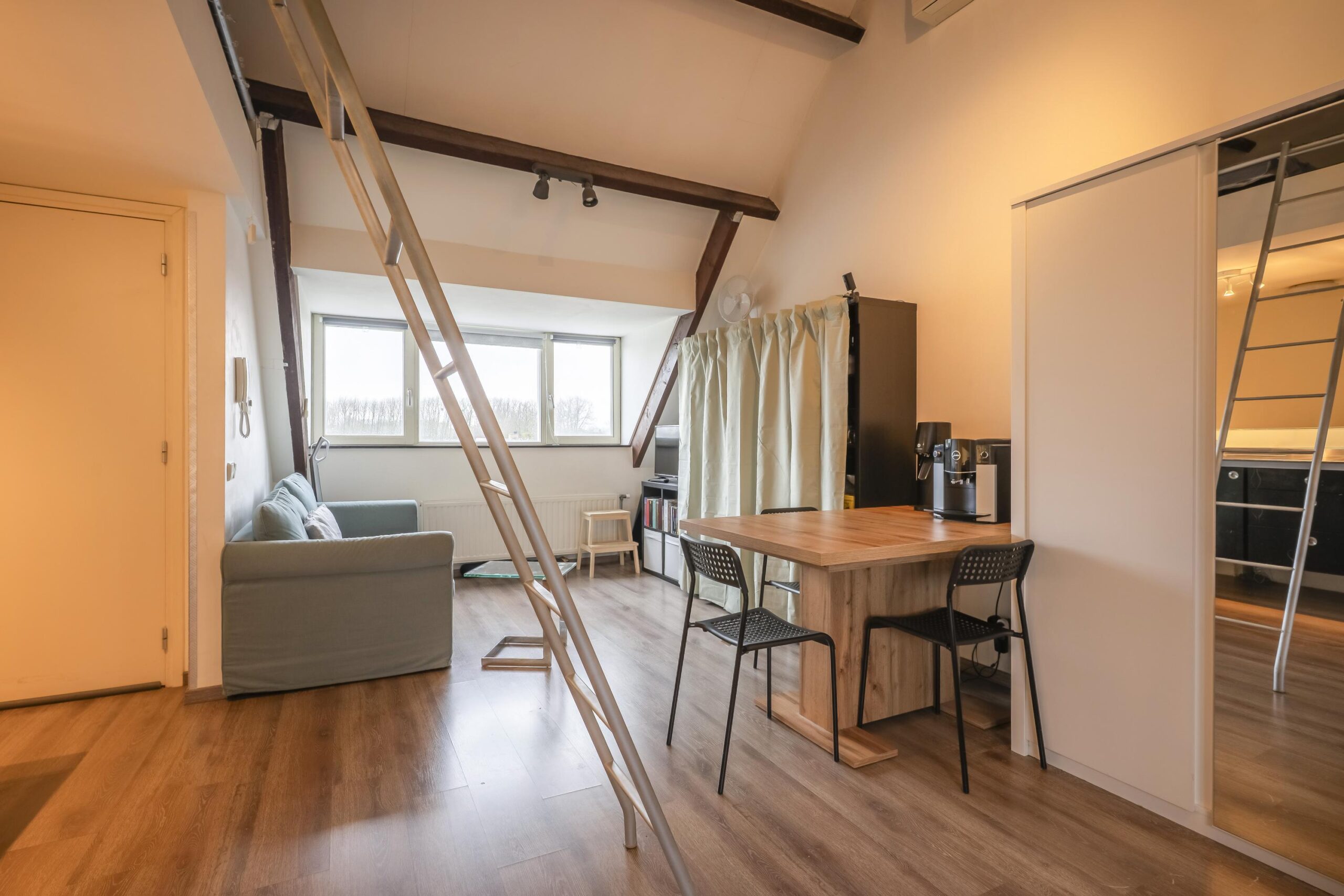 De studio beschikt over een woonkamer met open keuken (ca. 30 m²). Via een trap is de vide bereikbaar, waar zich de slaapruimte bevindt. De badkamer (ca. 4 m²) is voorzien van een douche, toilet en wastafel. Daarnaast is er een berging met opstelling van de cv-ketel en aansluitingen voor witgoed. De studio is bovendien voorzien van airconditioning.