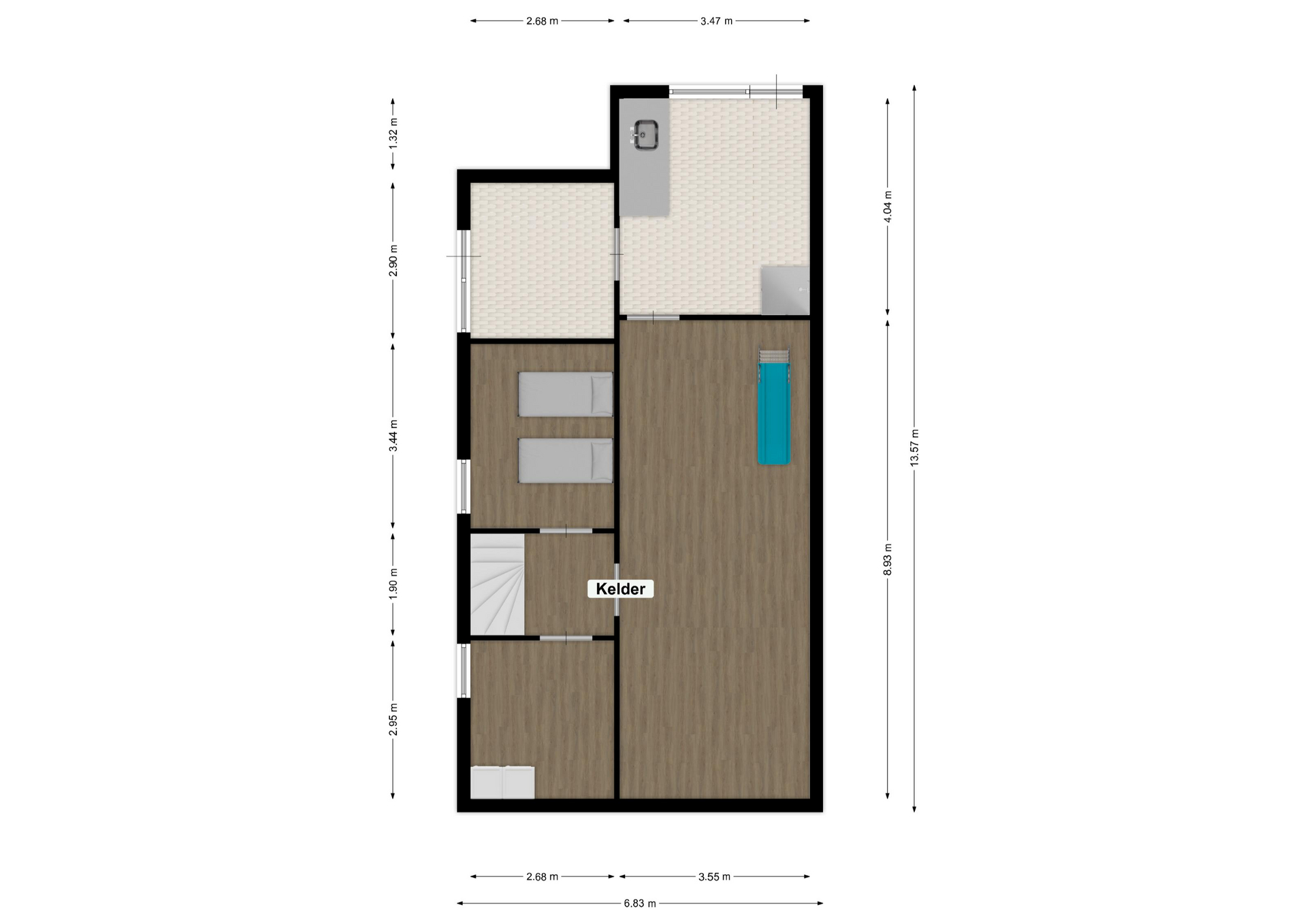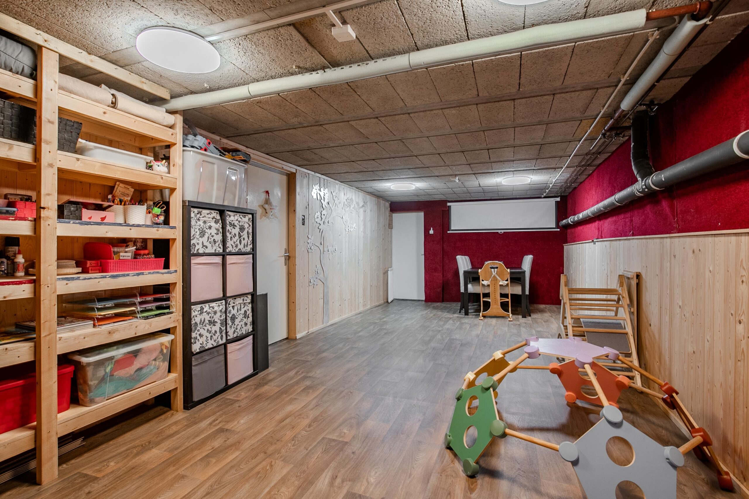 De woning is voorzien van een zeer ruime kelder (ca. 78m2) welke is opgedeeld in 5 ruimtes. Vanuit de ruimte met trapopgang zijn de wasruimte, een bergruimte en een ruime hobbyruimte (ca. 31m2 groot) bereikbaar. De hobbyruimte biedt diverse mogelijkheden en vanuit hier heeft u toegang tot een kamer met doucheaansluiting en keukenblok met wastafel vanuit waar de achtertuin bereikbaar is. Naast deze ruimte bevindt zich nog een extra bergruimte, eveneens met toegang tot de tuin.