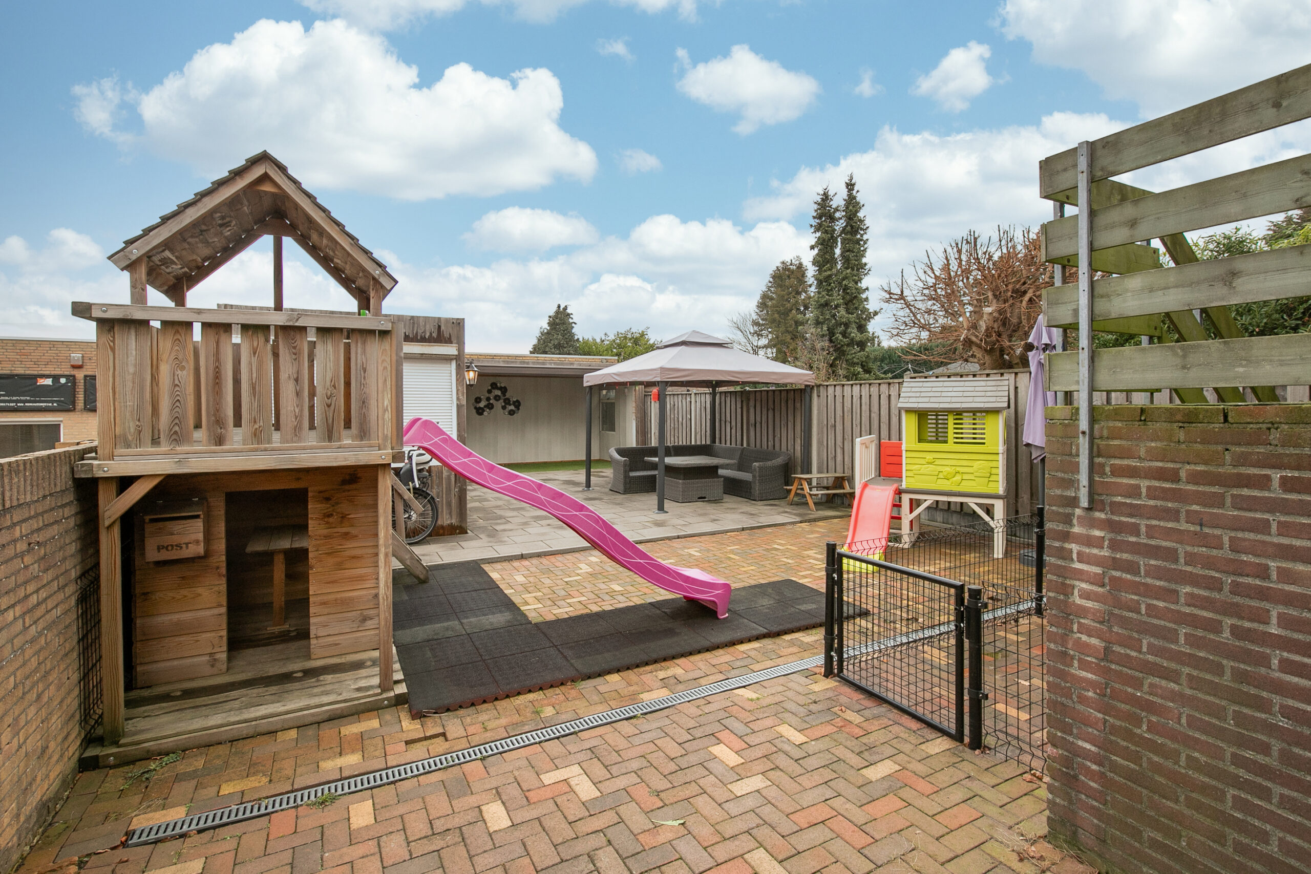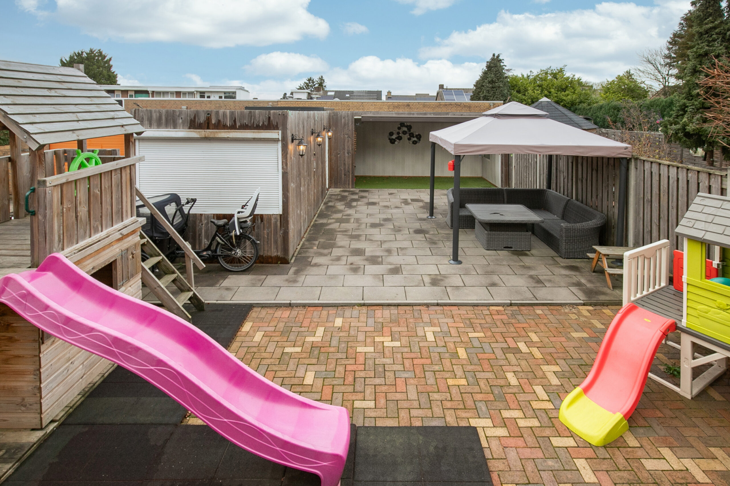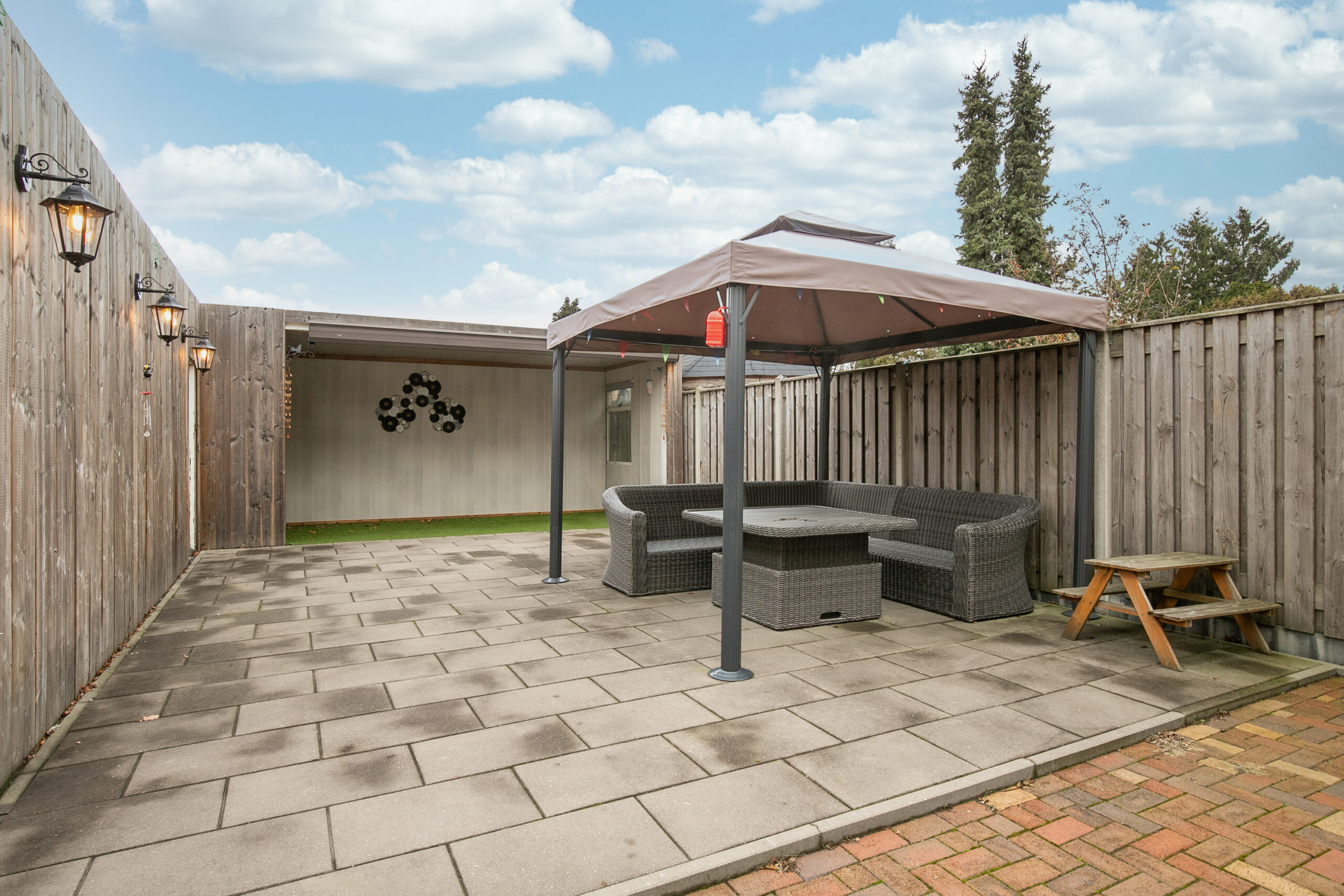 De achtertuin is onderhoudsvriendelijk aangelegd, geniet een goede mate van privacy en is gesitueerd op het noordwesten. De achtertuin bevat een buitenberging en een overdekte zit en biedt middels een pad langs de zijkant van de woning toegang tot de straat.