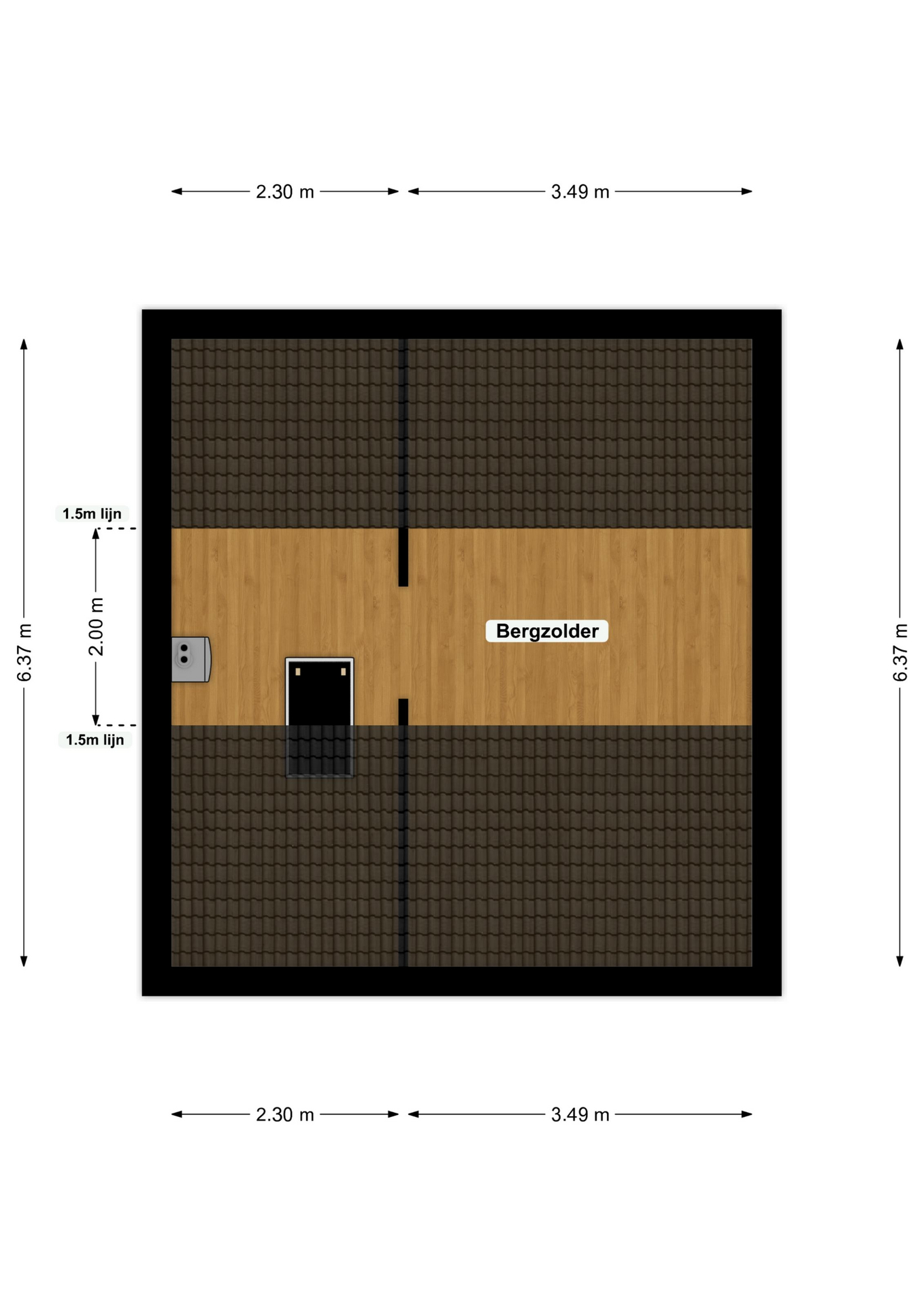 1) 3.61 x 3.49 met airconditioning