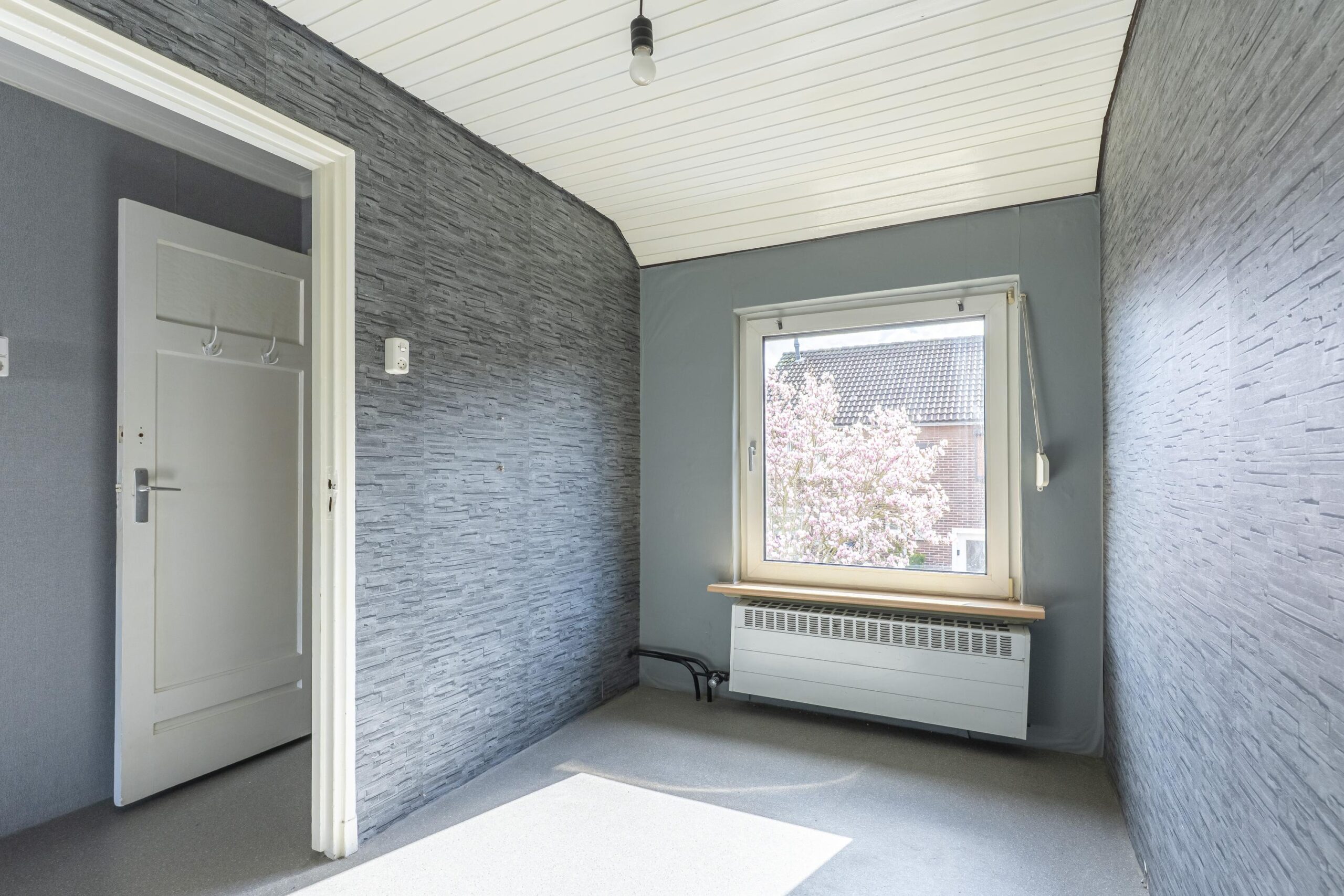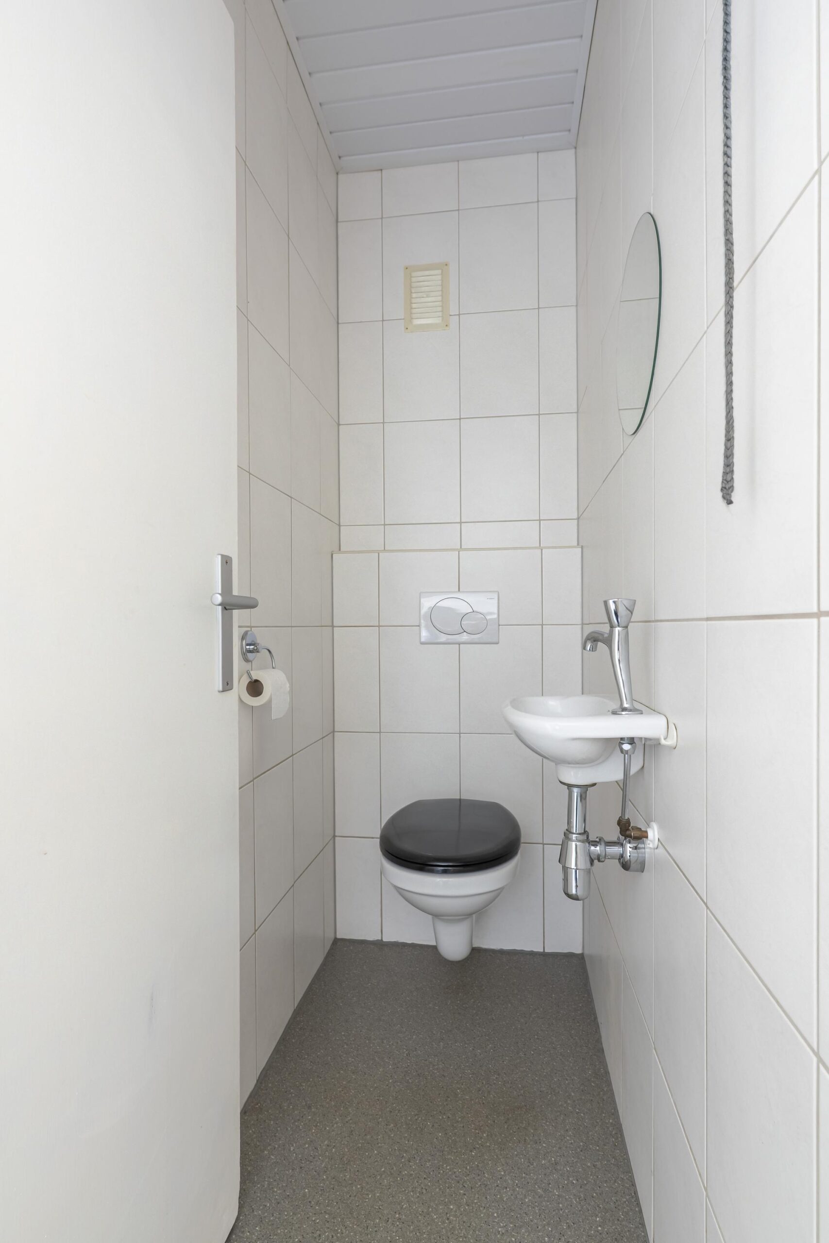 Entree. Hal met vernieuwde meterkast, garderobe, slaapkamer/hobbykamer en geheel betegelde toiletruimte met