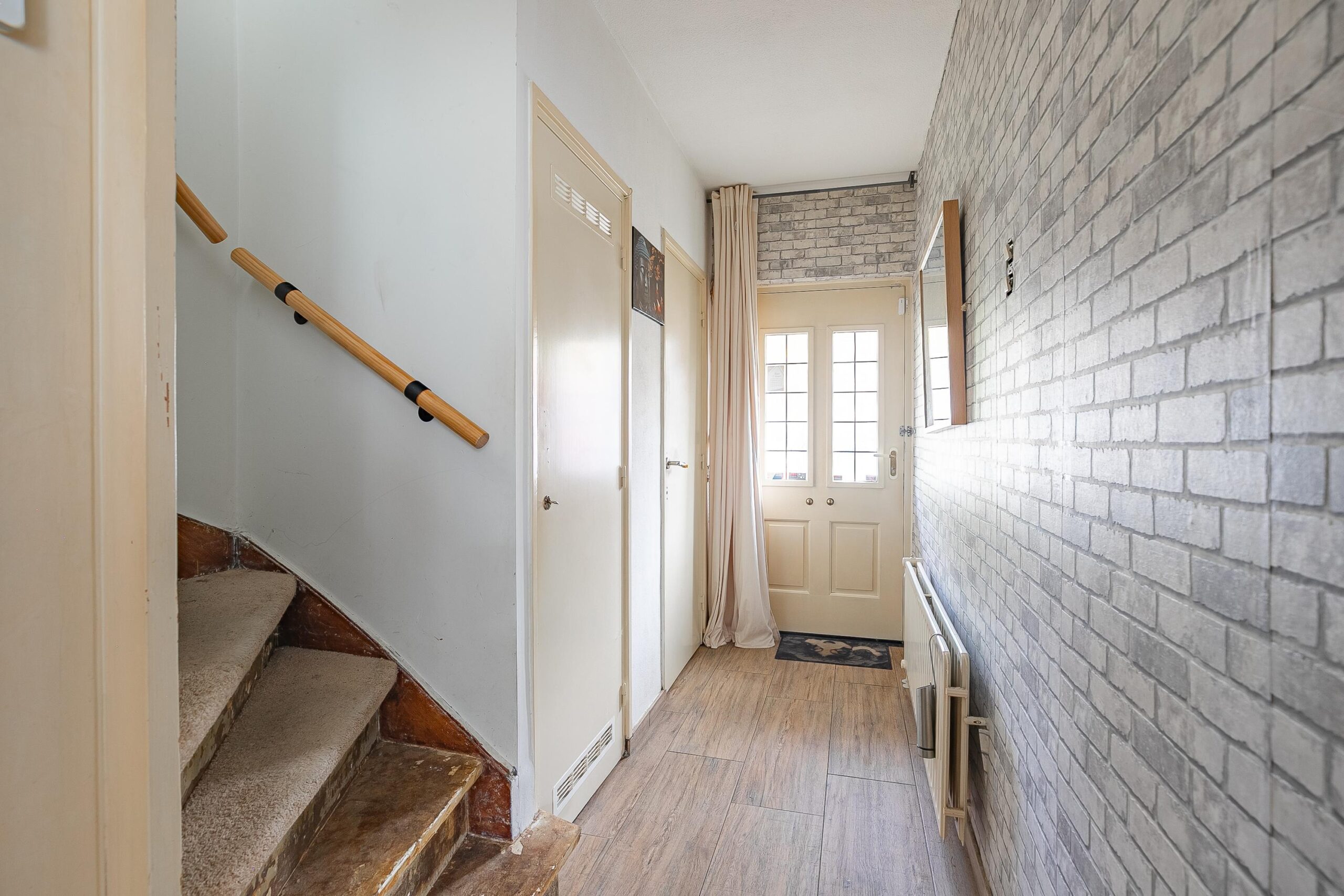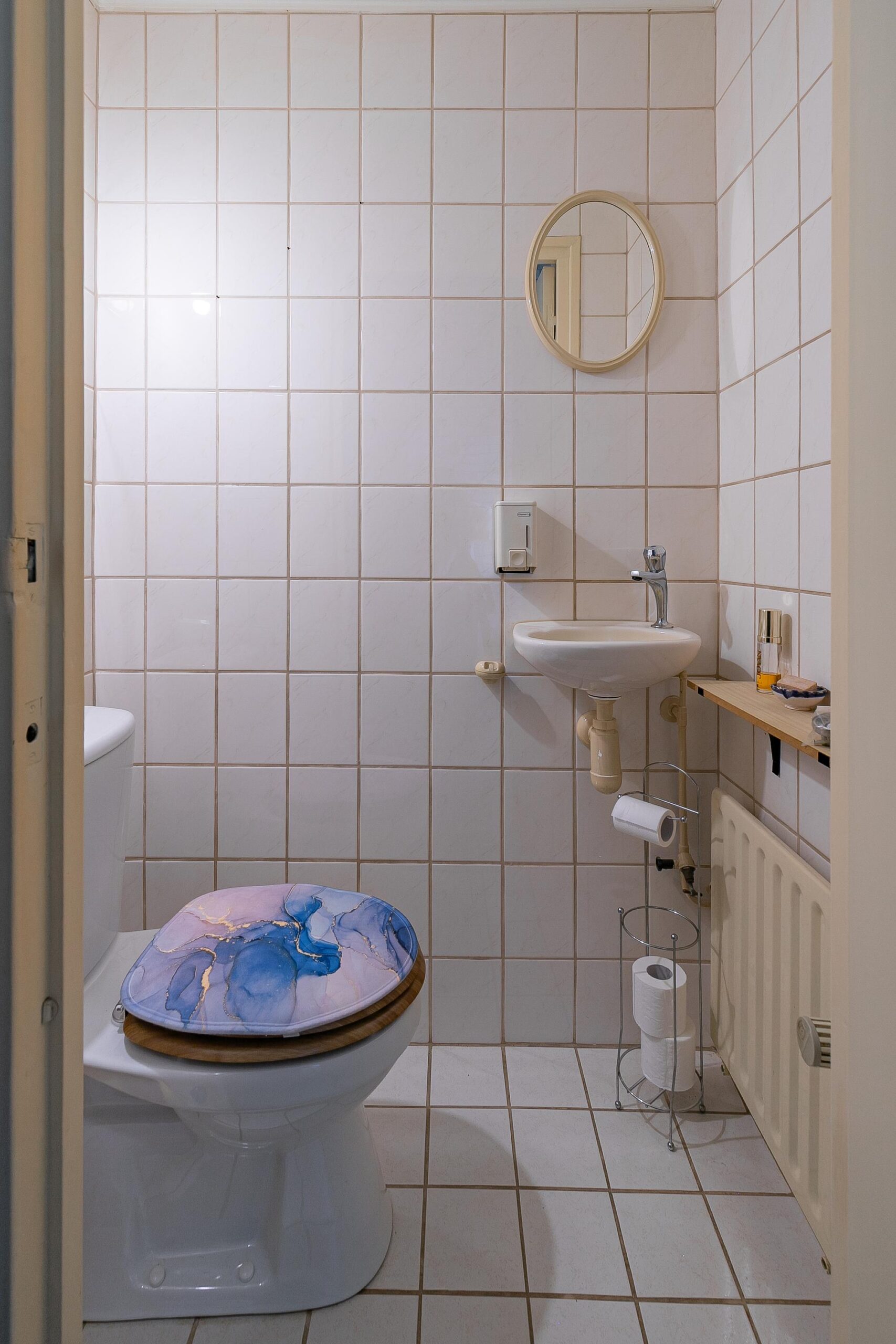 Hal met plavuizenvloer, vernieuwde meterkast met dag- en nachtstroom en geheel betegelde toiletruimte met