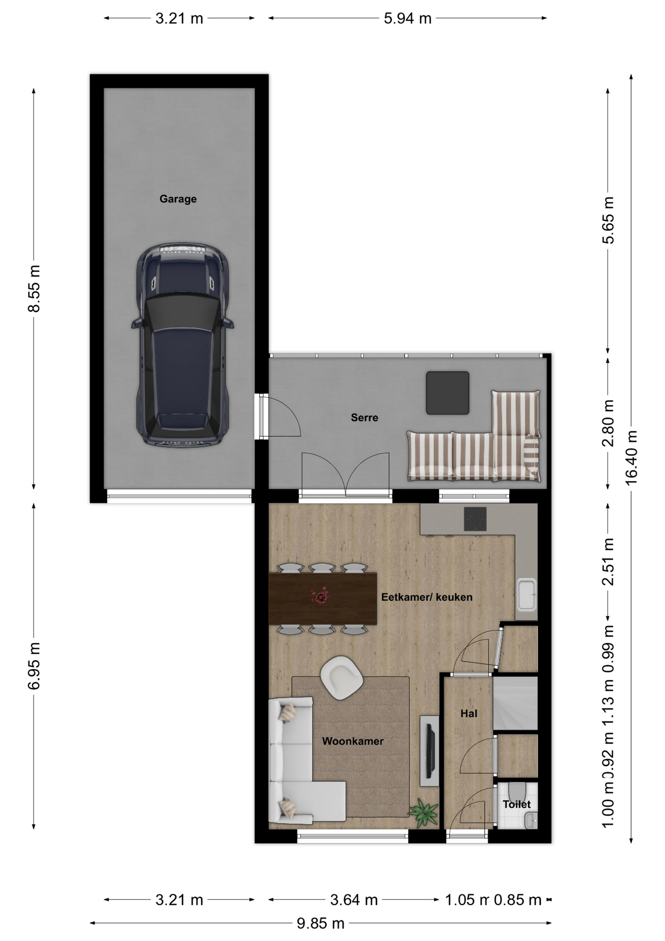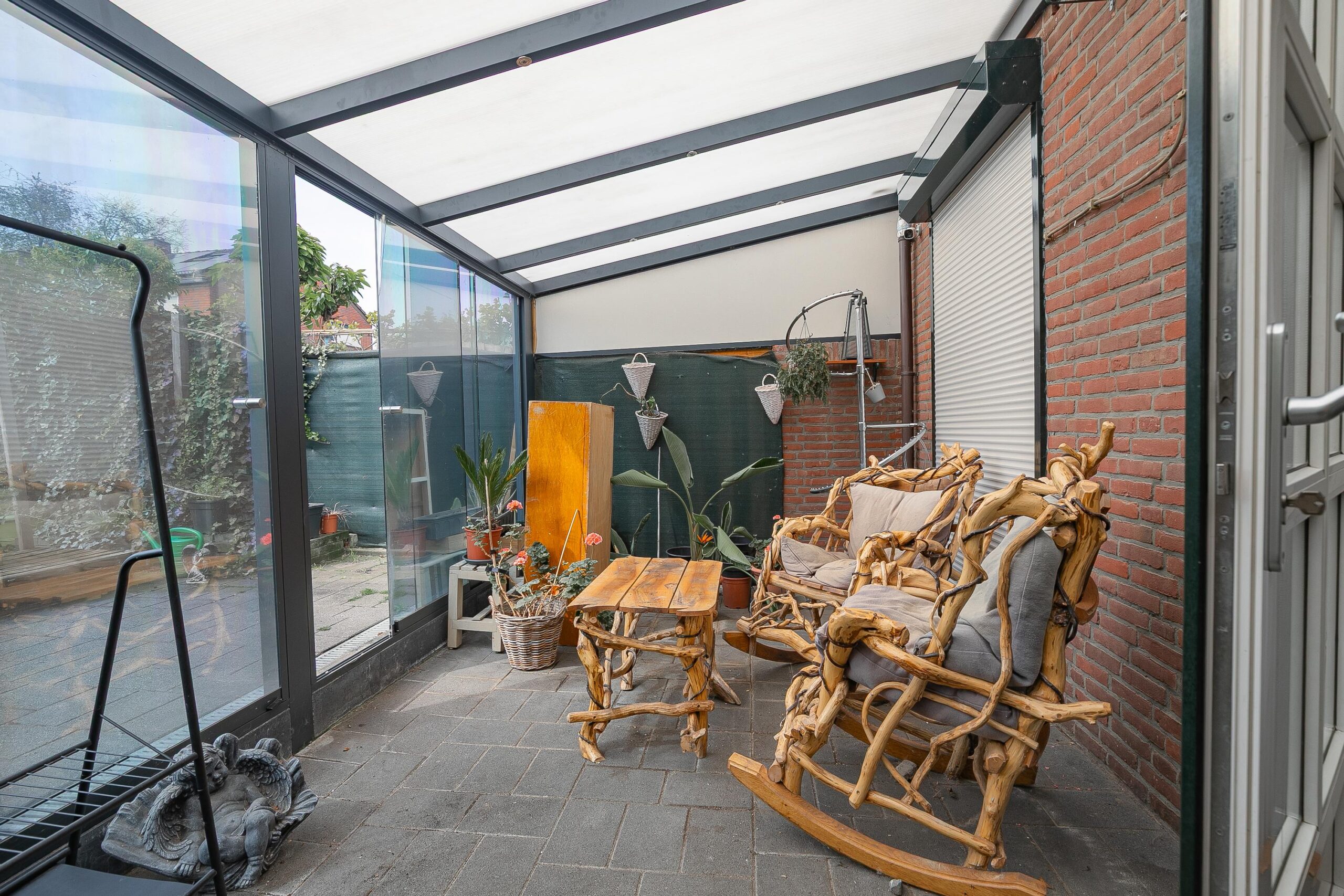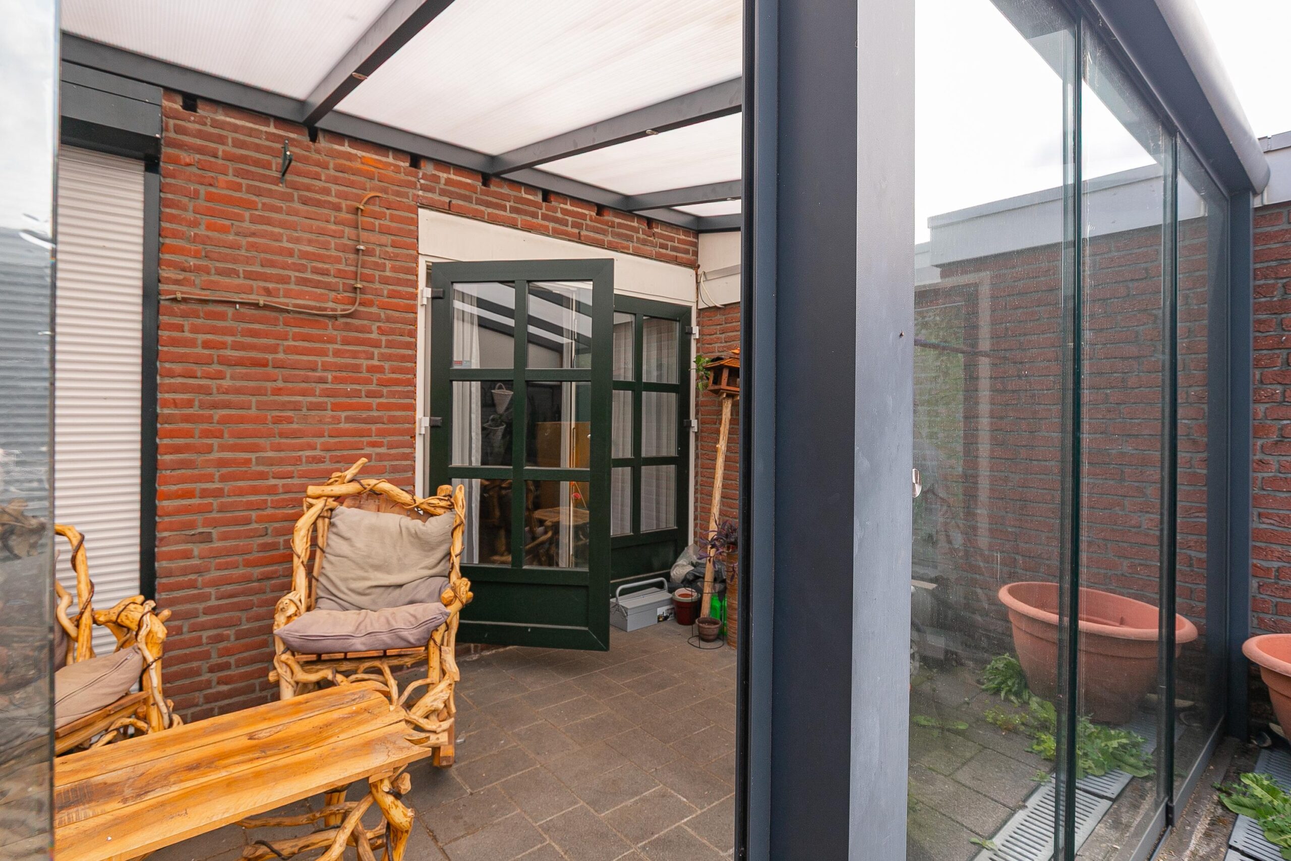 Via openslaande deuren toegang naar de serre met glasdeuren.