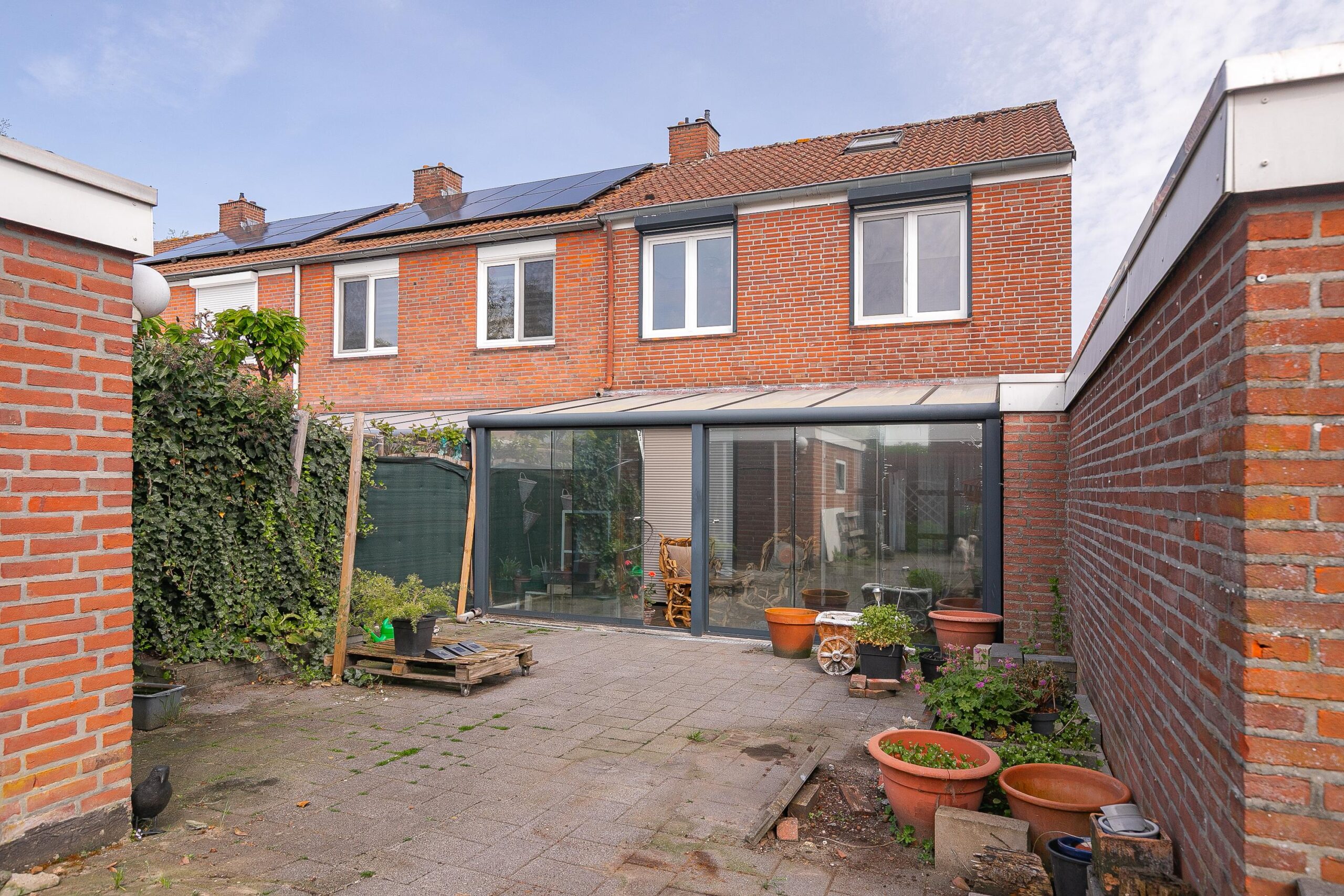 Op een leuke locatie half vrijstaande woning met garage, voor- en achtertuin, 4 slaapkamers en stenen berging