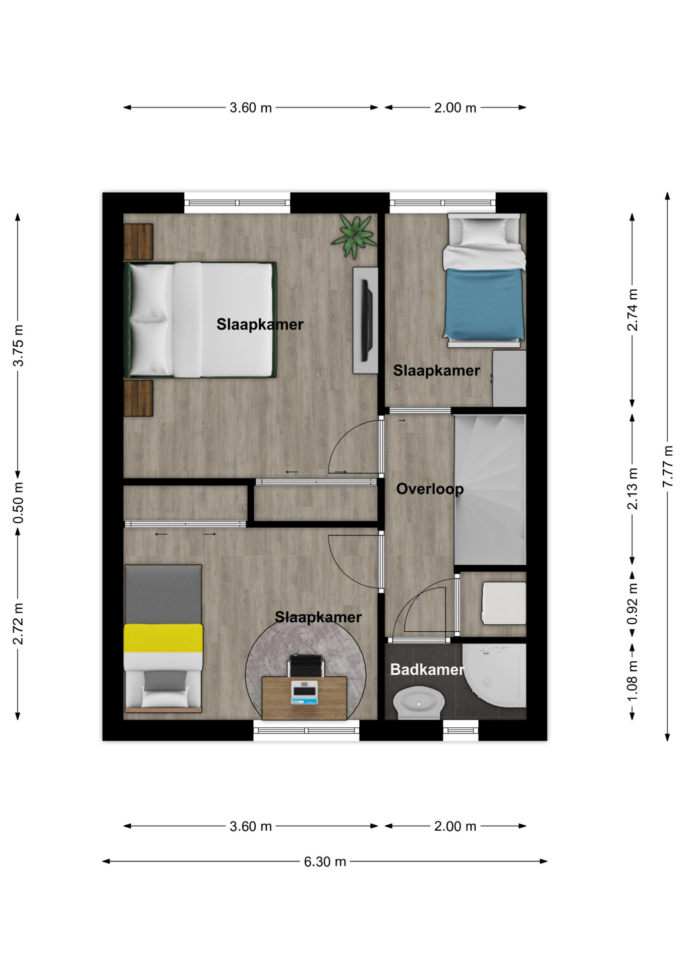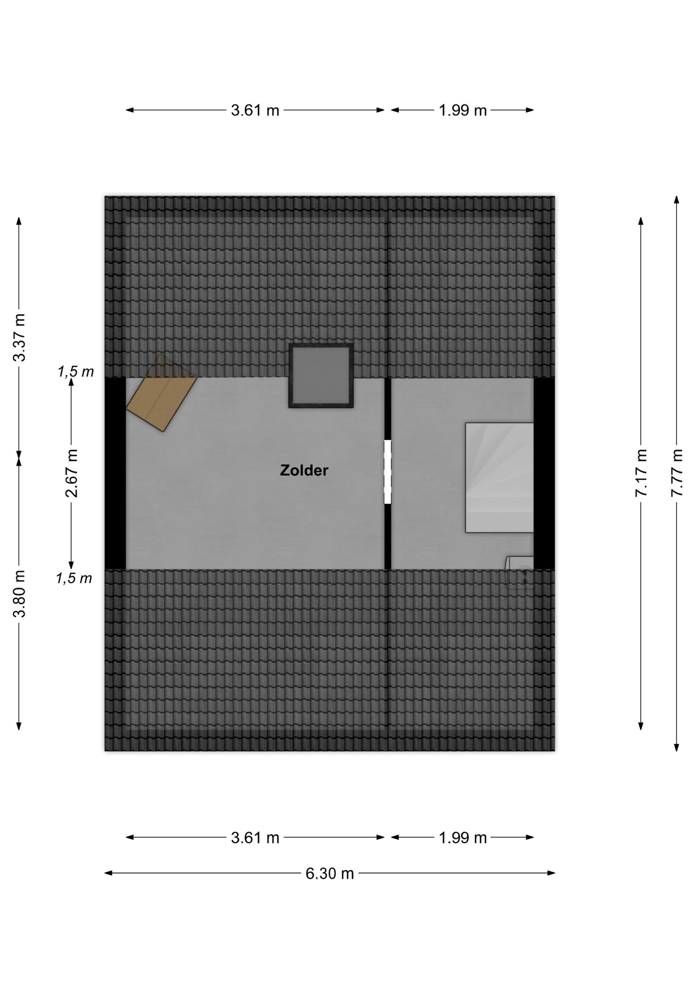 Ruime zolder mogelijkheid voor 4e slaapkamer.