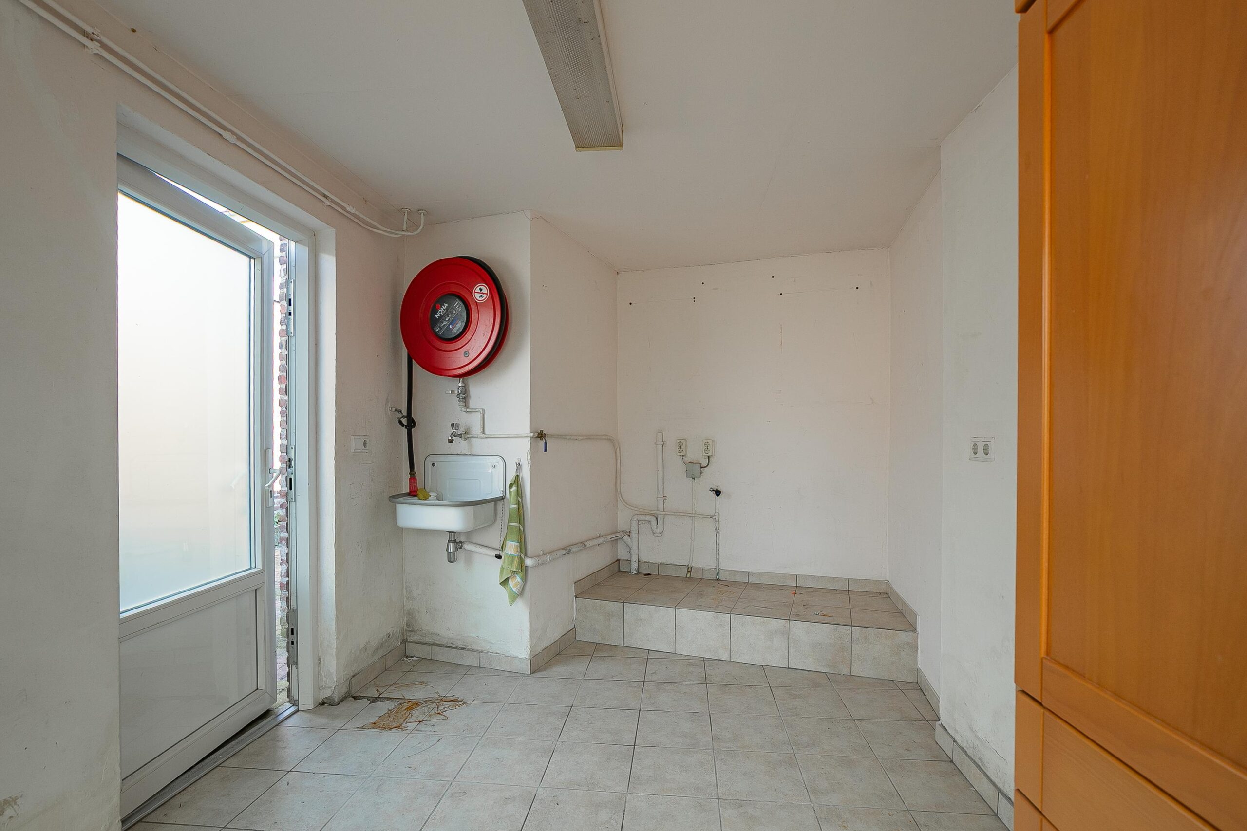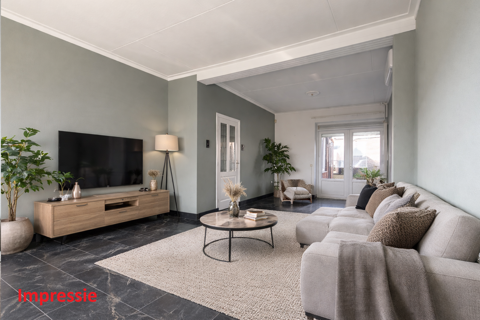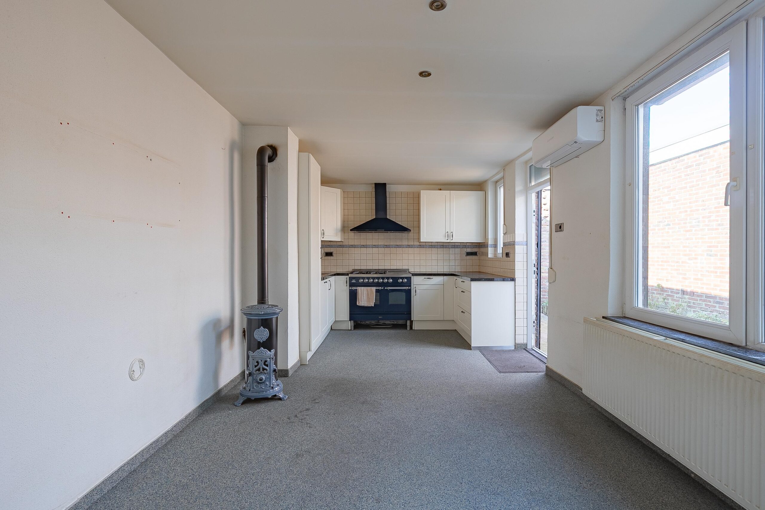 Via de robuuste voordeur bereikt u de royale, hooggestoken hal met authentieke elementen en een plavuizenvloer. In de hal bevindt zich de gemoderniseerde Hager groepenkast. Vanuit de hal heeft u toegang tot meerdere vertrekken, waaronder de lichte woonkamer. De woonkamer is voorzien van een laminaatvloer in tegelmotief en airconditioning (Mitsubishi, eigendom), wat bijdraagt aan een aangenaam wooncomfort. Terug in de hal bereikt u de geheel betegelde toiletruimte, voorzien van een closet, en de royale keuken. De keuken betreft een echte leefkeuken, met voldoende ruimte voor het plaatsen van een eettafel. De keuken is voorzien van een authentieke kachel en een U-vormige keukenopstelling met massief aanrechtblad en de navolgende apparatuur: grote Siemens koelkast, AEG vaatwasser, Boretti 4-pits gasfornuis met multifunctionele wokbrander, dubbele oven en afzuigkap (schouwmodel). De keuken beschikt over een lichte siergrindvloer.