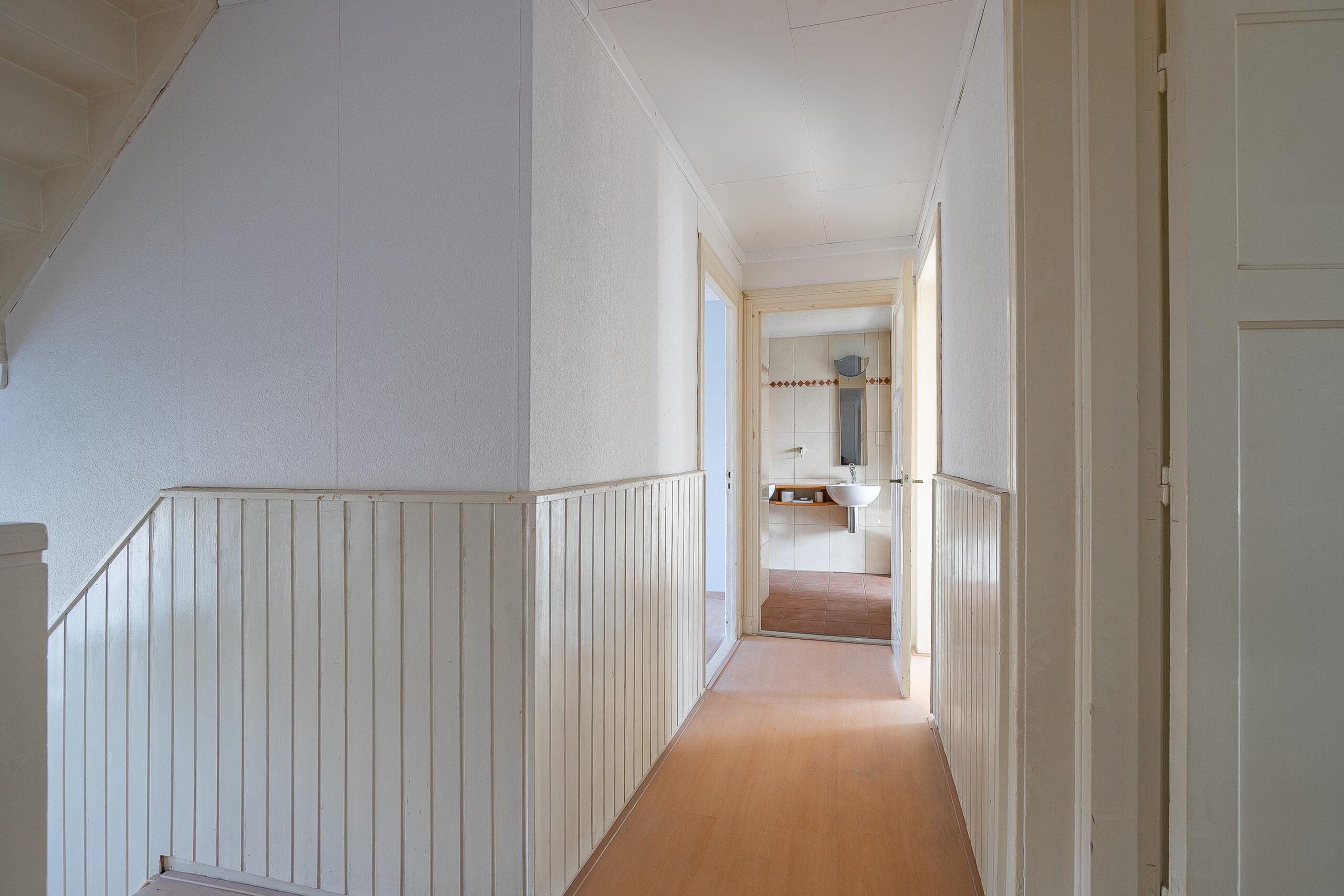 Via robuuste trap te bereiken eerste verdieping. Ruime overloop met toegang tot drie slaapkamers, welke respectievelijk groot zijn: