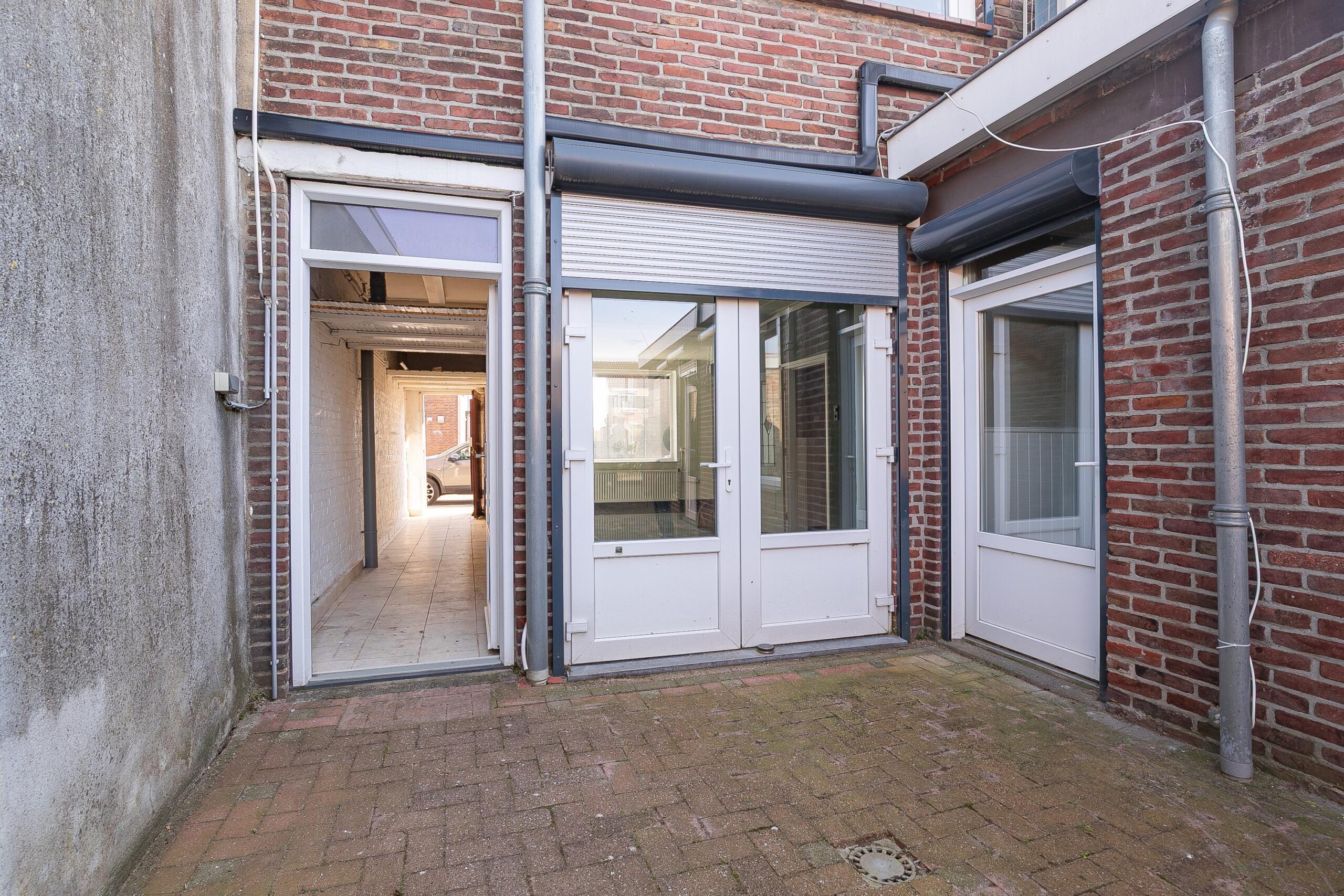 Aan de zijstraat (Marshallstraat) bevindt zich de royale garage, welke bij de woning hoort. De garage is voorzien van een eigen kleine groepenkast.