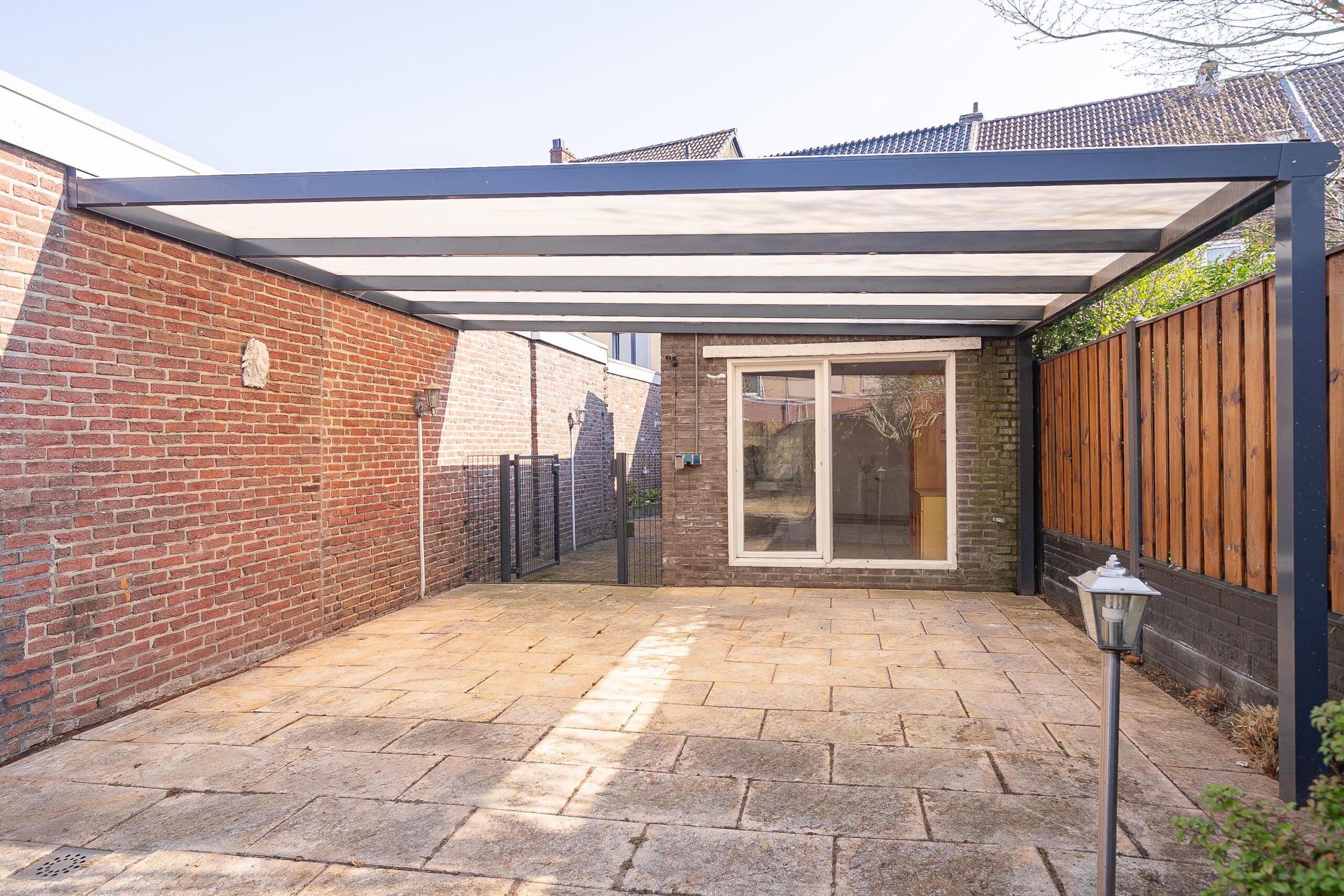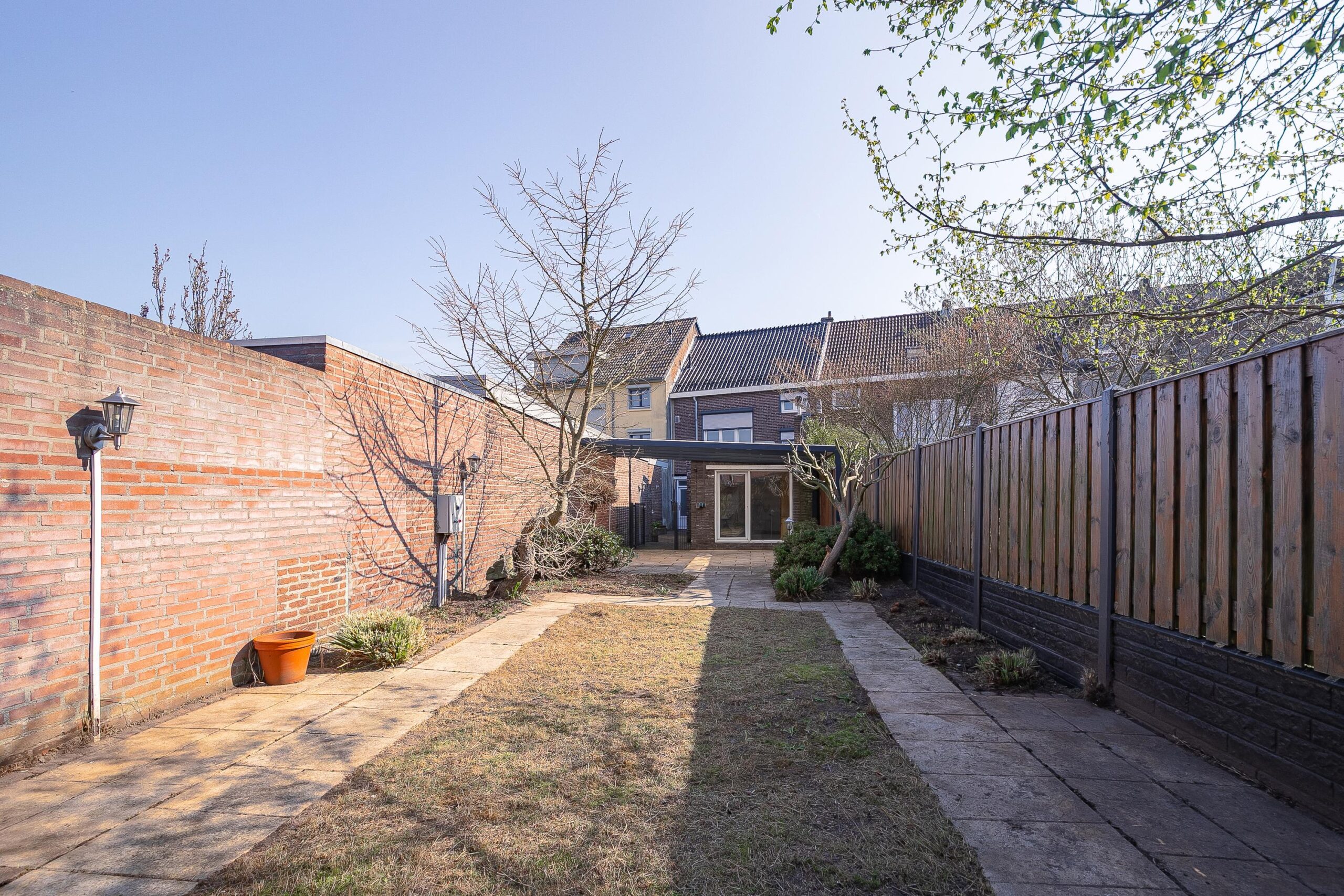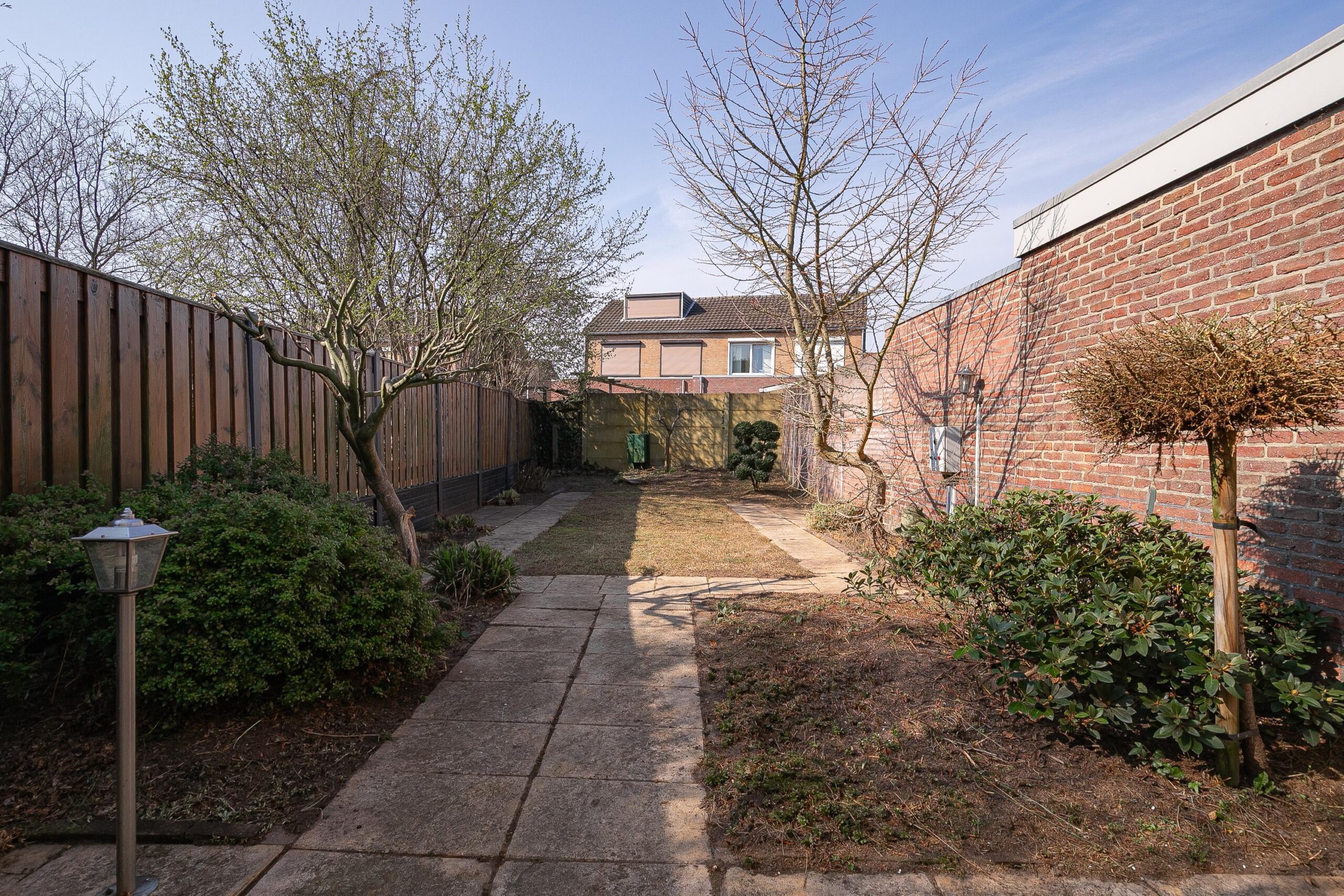 Via de vooringang, dubbele openslaande tuindeuren in de woonkamer, de verdeel en de keuken te bereiken, geheel omsloten, zonnige en grotendeels onderhoudsvriendelijke achtertuin. Aan de woningzijde bevindt zich een prettig terras. Het tweede gedeelte van de tuin is middels een tuinpoort afsluitbaar en beschikt over een tweede terras met aluminium terrasoverkapping. Achterin de tuin bevindt zich een klein gazon en is de tuin deels beklinkerd en deels fraai aangeplant.