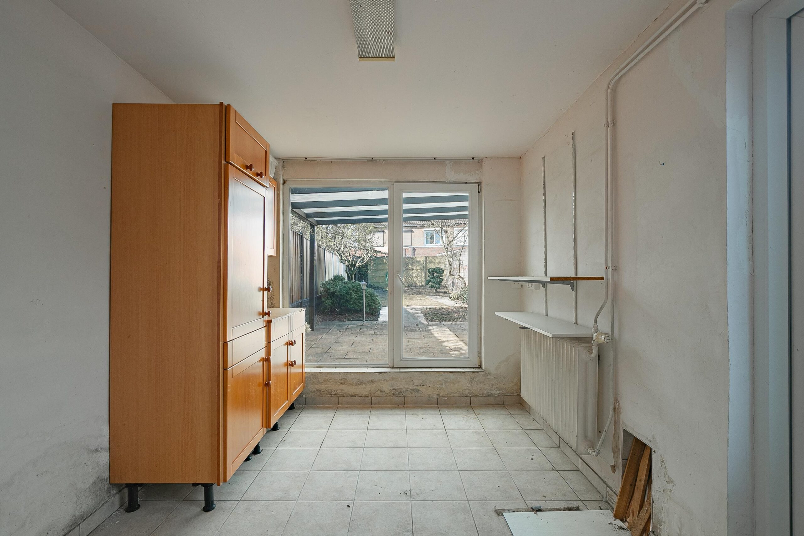 Achter de keuken bevindt zich een multifunctionele ruimte/bergruimte, bestaande uit twee compartimenten. Het grootste gedeelte is verwarmd, voorzien van de witgoedaansluitingen voor wasmachine en droger, een wastafel en kan desgewenst worden ingericht als tuinkamer of extra leefruimte.