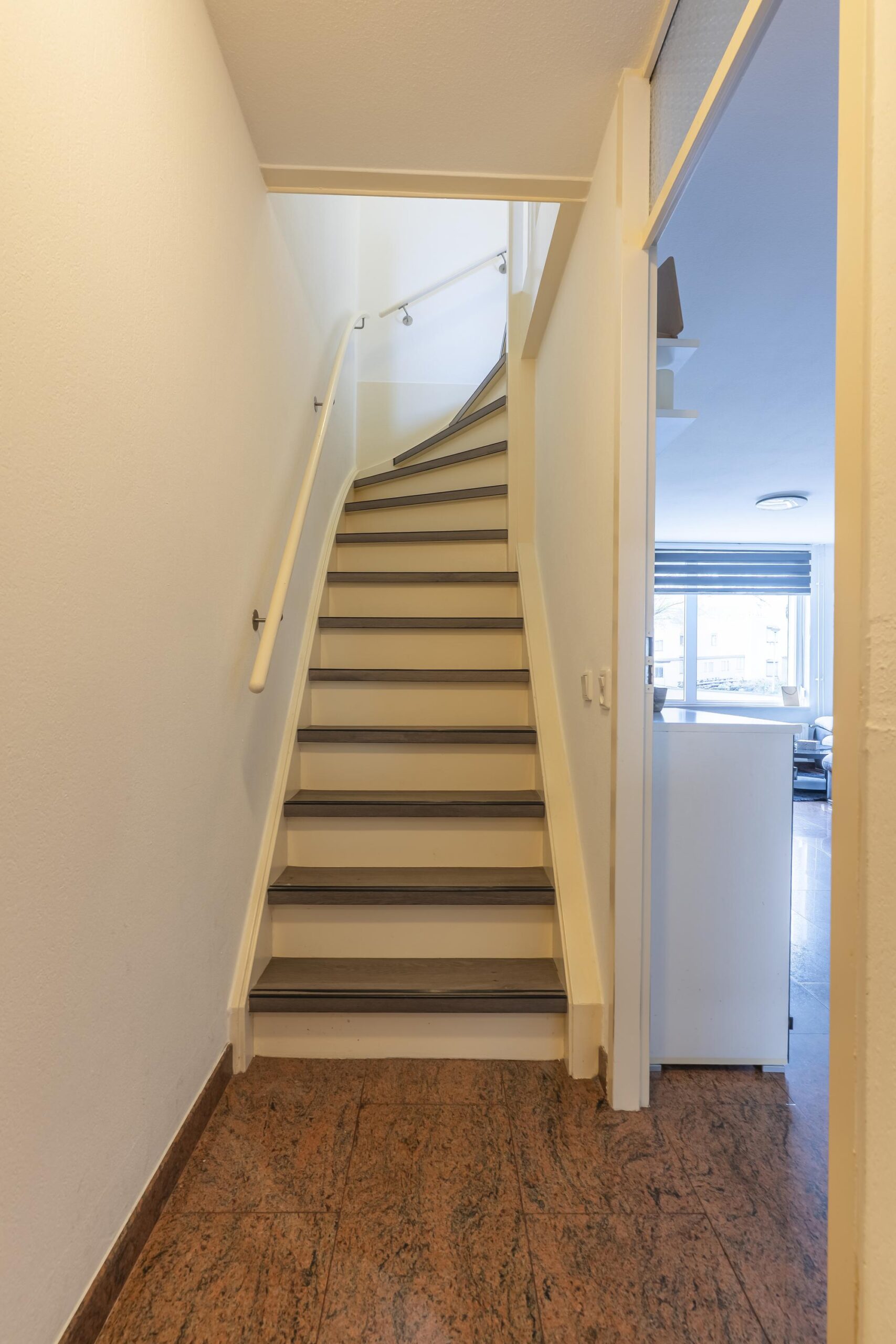 Via de entree komt u in de hal met meterkast en toegang tot de woonkamer. De ruime woonkamer (ca. 37 m²) is voorzien van vloerverwarming en airconditioning en beschikt daarnaast over een praktische trapkast. Vanuit de woonkamer is er toegang tot een tussenhal met de toiletruimte en de trapopgang naar de eerste verdieping. De volledig betegelde toiletruimte is uitgerust met een hangend closet.