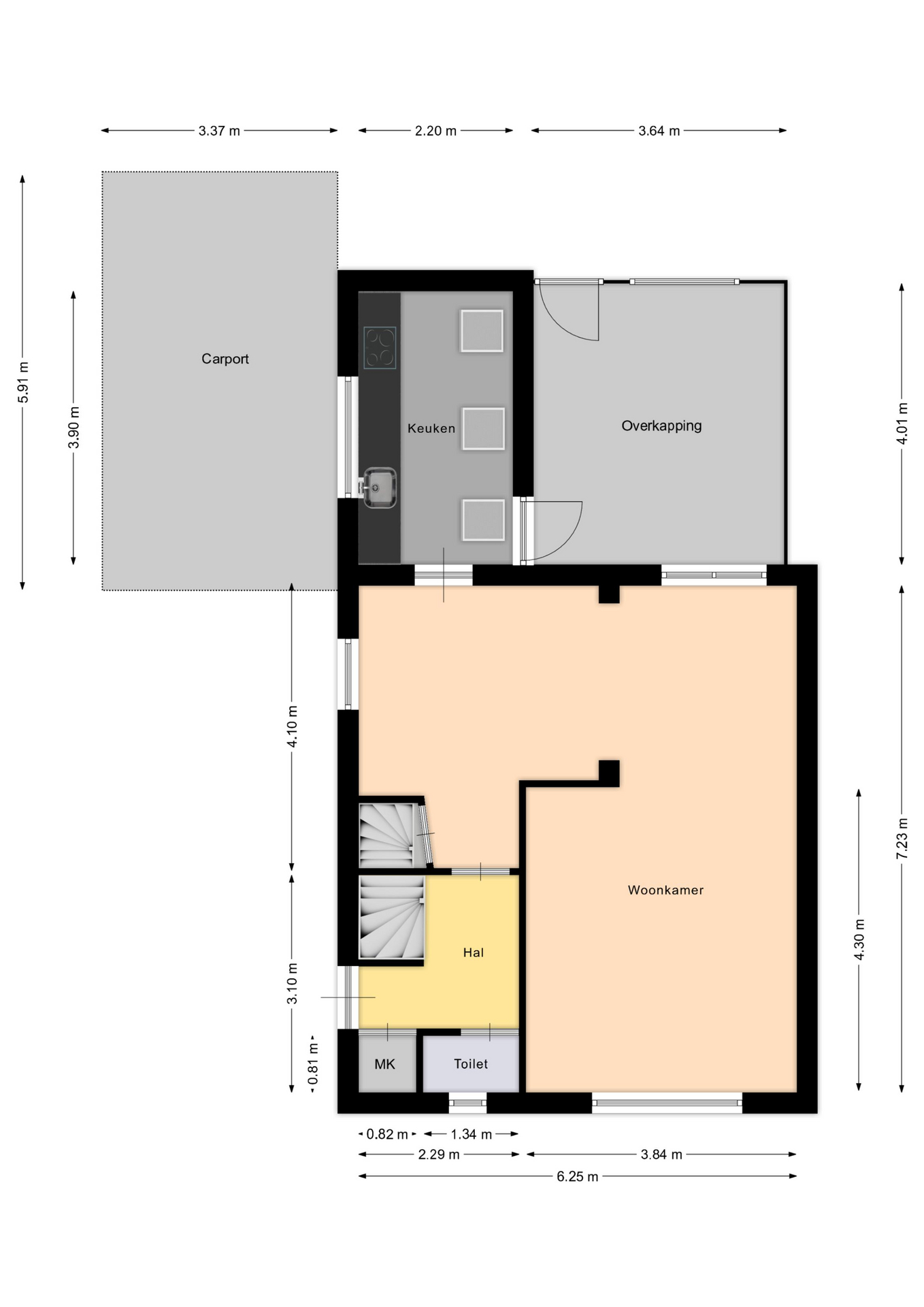 - Oppervlakte gebouwgebonden ca. 34 m2