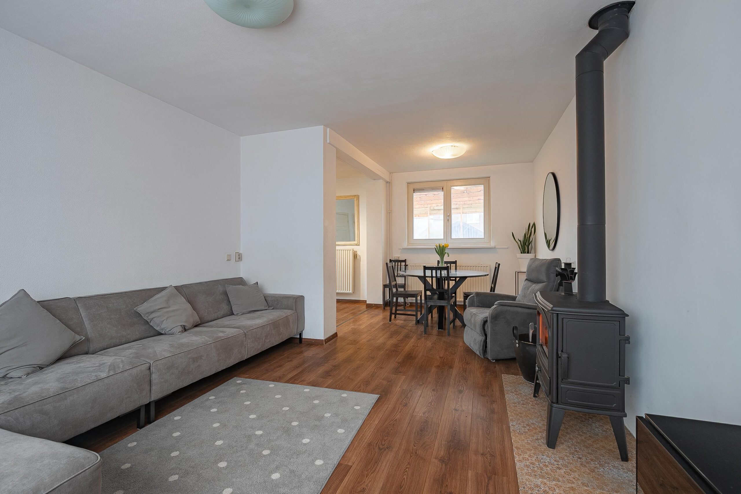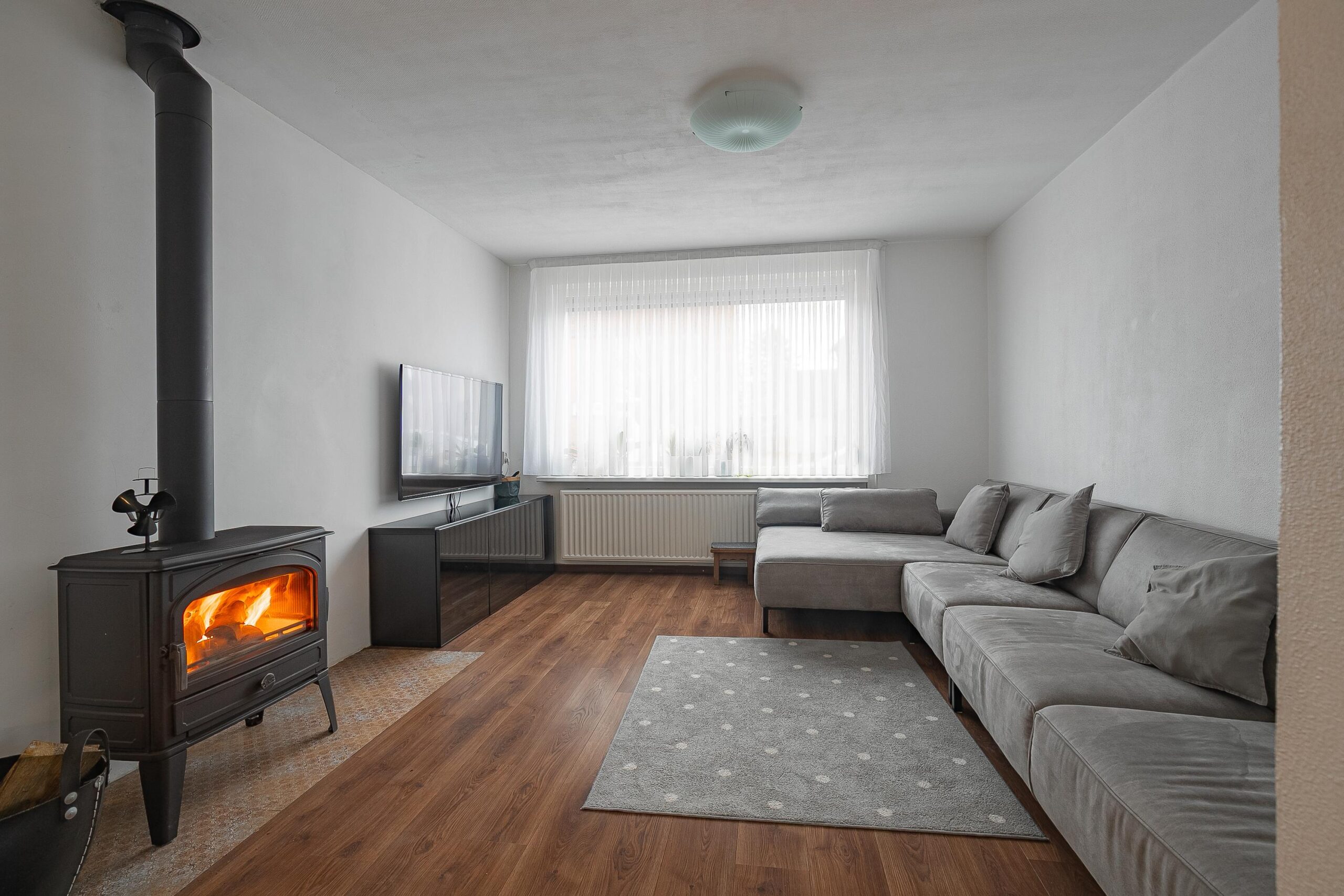 – Sfeervolle houtkachel in de woonkamer;