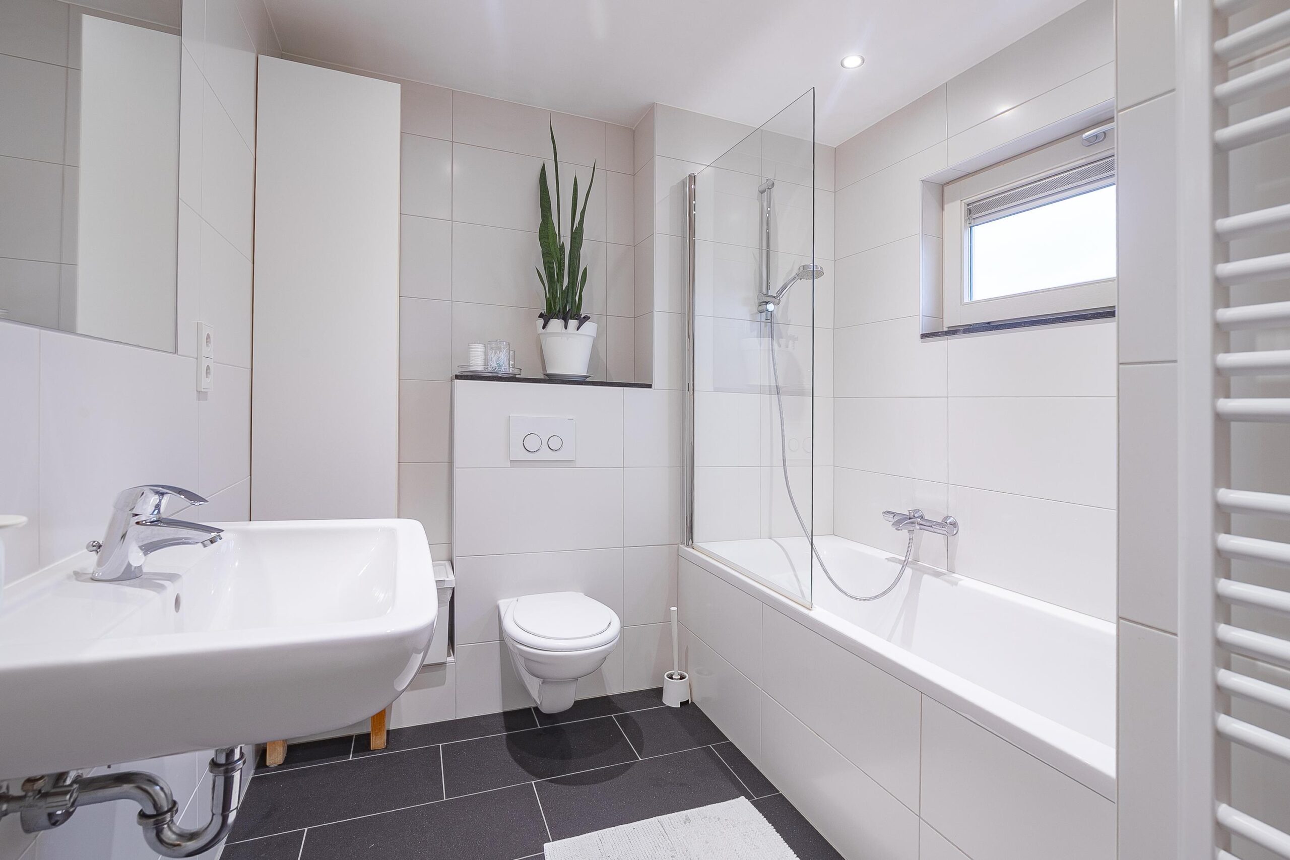 - Badkamervoorzieningen Ligbad, toilet, wastafel