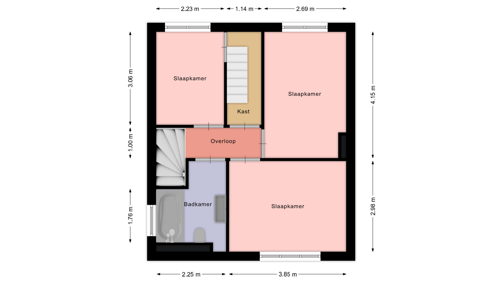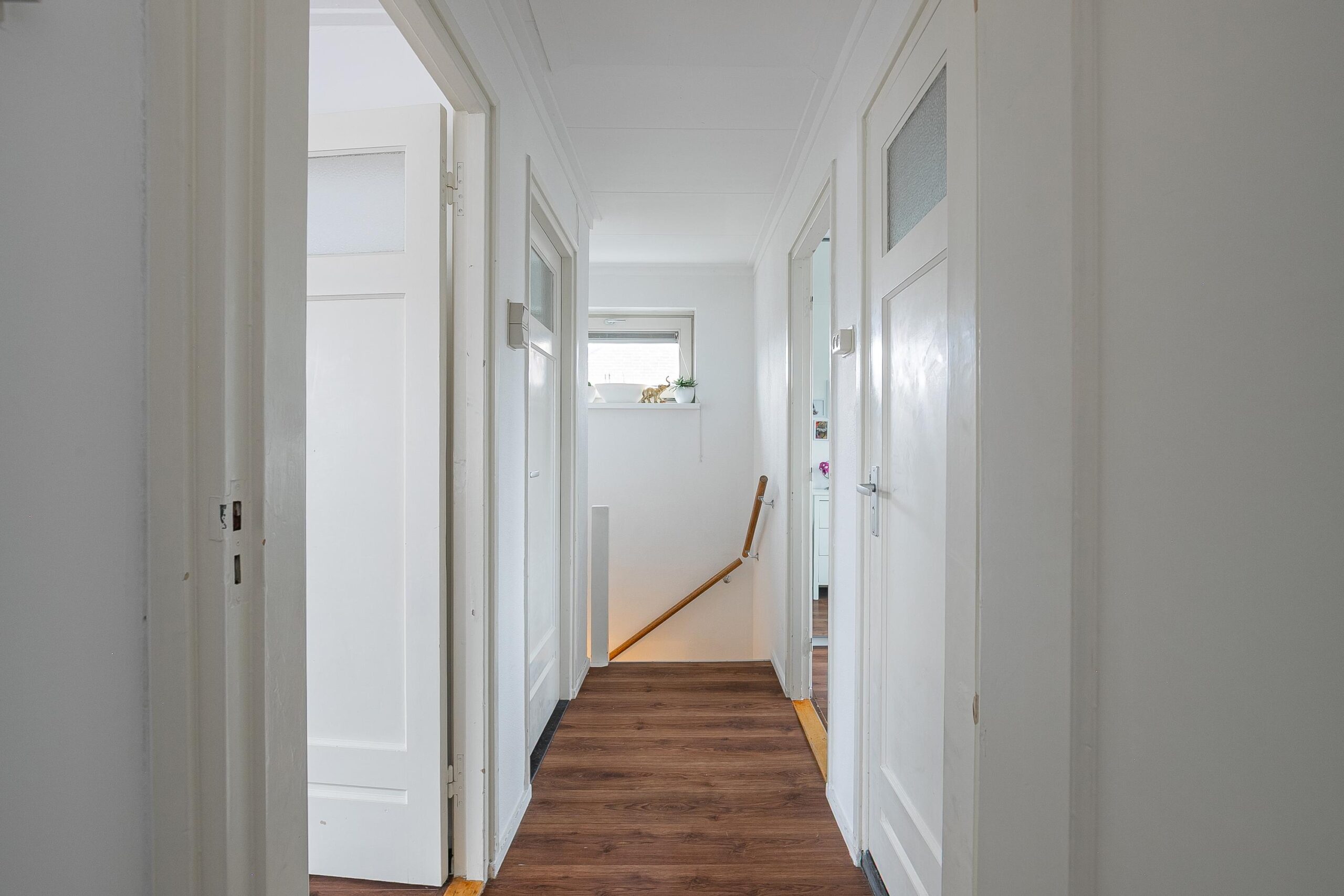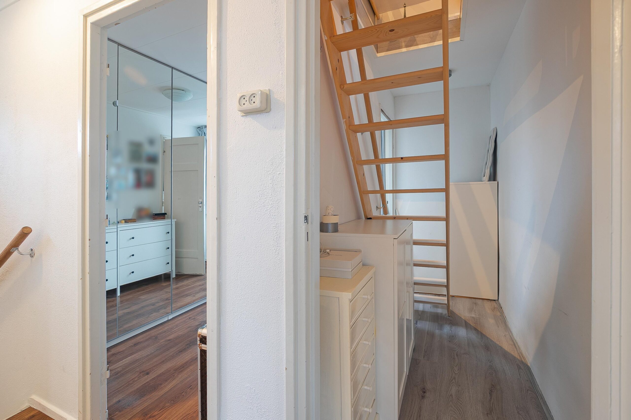 Via de overloop is er toegang tot drie slaapkamers en de badkamer. De slaapkamers hebben een oppervlakte van circa 12m², 11m² en 7m² en zijn allen voorzien van een nette laminaatvloer. De slaapkamer aan de voorzijde beschikt daarnaast over een rolluik. De moderne badkamer van circa 5m² is uitgevoerd met een bad-/douchecombinatie, wastafel en toilet. Vanuit de voormalige badkamer is een vaste trap gerealiseerd die toegang geeft tot de zolderverdieping.