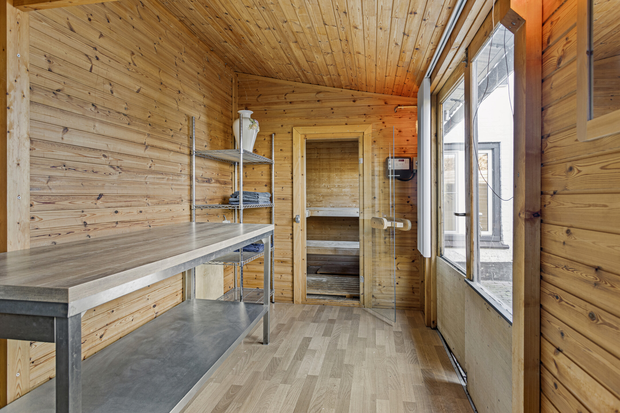 - Badkamervoorzieningen Ligbad, douche, wastafel, douche, sauna