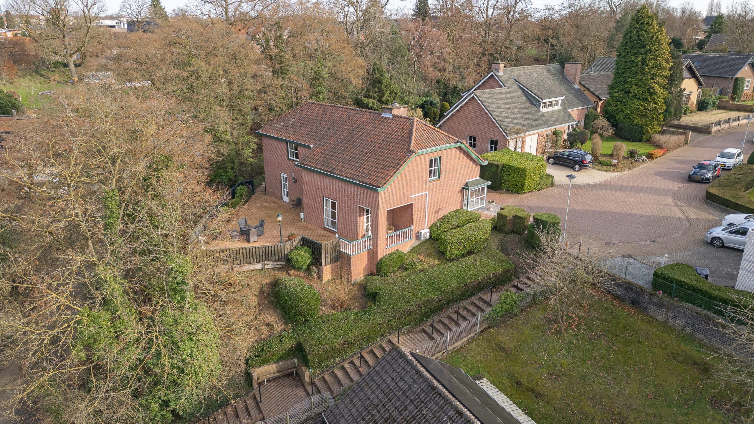 Overdekte entree, grote hal met meterkast (vernieuwde groepenkast met 15 groepen en 2 aardlekschakelaars) en toilet met wastafeltje. Vanuit de hal is er toegang tot de kantoorruimte (ca. 9.1m²) met inbouwkast. Royale woonkamer (ca. 43m²) met tegelvloer en open haard. Vanuit de woonkamer is er toegang tot het overdekte terras (ca. 5.6m²) en het royale tuinterras aan de zijkant van de woning met schitterend uitzicht richting de natuurgebieden langs het kanaal en de Maas. De woonkamer is verdeeld in een zitkamer en een eetkamer en gaat over in de open keuken (ca. 12.6m²) met aanrechtcombinatie in U-vorm voorzien van de volgende apparatuur: keramische kookplaat, oven, koelkast, vaatwasser, spoelbak en afzuigkap. Bijkeuken (ca. 11.5m²) alwaar witgoedaansluitingen en wastafel. Inpandig (vanuit de bijkeuken) bereikbare garage (ca. 22.2m²) met garagepoort. Carport (ca. 33.8m²). Tuin, rondom de gehele woning. Aan de zijde van de woonkamer en keuken is een royaal terras. Aan de buitenzijde loopt het perceel schuin af. In dit gedeelte staan bomen die zorgen voor privacy en een natuurlijke woonomgeving.