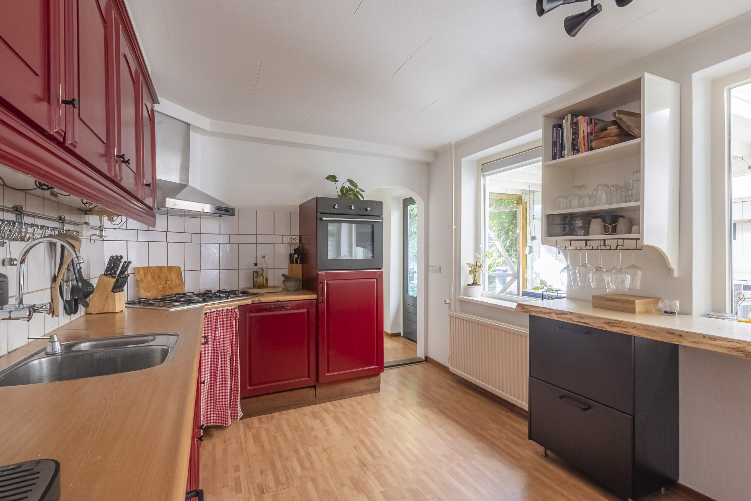 De gesloten keuken is groot ca. 11 m² en is voorzien van een hoekopgestelde keukeninrichting met de navolgende apparatuur: 5-pits gaskookplaat, afzuigkap, vaatwasser, oven en koelkast.