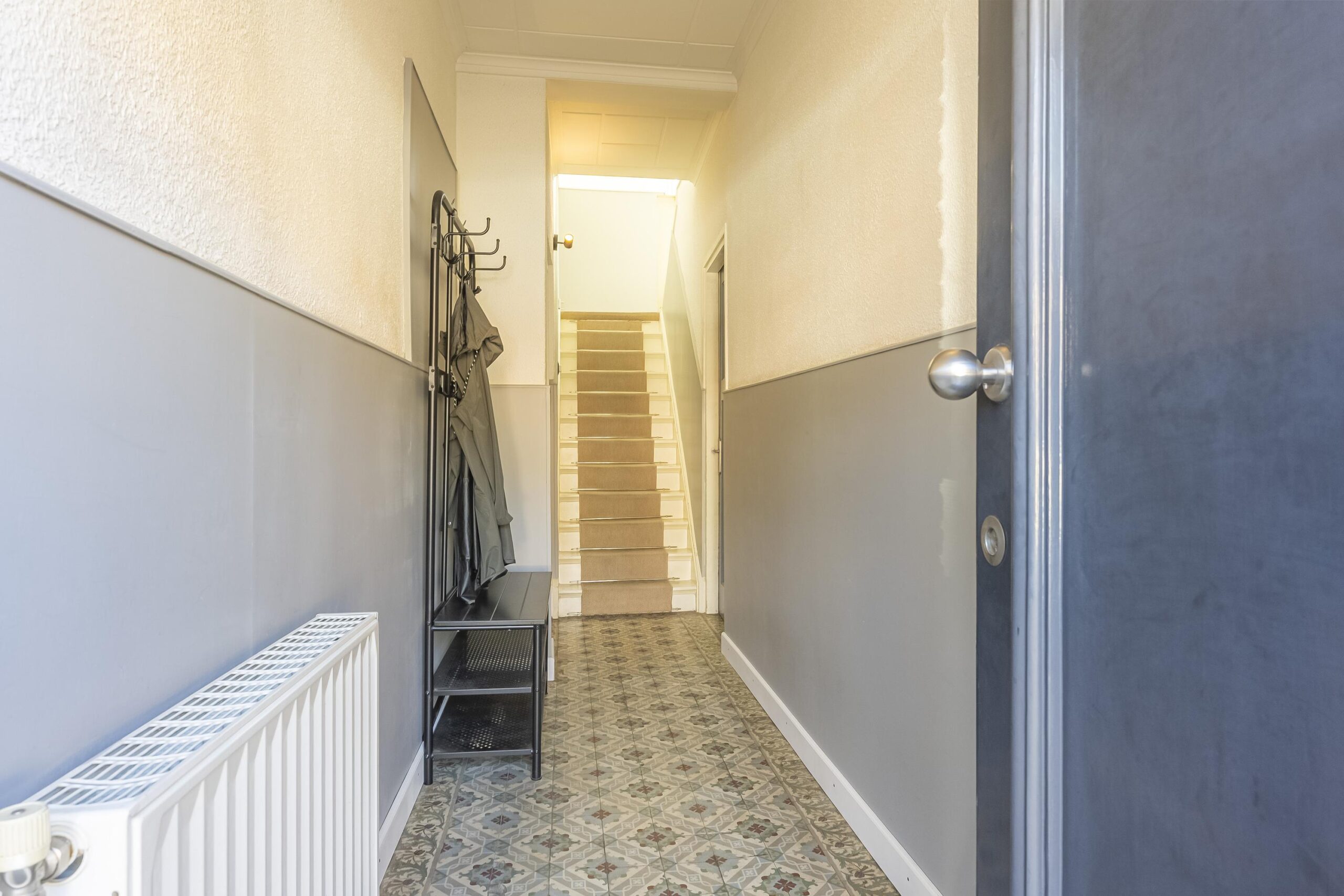 Middels de hal/entree met een authentieke vloer, meterkast, toegang tot de doorgang en trapopgang komt u in de woonkamer en gesloten keuken.