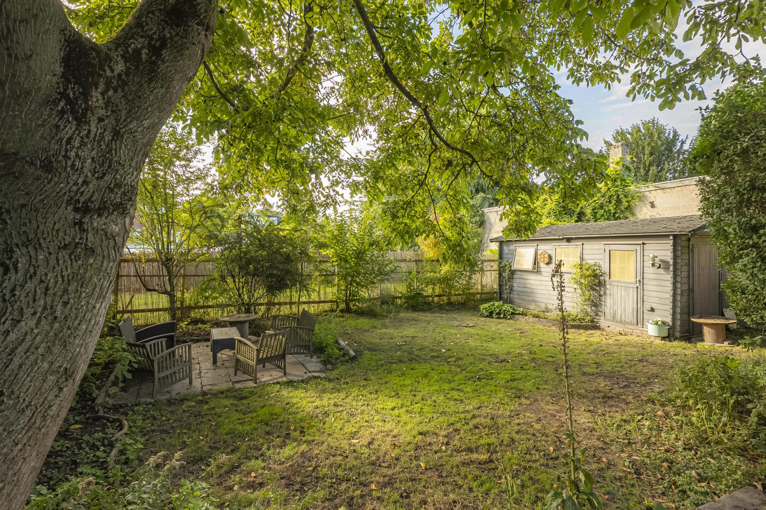 Tevens is er een ruim houten tuinhuis achterin de tuin aanwezig.