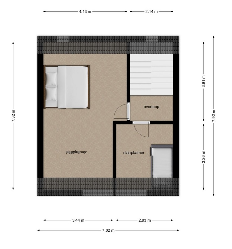 De 2e (of 3e) slaapkamer is groot ca. 8 m².