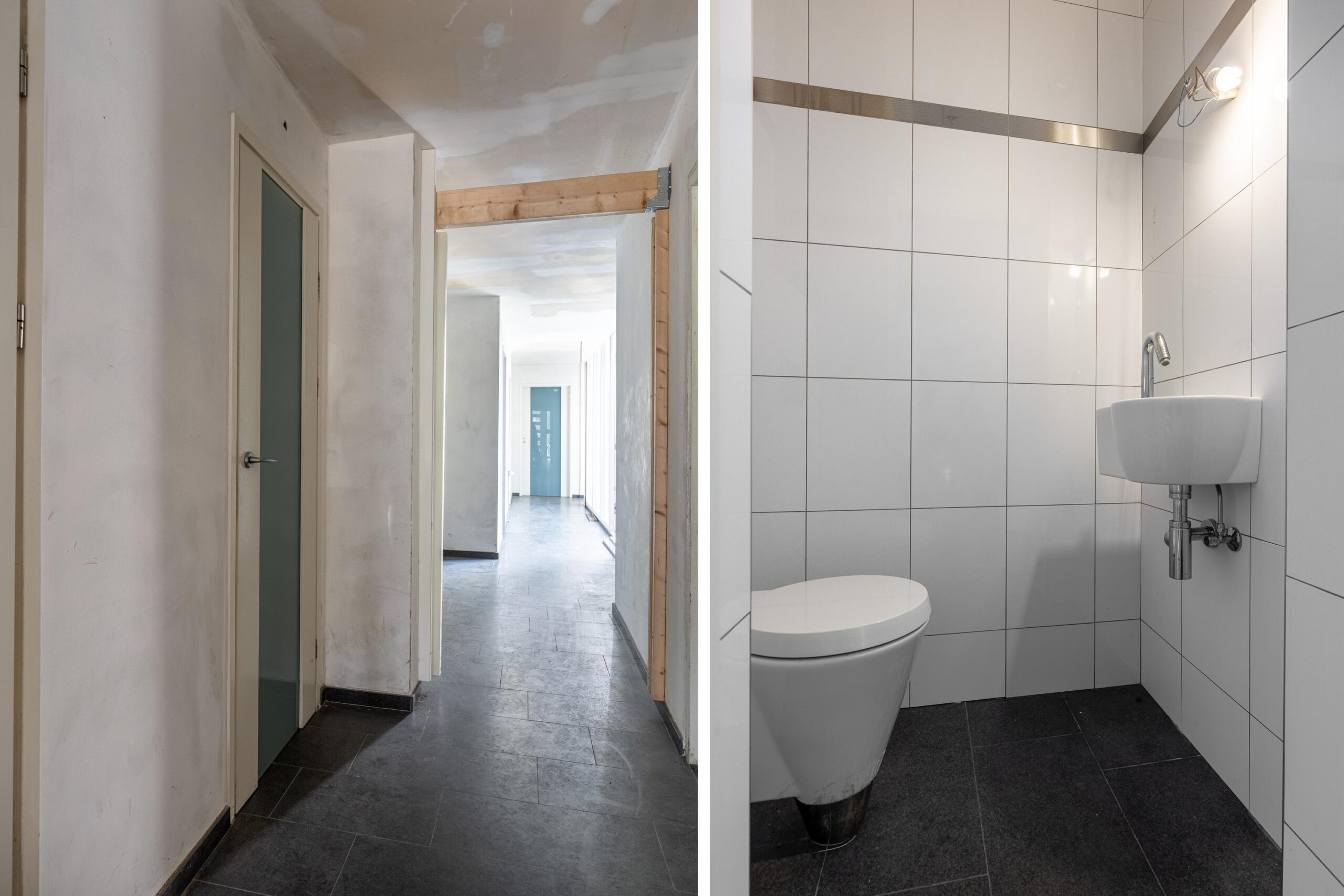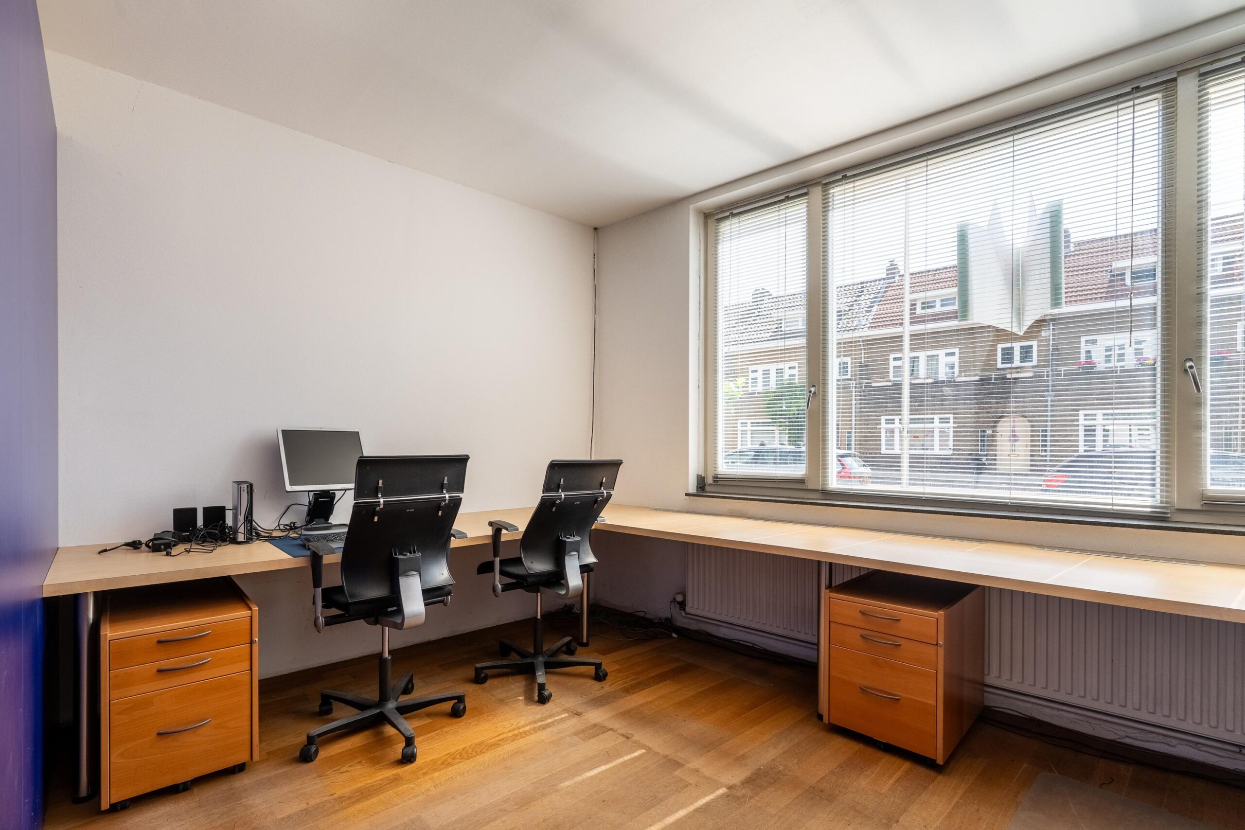 Verder biedt de parterre maar liefst drie kantoorruimtes: één met uitzicht op de eerste patio en één met directe toegang tot de tweede patio. Dankzij de grotendeels natuurstenen vloer en flexibele indeling is deze verdieping uitermate geschikt voor zakelijke of praktijkdoeleinden aan huis.